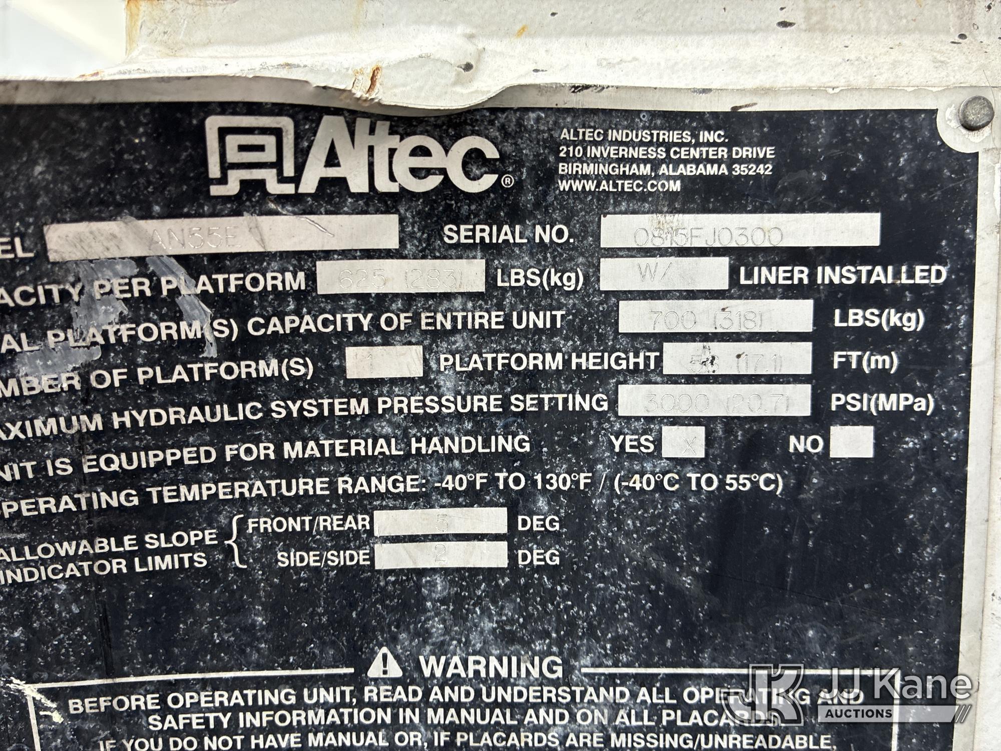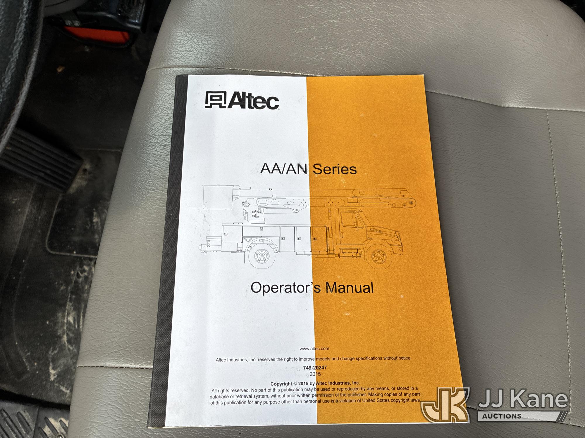 Altec AN55E, 60 ft, Material Handling Bucket Truck s/n 0815FJ0300, with two man bucket & 4 hyd outriggers, rear mounted on 2016 Freightliner M2 106 Utility Truck, 6.7L L6 DIESEL 4X2, Auto, A/C, (98,088 miles) (Duke Unit) (Runs, Moves, Upper Operates)(Check Engine Light On) (Reads 10,652 hours) This is a Titled Item*