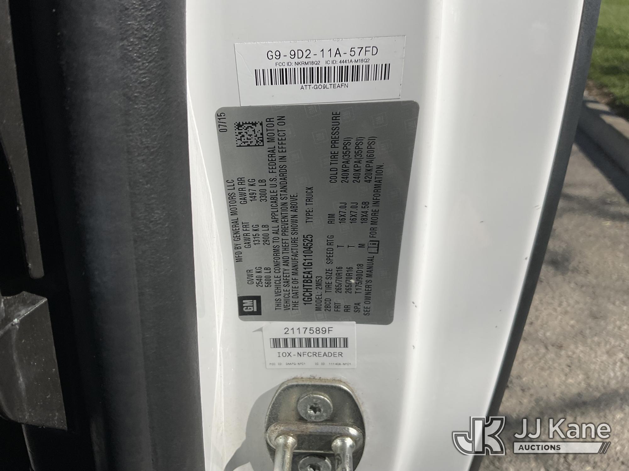 2016 Chevrolet Colorado Work Truck Ext. Cab 4WD Extended-Cab Pickup Truck, s/n 1GCHTBEA1G1104525, 2.5L L4 DOHC 16V gas, 6-Speed Automatic, A/C, (123,081 miles) (Runs & Moves)(Driver Side Rear Fender Slight Damage) This is a Titled Item*