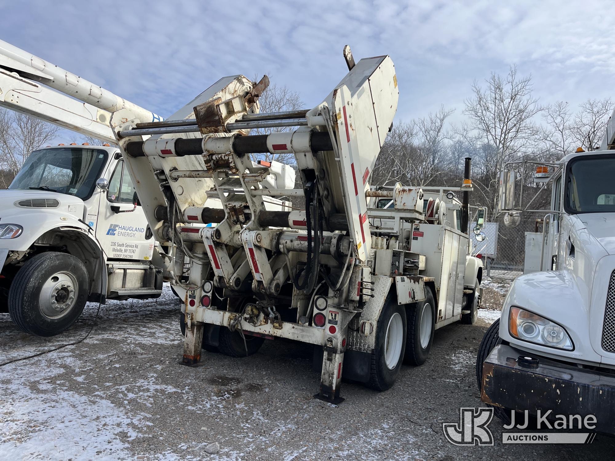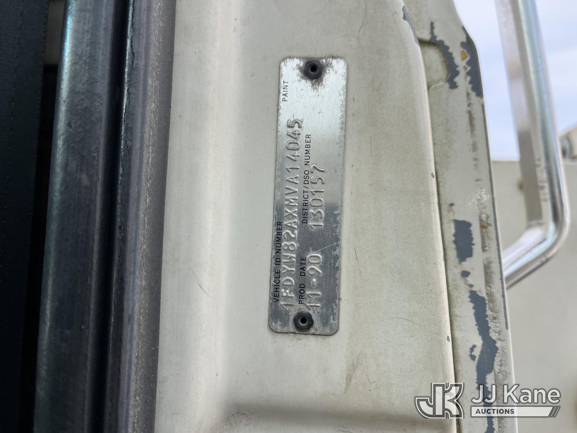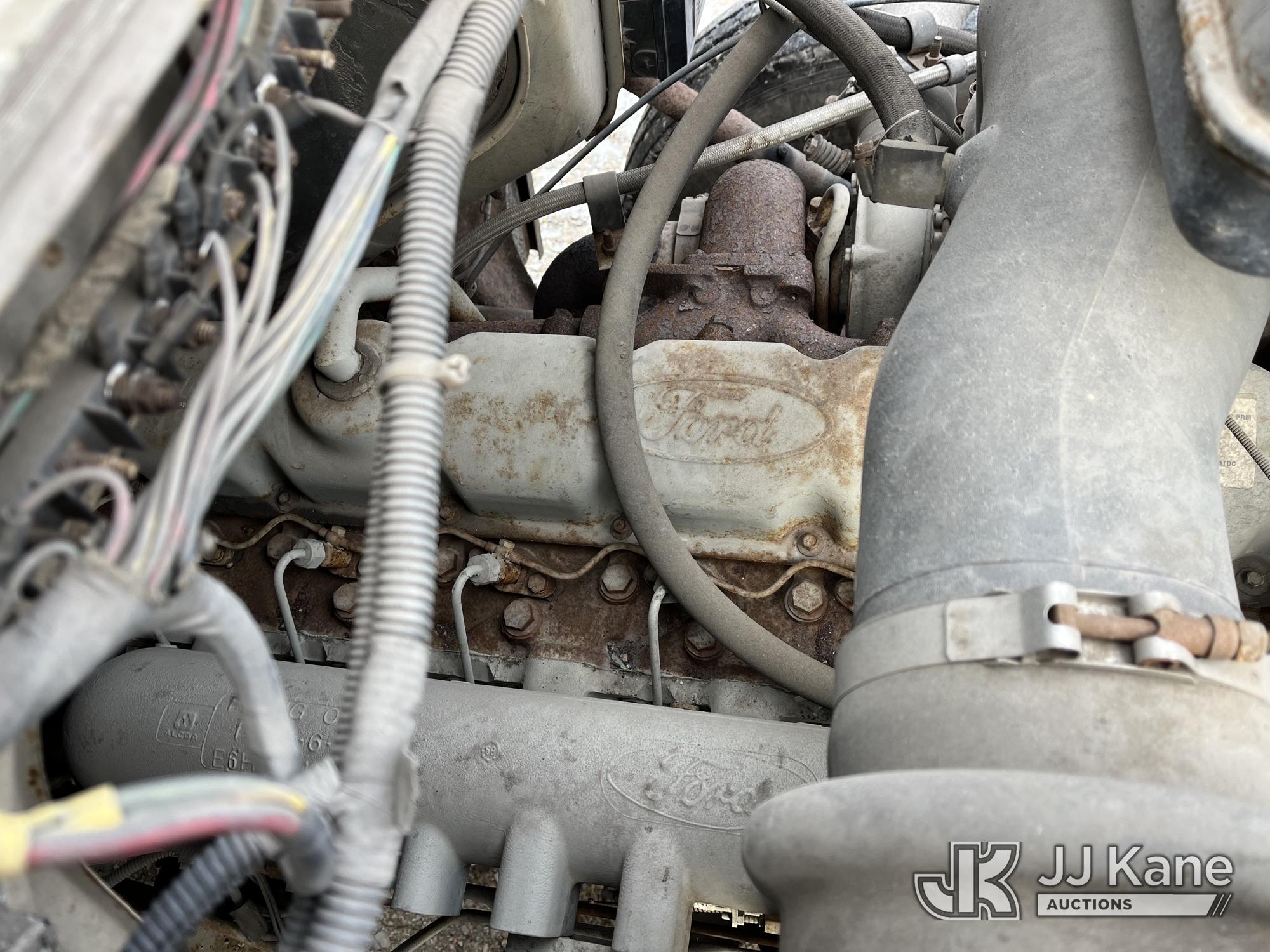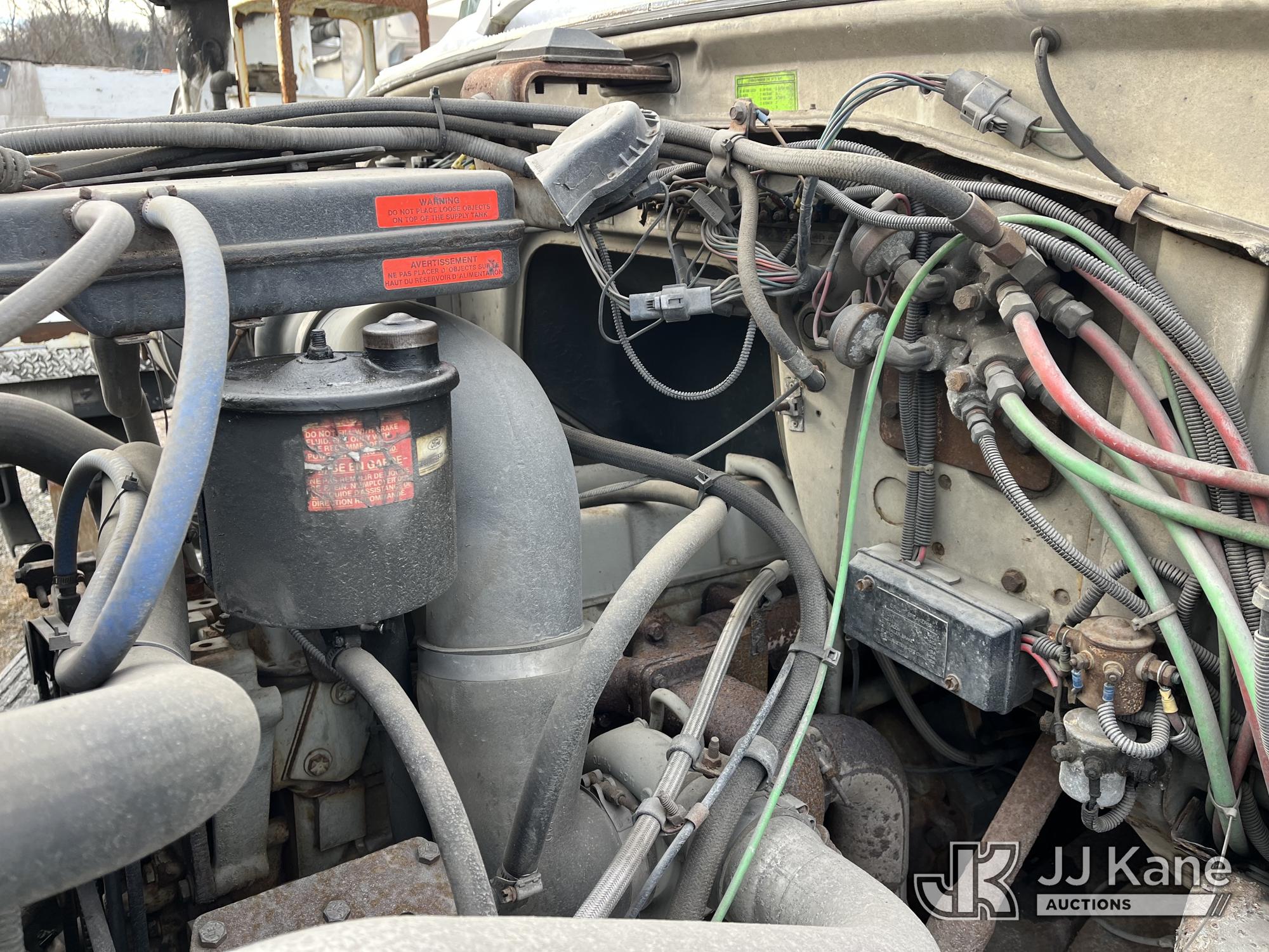 Sterling LP108, 16,000 Lb Underground Cable Puller s/n 12900408119, rear mounted on 1991 Ford LNT8000F T/A Flatbed/Utility Truck, 7.8L L6 Turbo Diesel, 4X2, Auto, with Bed Winch, (Exempt from Odometer Disclosure - Reads 67,537 miles) (Runs, Not Moving, Outriggers & Reel Loader Operate, Missing Serial Plate, Rust Damage, Seller States: Bad Transmission) (Reads 793 hours) This is a Titled Item*