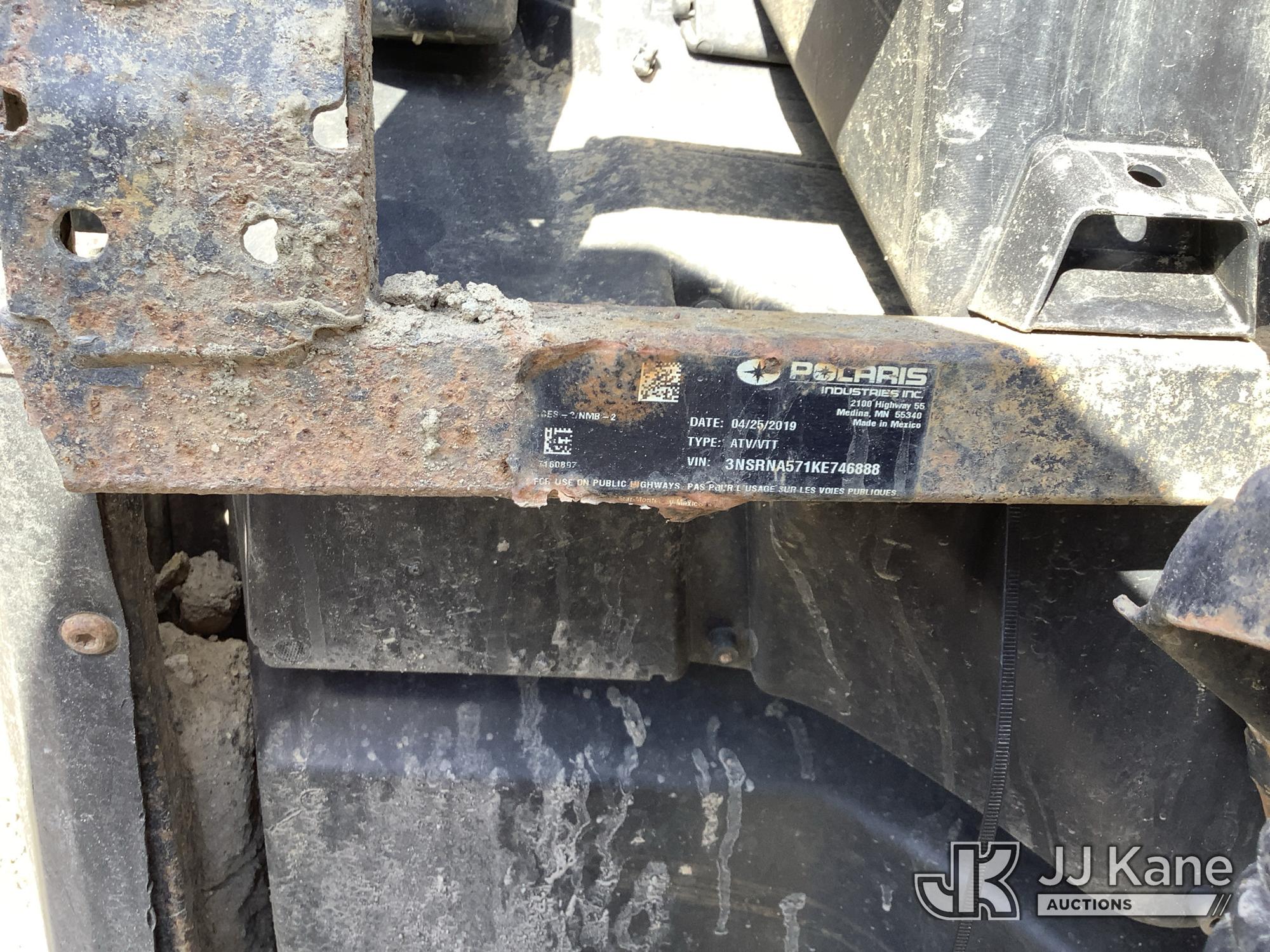 2019 Polaris Ranger 570 Crew All-Terrain Vehicle, s/n 3NSRNA571KE746888, 1-cyl Gas, Auto, (6,073 miles) (No Title) (Runs & Moves, No Reverse, Shifter Broken) (Removal is by Appointment Only, Buyer MUST make a appointment prior to picking up, Buyer/Transporter Must have PAID IN FULL RELEASE. No onsite assistance available, Please Come prepared.) (Reads 1,410 hours)*