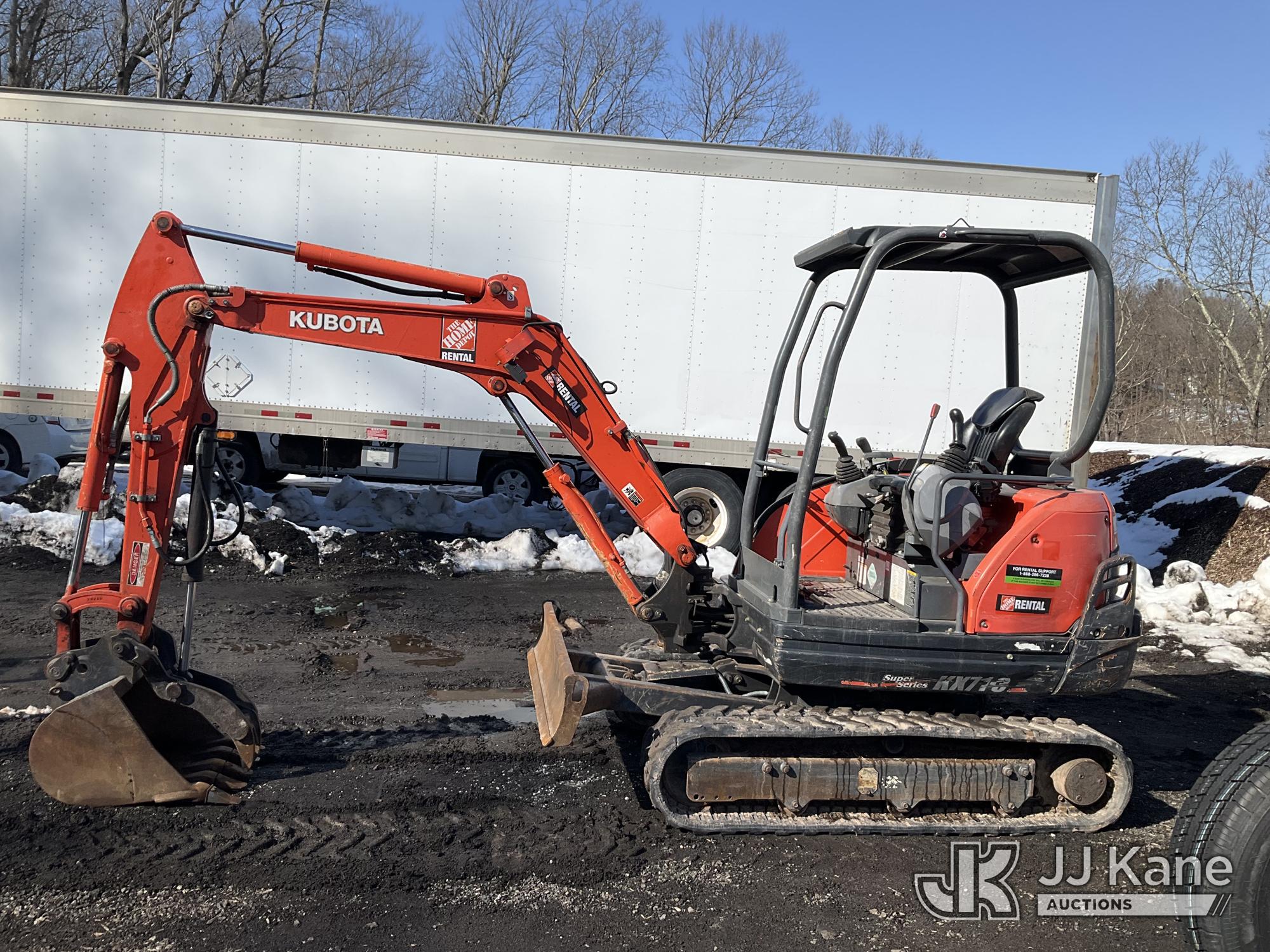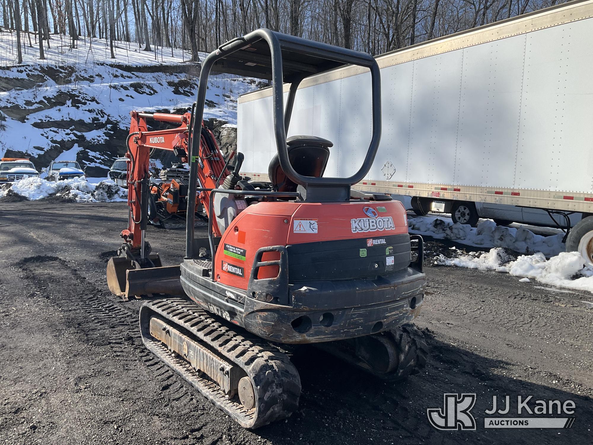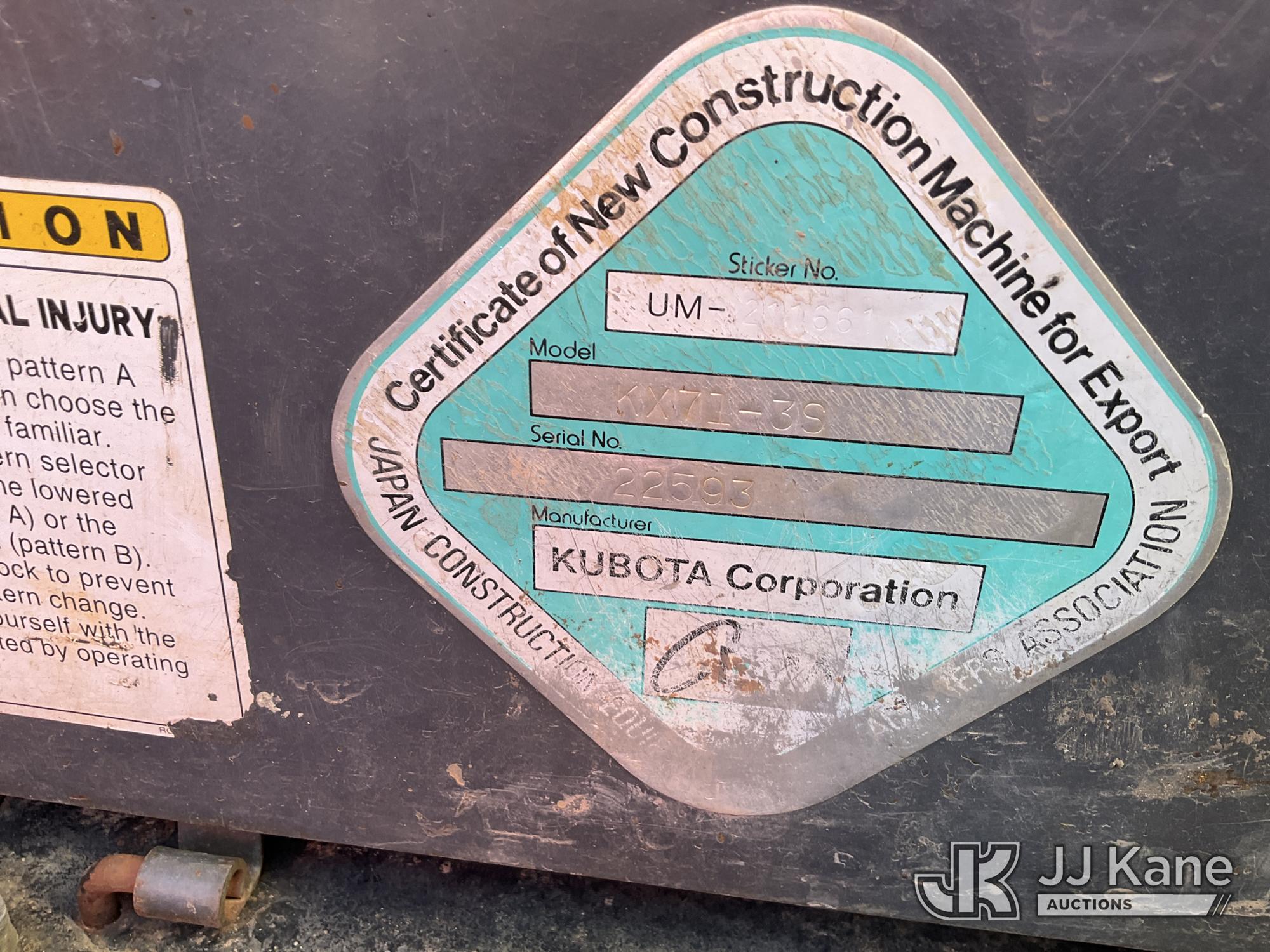 2018 Kubota KX71-3 Mini Hydraulic Excavator, s/n 22593, Kubota diesel, Hydraulic Drive, with 18 in Digging Bucket, Hyd Thumb Attachment, Backfill Blade, Rubber Tracks & ROPS, (Runs & Operates) (Removal is by Appointment Only, Buyer MUST make a appointment prior to picking up, Buyer/Transporter Must have PAID IN FULL RELEASE. No onsite assistance available, Please Come prepared.) (Reads 1,478 hours)*