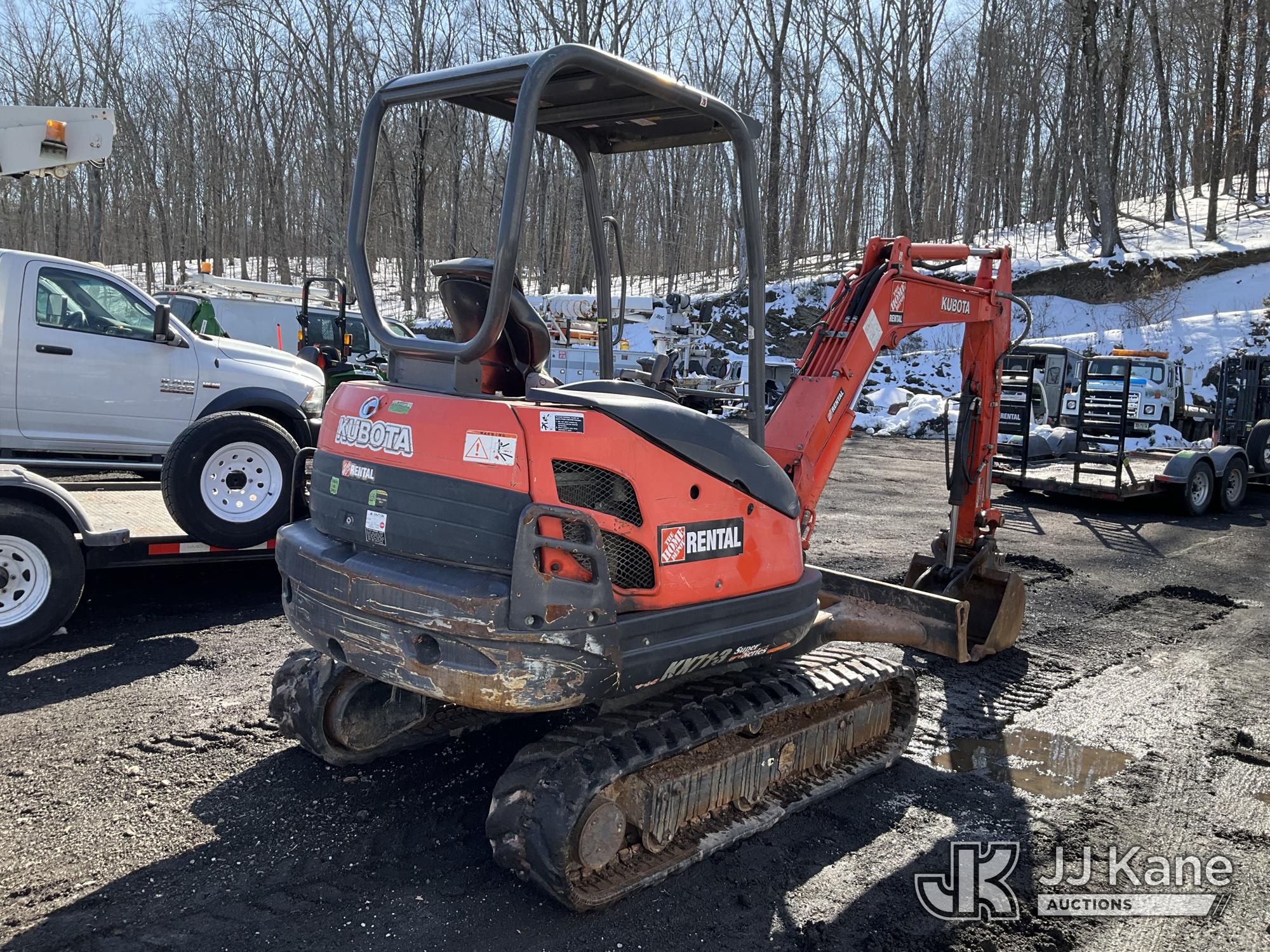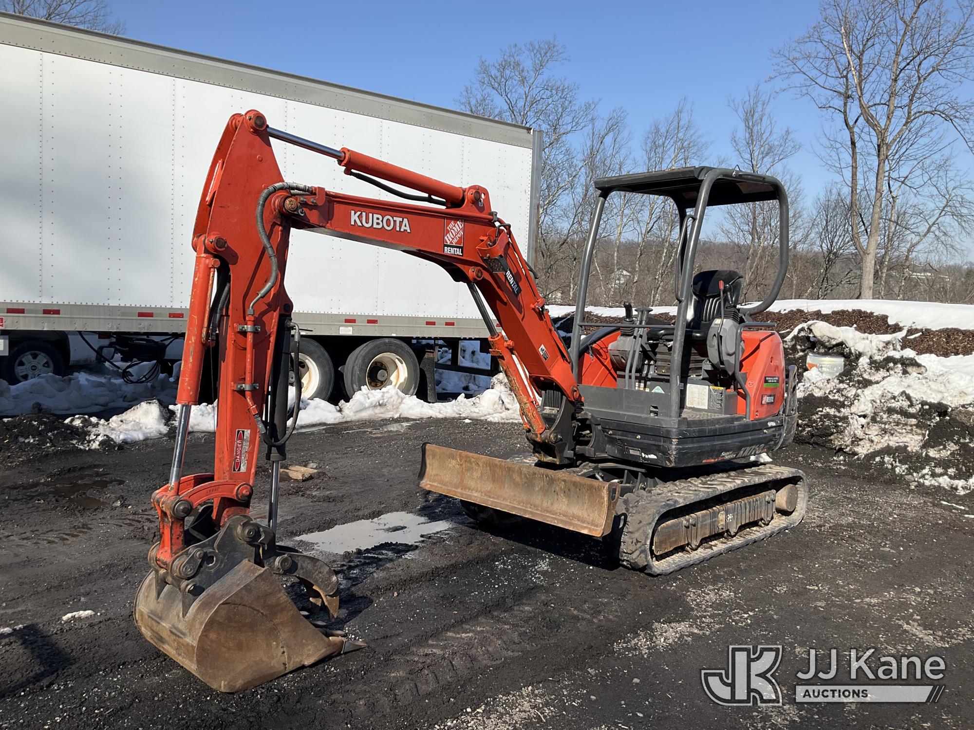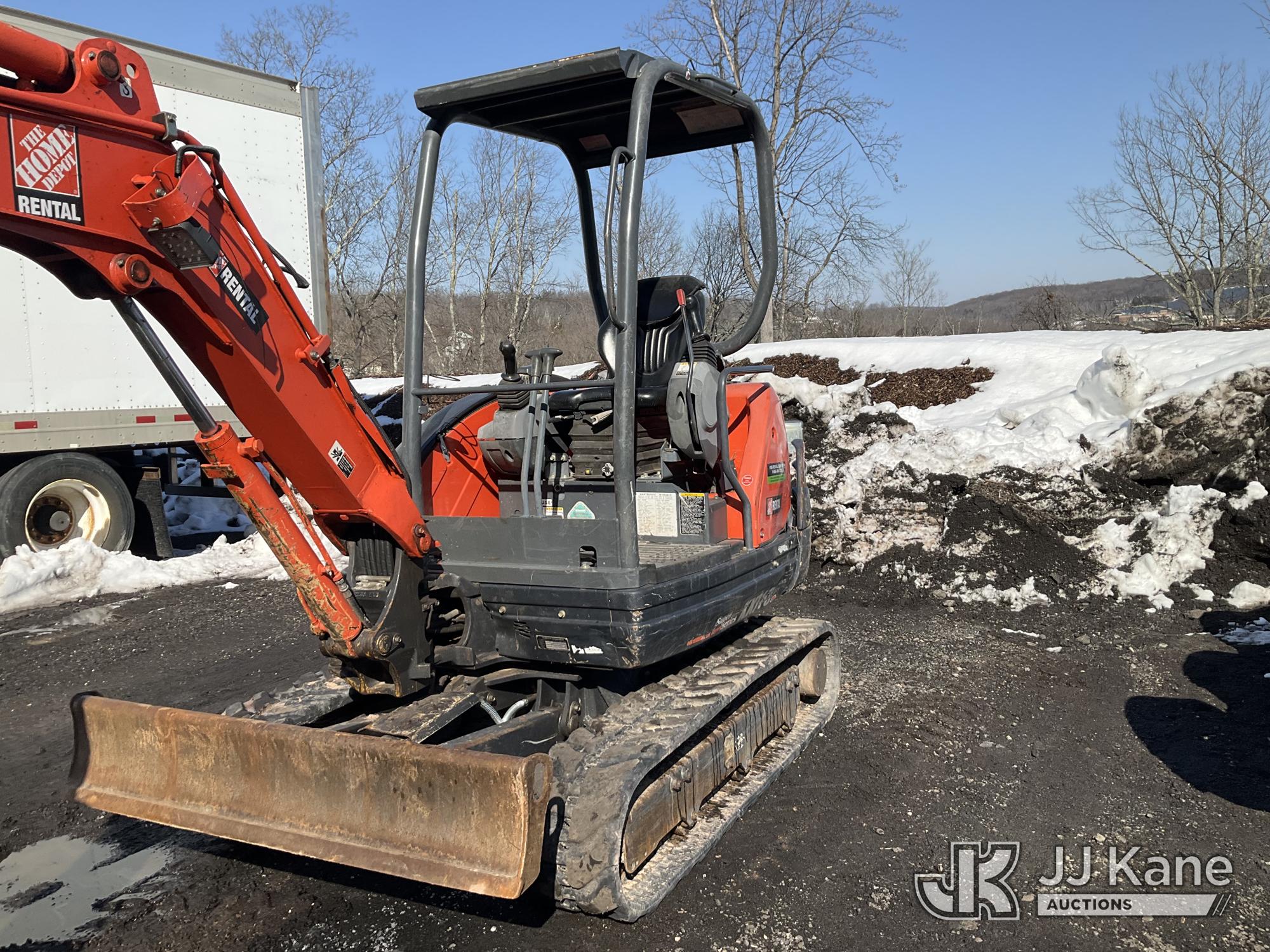 2018 Kubota KX71-3 Mini Hydraulic Excavator, s/n 22593, Kubota diesel, Hydraulic Drive, with 18 in Digging Bucket, Hyd Thumb Attachment, Backfill Blade, Rubber Tracks & ROPS, (Runs & Operates) (Removal is by Appointment Only, Buyer MUST make a appointment prior to picking up, Buyer/Transporter Must have PAID IN FULL RELEASE. No onsite assistance available, Please Come prepared.) (Reads 1,478 hours)*