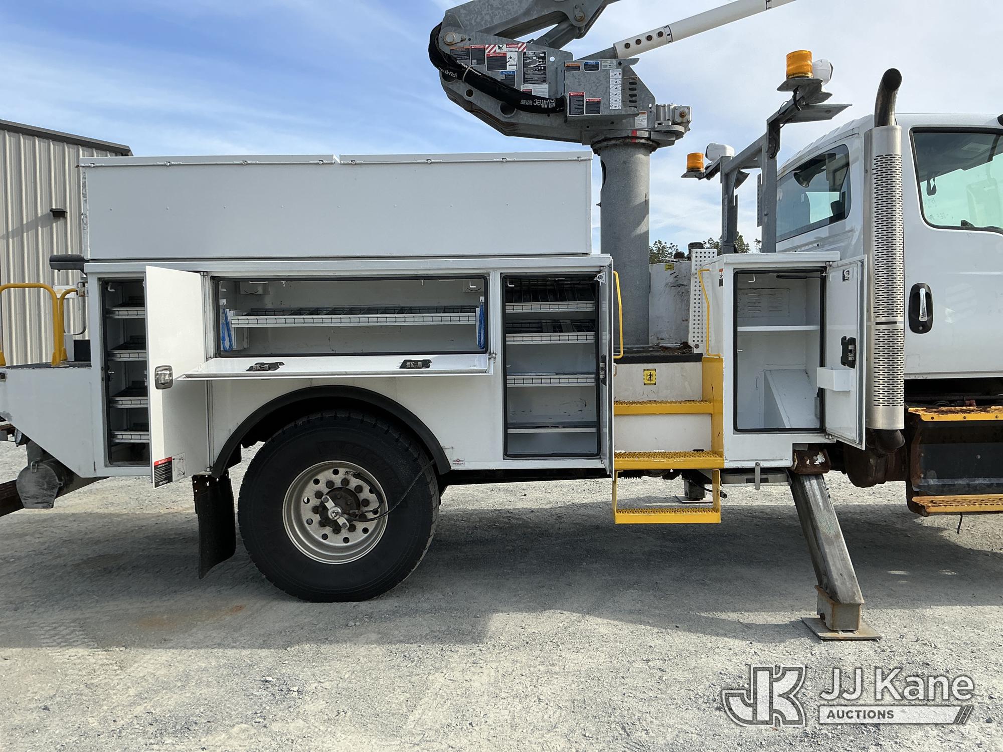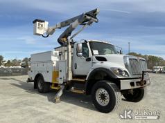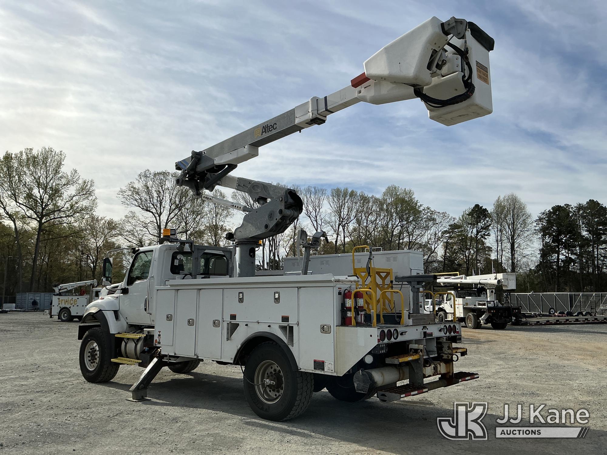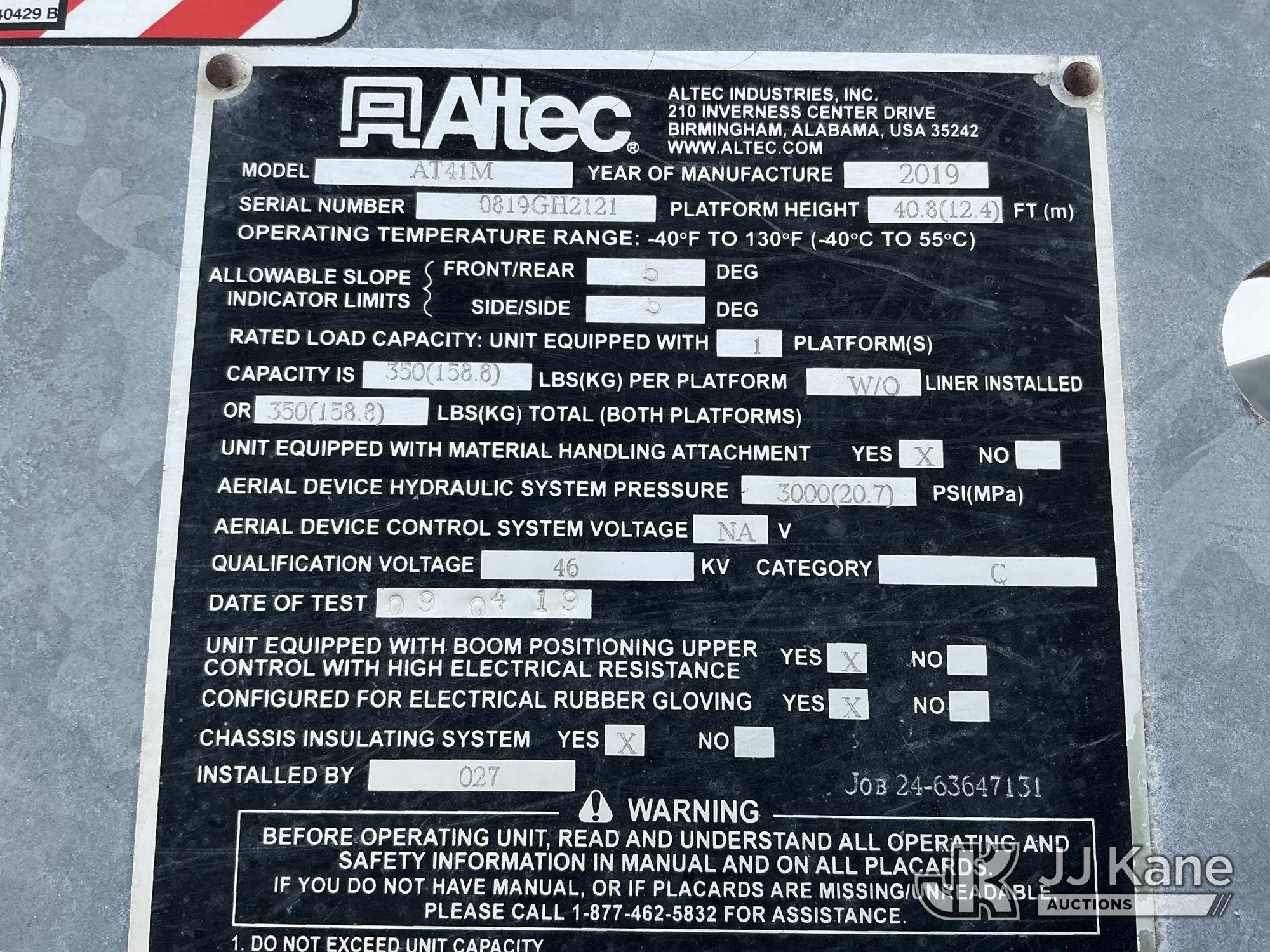 Altec AT41M, 46 ft, Articulating & Telescopic Material Handling Bucket Truck s/n 0819GH2121, with single man bucket & 2 hyd outriggers, mounted behind cab on 2020 International HV507 4X4 Utility Truck, Cummins 6.7L diesel, Auto, A/C, with Airdown tire inflation system , (76,669 miles) (Runs, Moves & Upper Operates) (DEF Derate) (TITLE DELAY) This is a Titled Item*