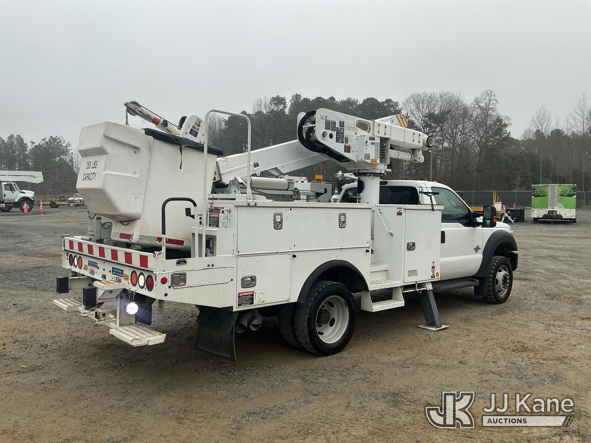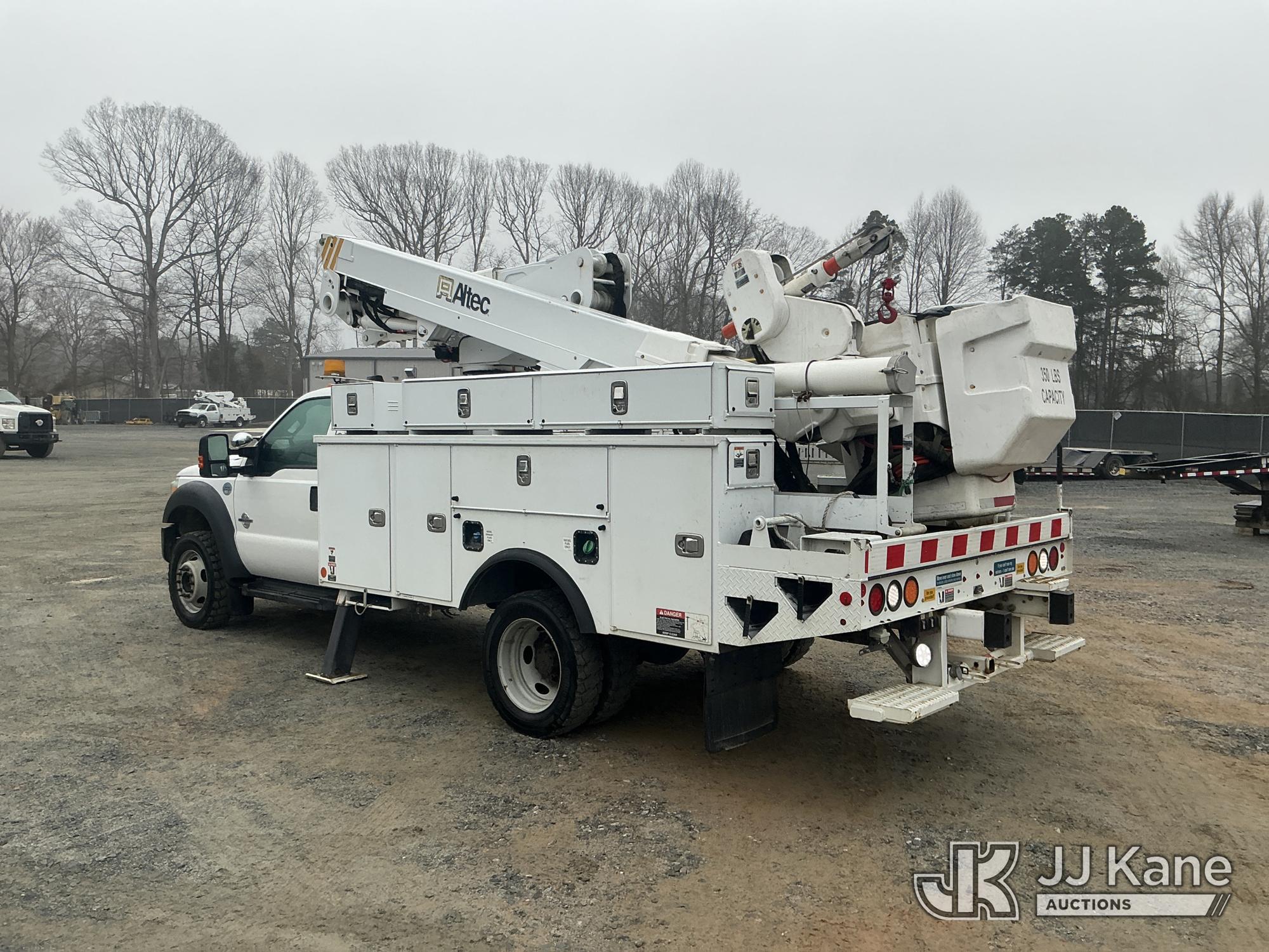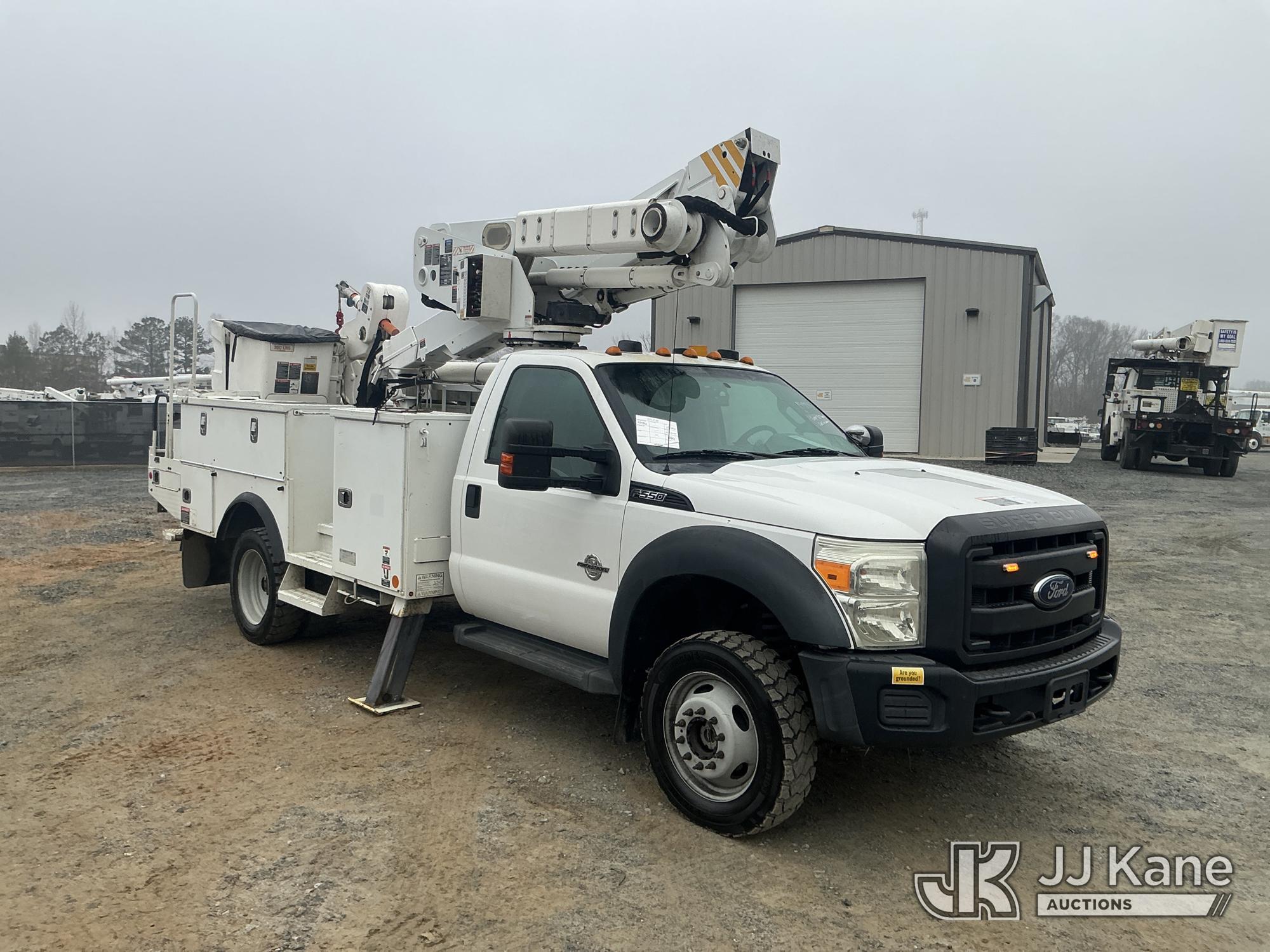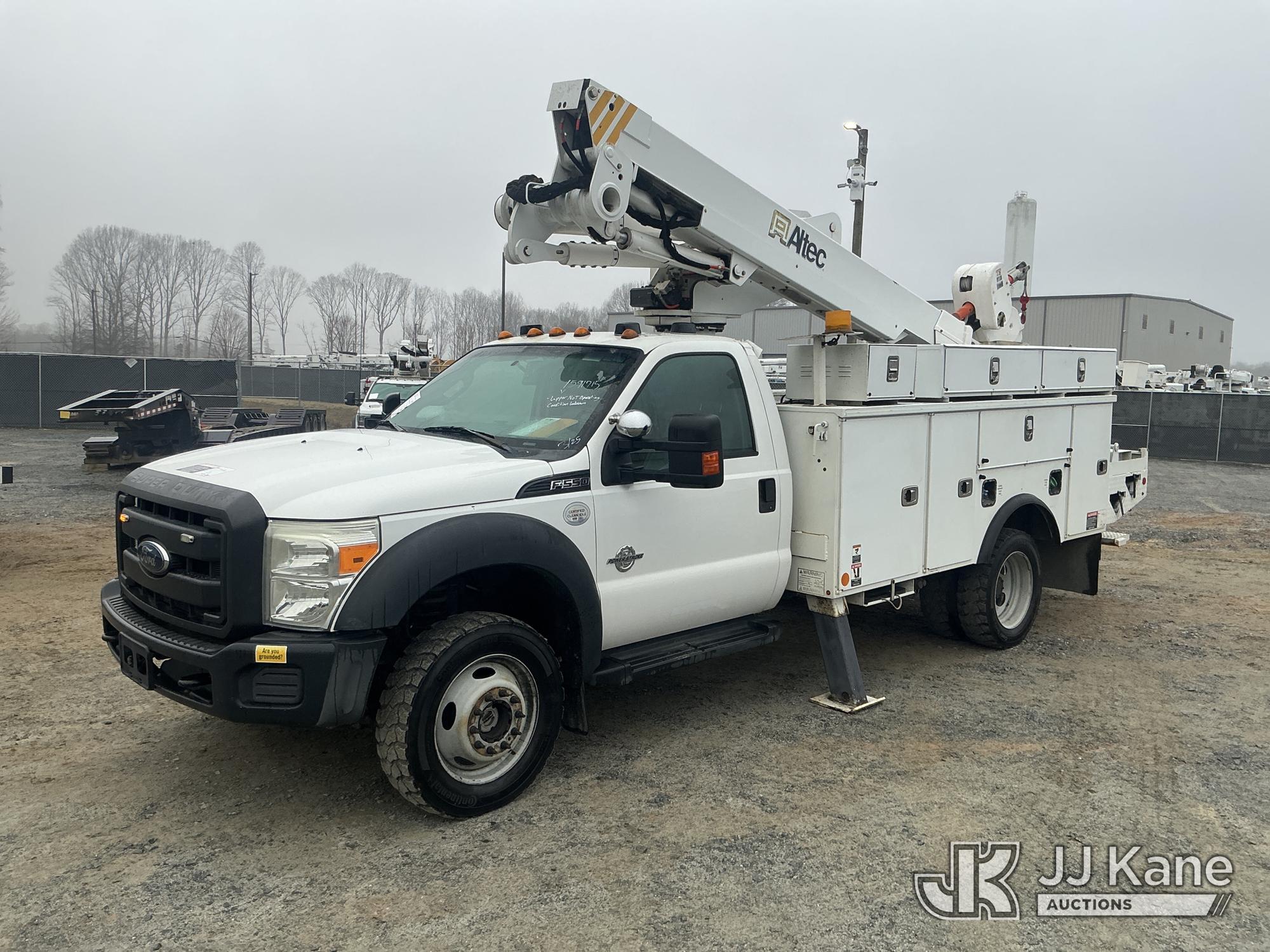 Altec AT40-MH, 45 ft, Articulating & Telescopic Material Handling Bucket Truck s/n 0315CZ01988, with single man bucket & 2 hyd outriggers, mounted behind cab on 2015 Ford F550 4X4 Service Truck, 6.7L diesel, Auto, A/C, (113,326 miles) (Duke Unit) (Runs & Moves) (Upper Not Operating Condition Unknown) This is a Titled Item*