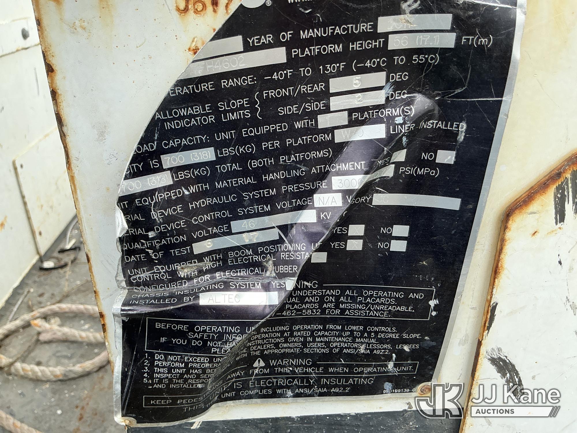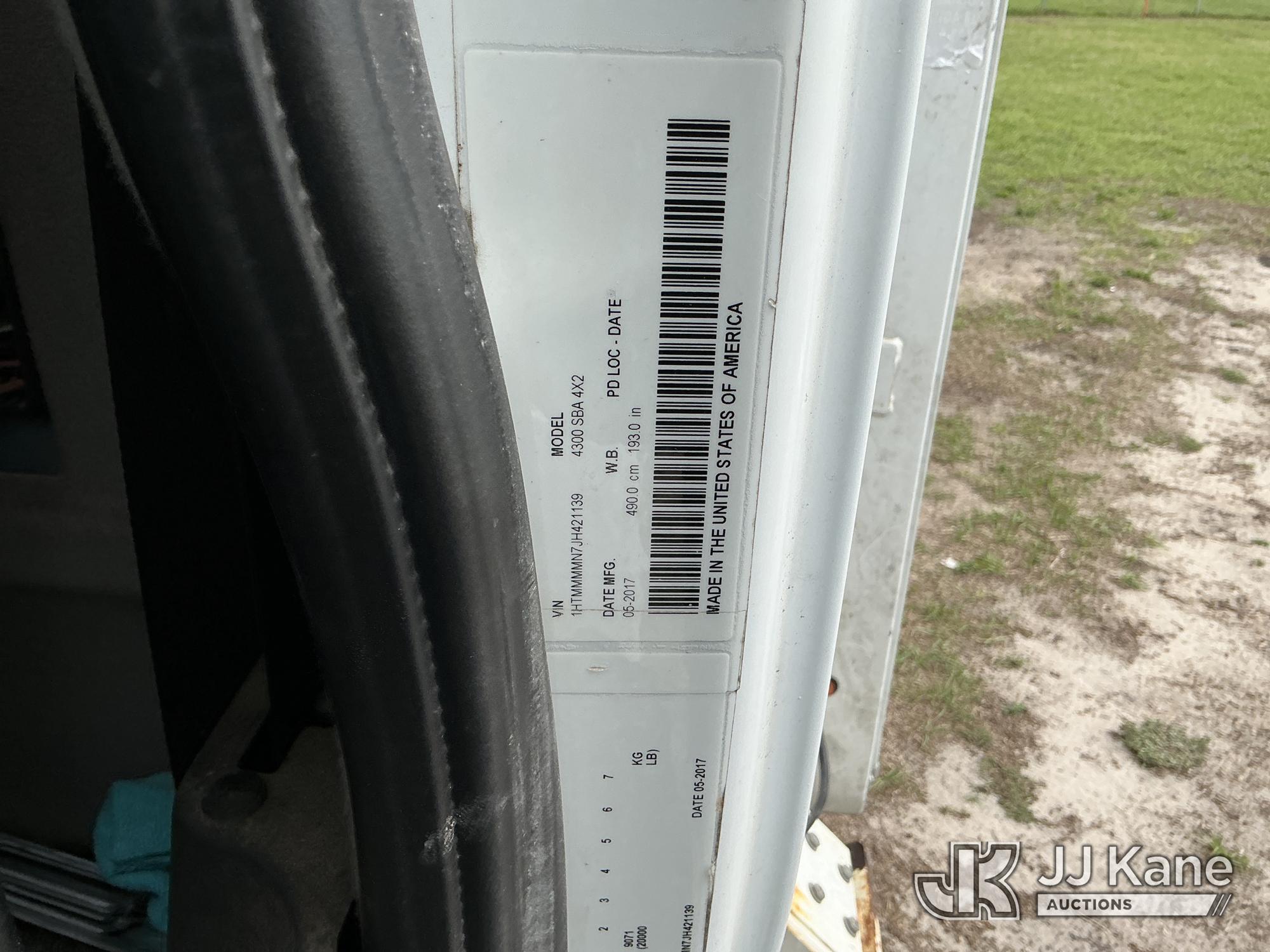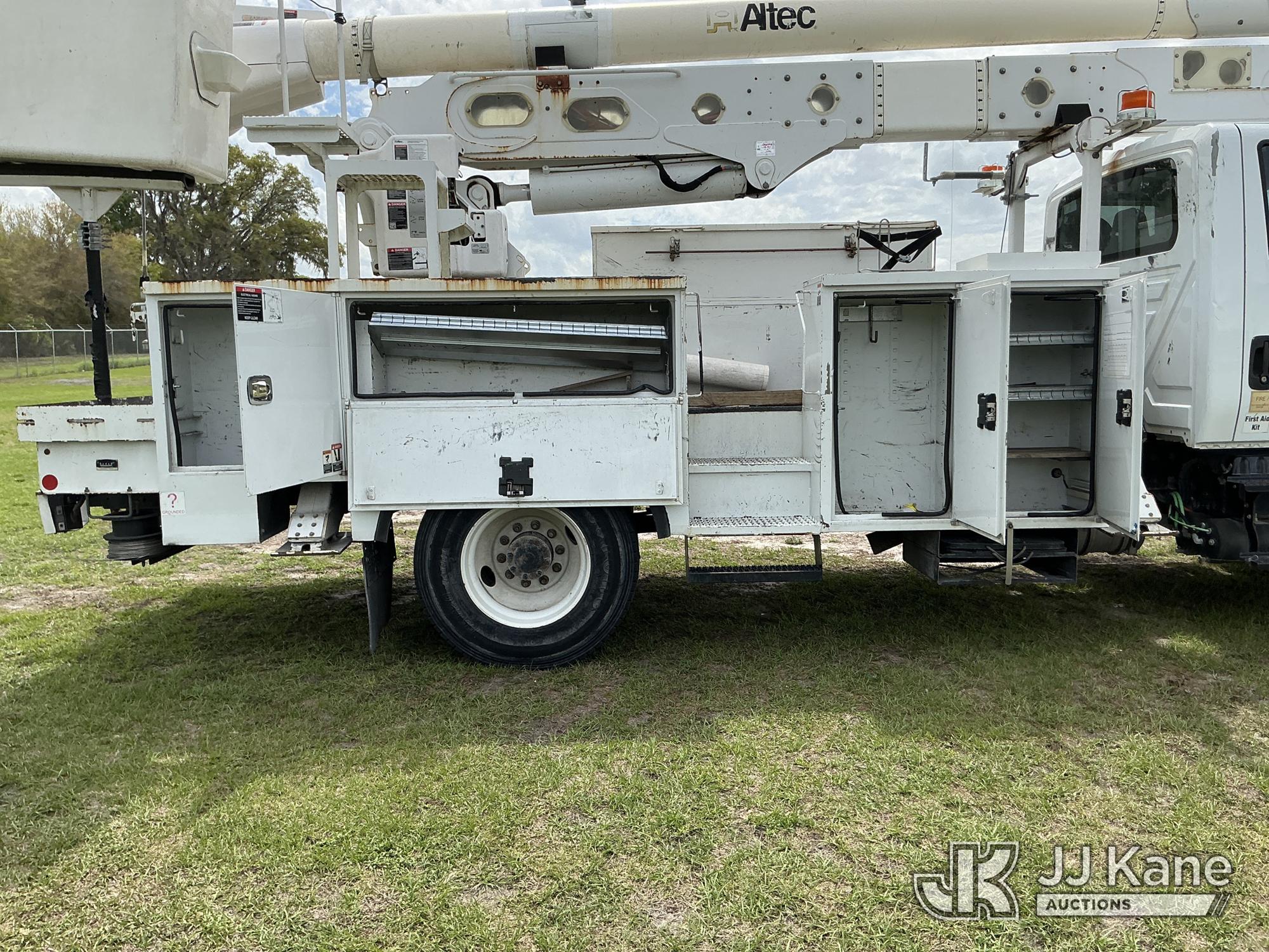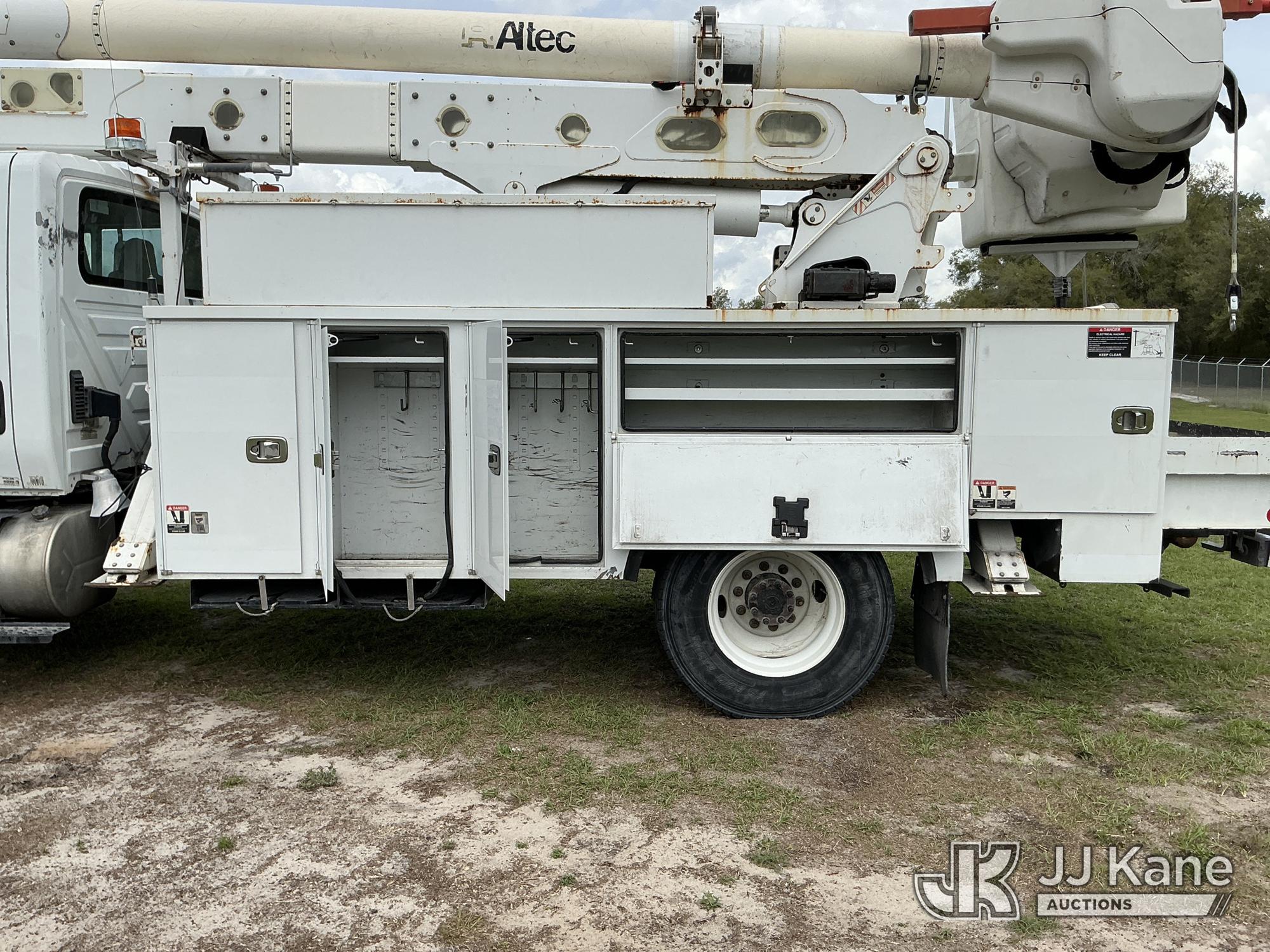 Altec AA55-MH, 61 ft, Material Handling Bucket Truck s/n 0617FH4602, with two-man bucket & 4 hyd outriggers, rear mounted on 2018 International 4300 Utility Truck, 6.7L 4X2, Diesel, Auto, A/C, (68,124 miles) Radio Not Included (Runs, Moves, Upper Operates)(Check Engine Light On, Low On DEF)(FL Residents Purchasing Titled Items – tax, title & registration fees will be collected at the maximum rate of $400.00 under 25,999 and $800.00 for Over 26,000 and $250.00 trailers – Proof of insurance is mandatory; Out of State Residents Purchasing Title Items – tax will be collected based upon your state rate.) (Reads 10,622 hours) This is a Titled Item*