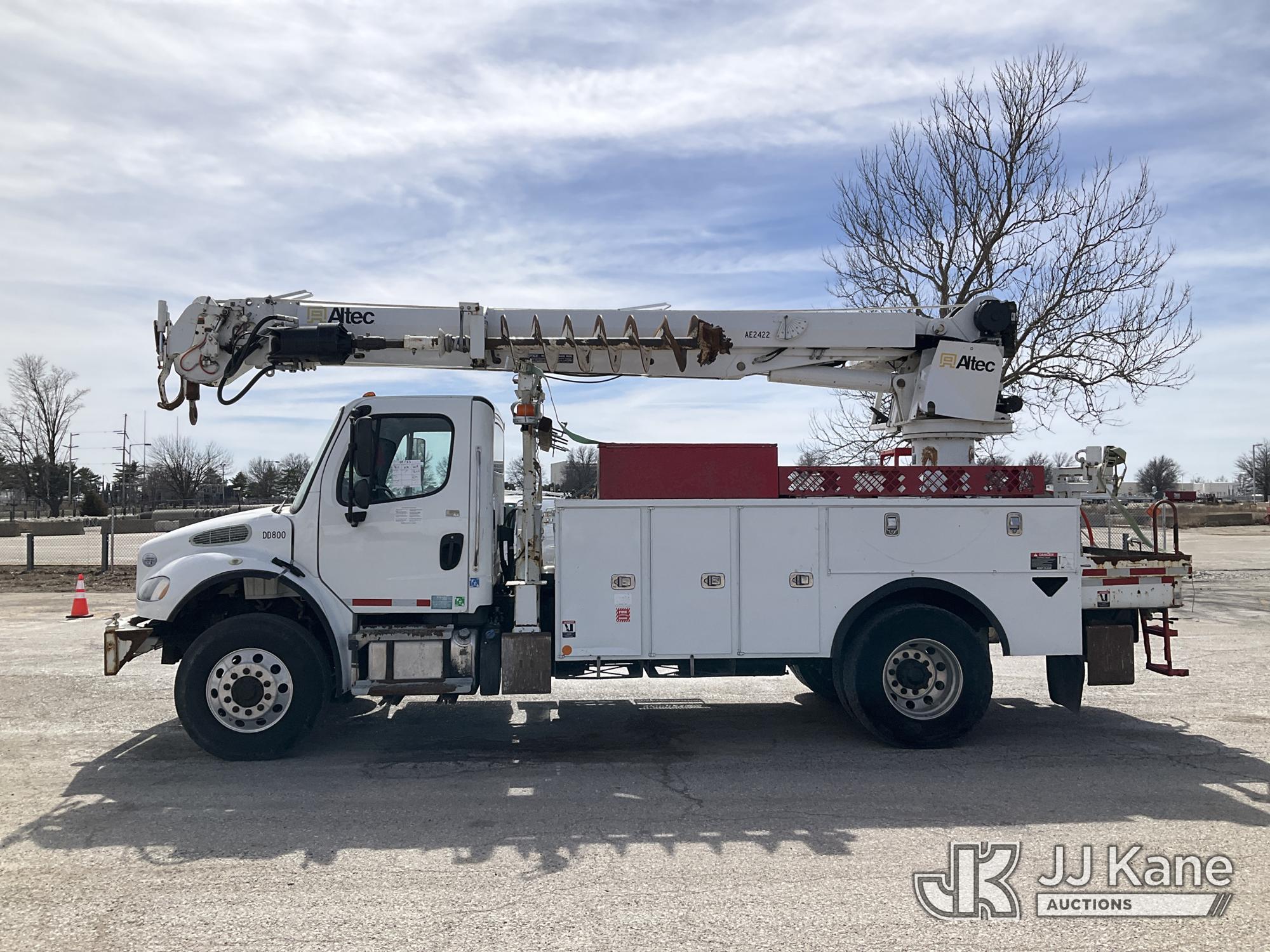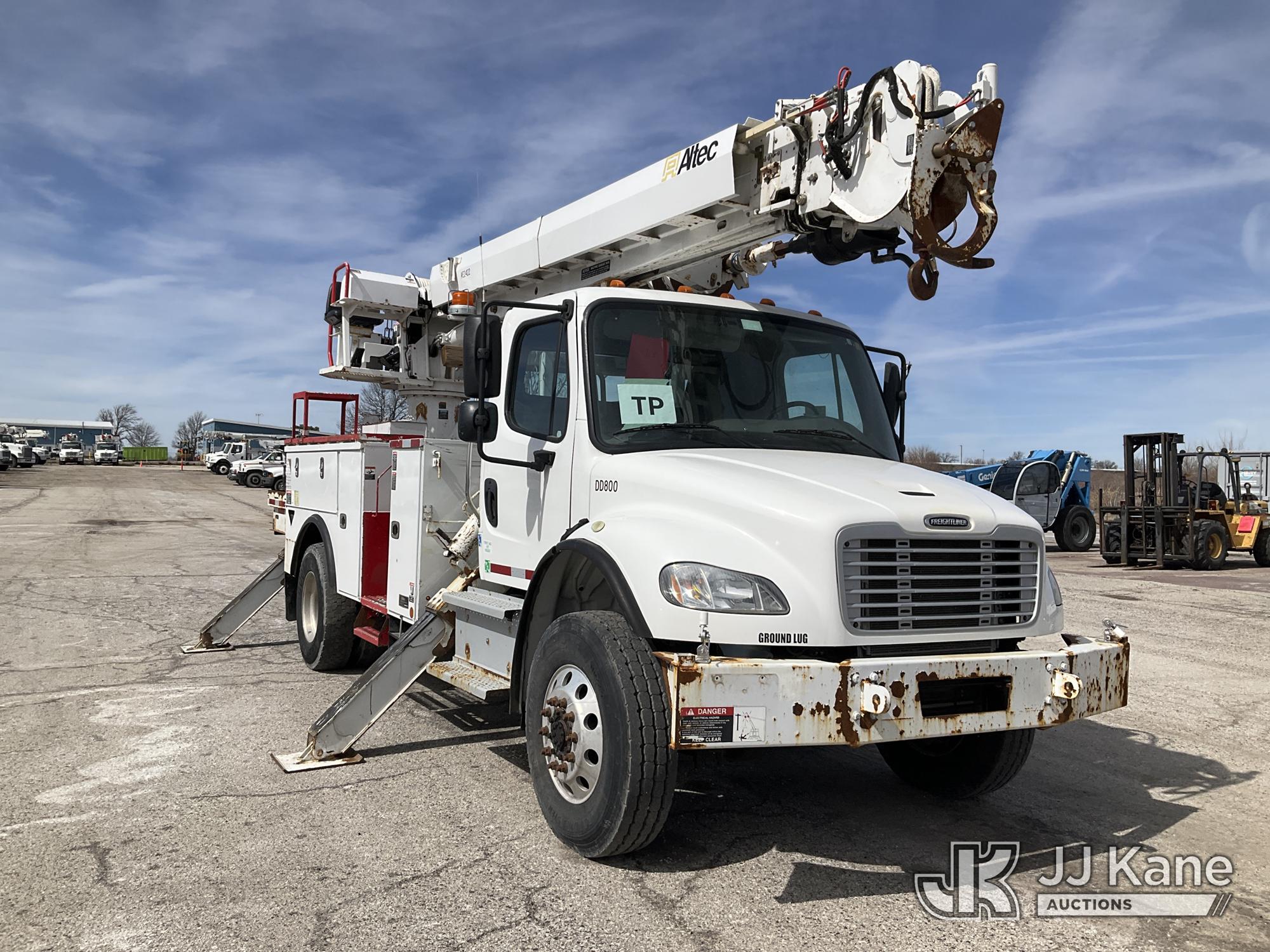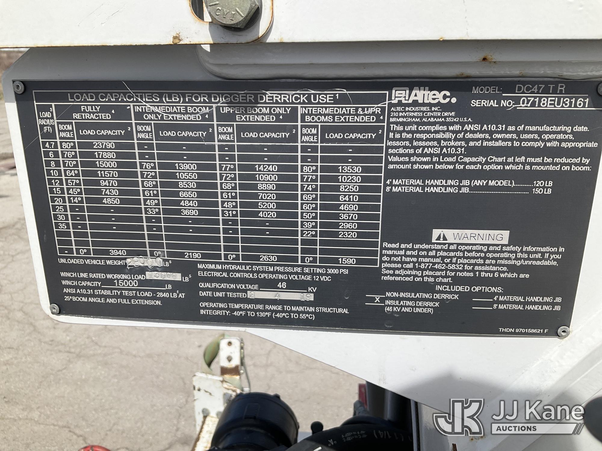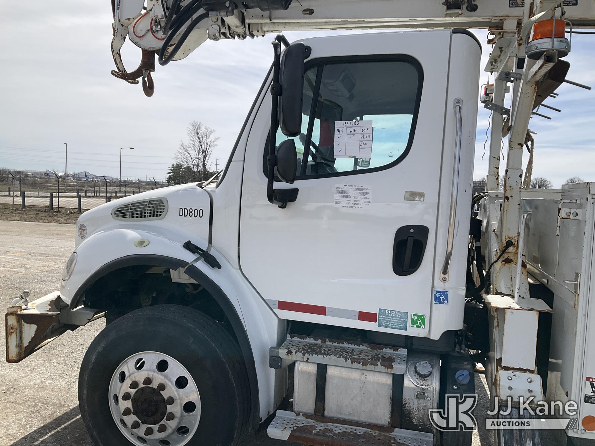 Altec DC47-TR, 23,790 Lb Digger Derrick s/n 0718EU3161, with 47 ft sheave height, 2 spd digger, heel winch, pole grabs, 4 hydraulic outriggers & riding console, rear mounted on 2019 Freightliner M2 106 Utility Truck, 6.7L diesel, 4X4, Auto, A/C, (78,818 miles) (Runs & Moves) (Wrench Light On Gear Selector, Do Not Operate, Rotation Bearing Has Damage & Needs Replaced) (Seller States: Has Bad PTO & Pump, Auger Bit & Turntable Cover Bent) (Reads 6,761 hours) This is a Titled Item*
