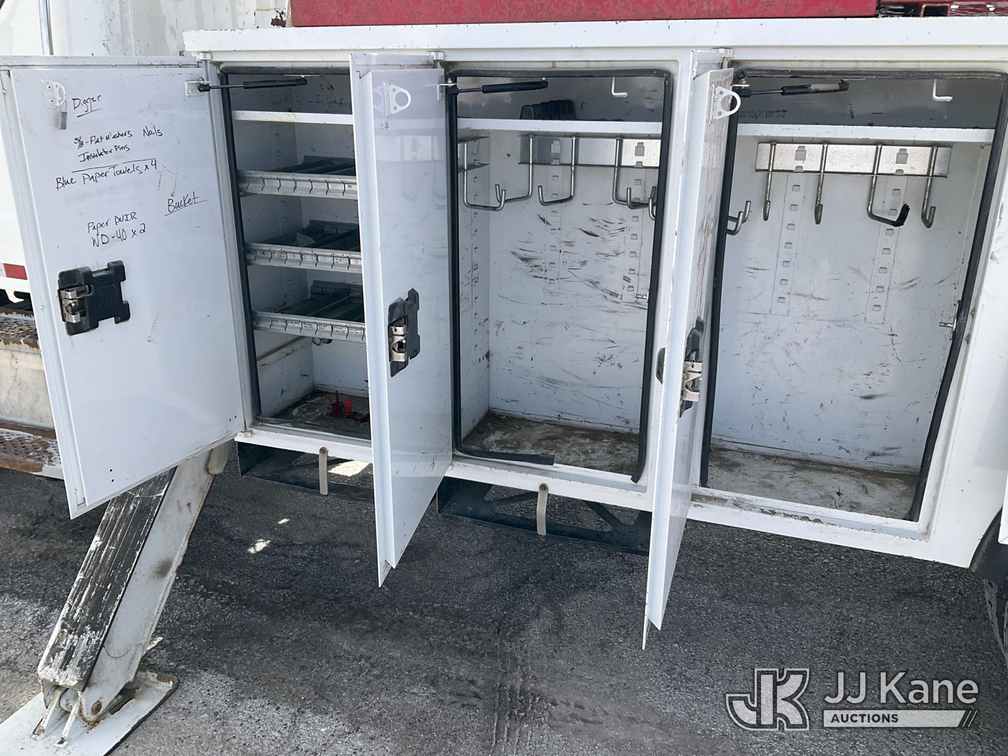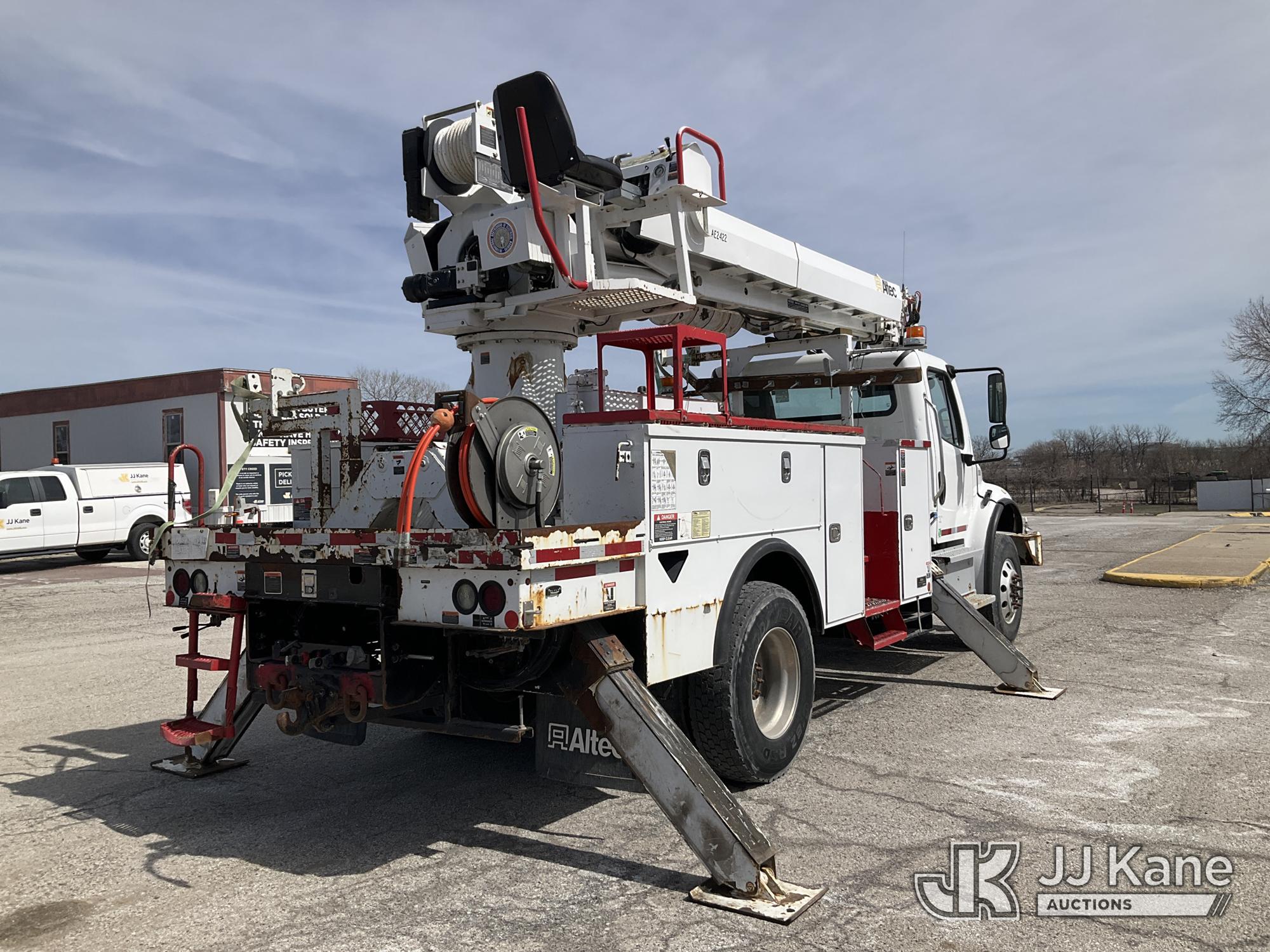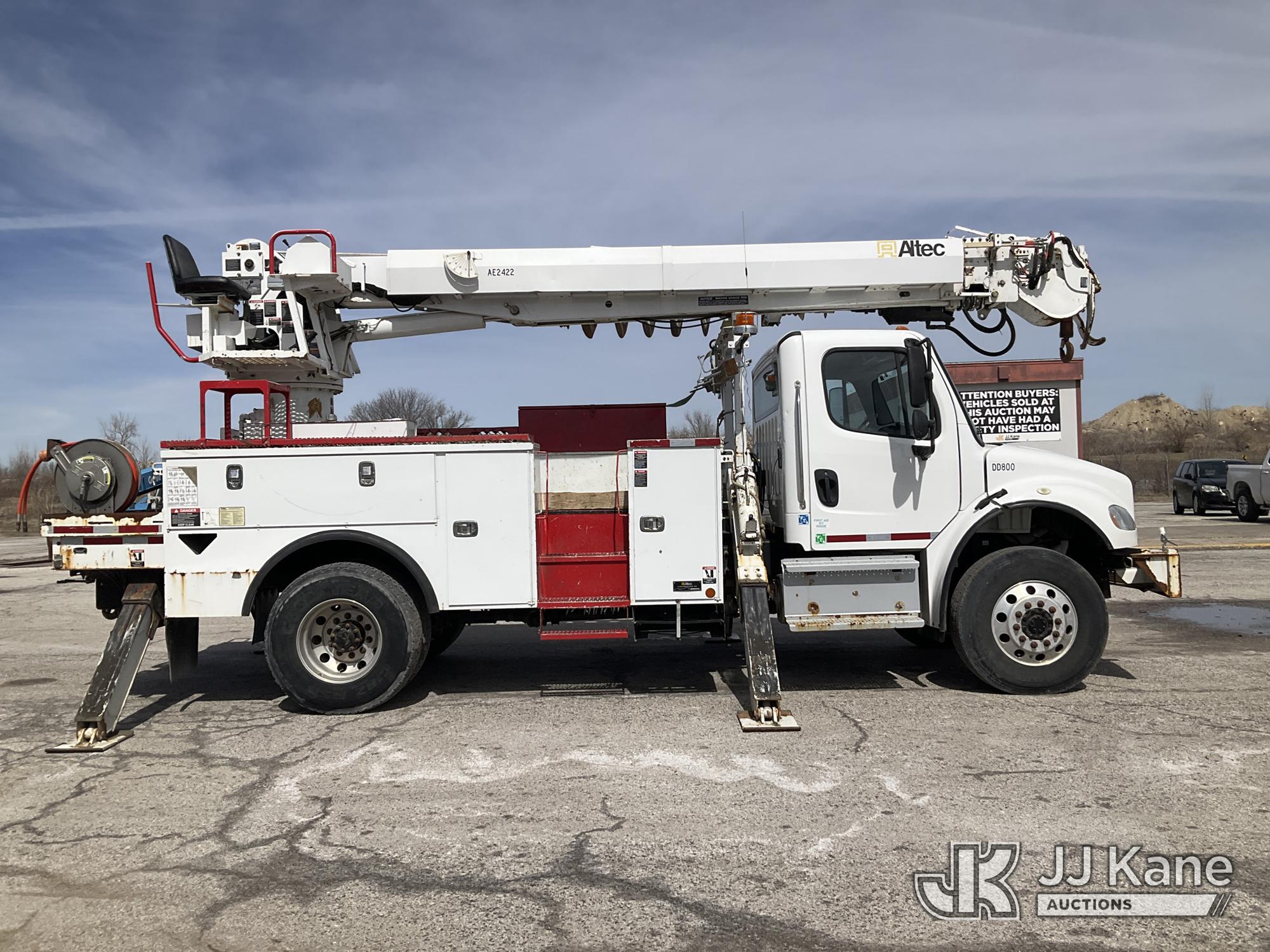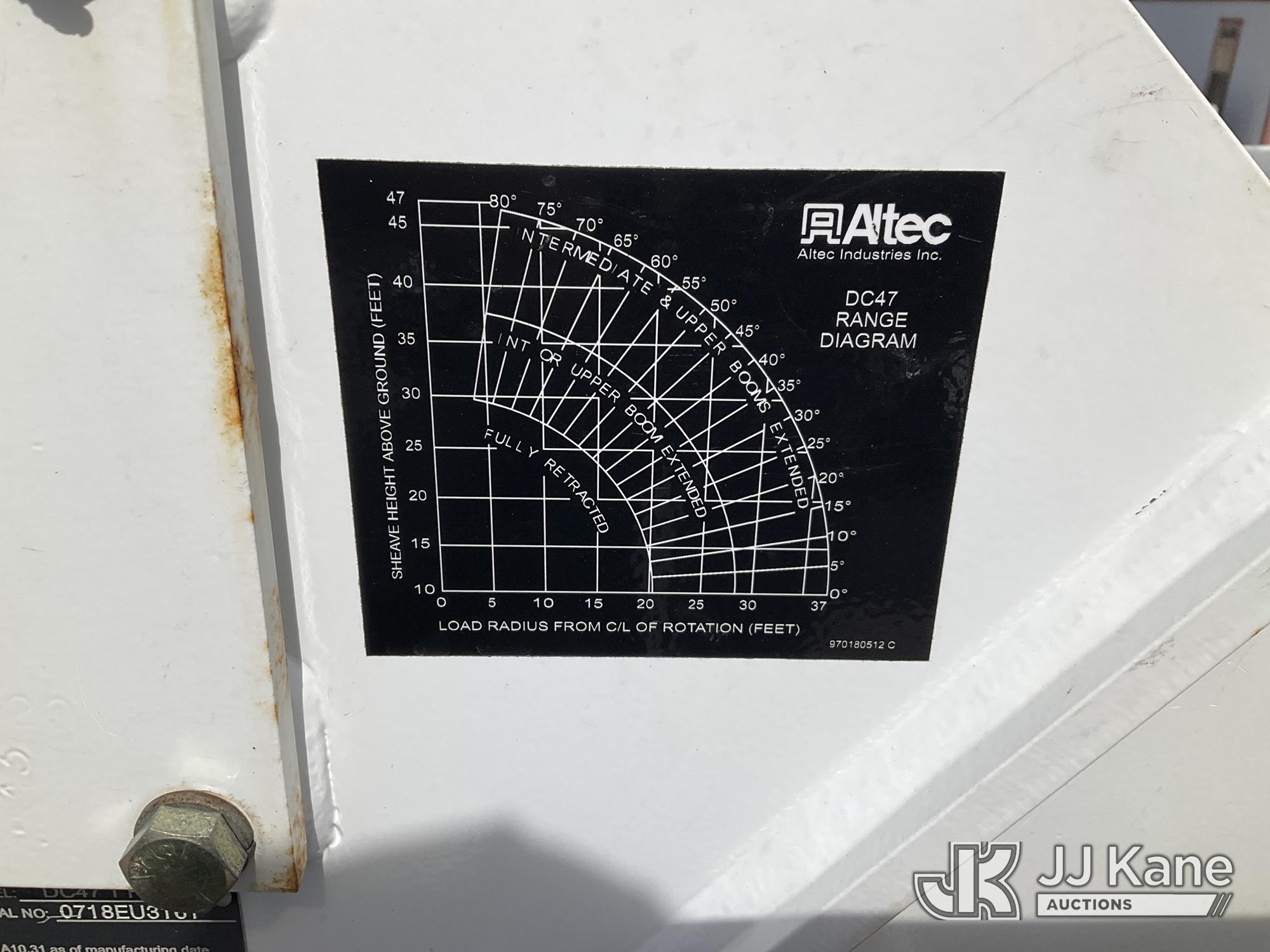 Altec DC47-TR, 23,790 Lb Digger Derrick s/n 0718EU3161, with 47 ft sheave height, 2 spd digger, heel winch, pole grabs, 4 hydraulic outriggers & riding console, rear mounted on 2019 Freightliner M2 106 Utility Truck, 6.7L diesel, 4X4, Auto, A/C, (78,818 miles) (Runs & Moves) (Wrench Light On Gear Selector, Do Not Operate, Rotation Bearing Has Damage & Needs Replaced) (Seller States: Has Bad PTO & Pump, Auger Bit & Turntable Cover Bent) (Reads 6,761 hours) This is a Titled Item*