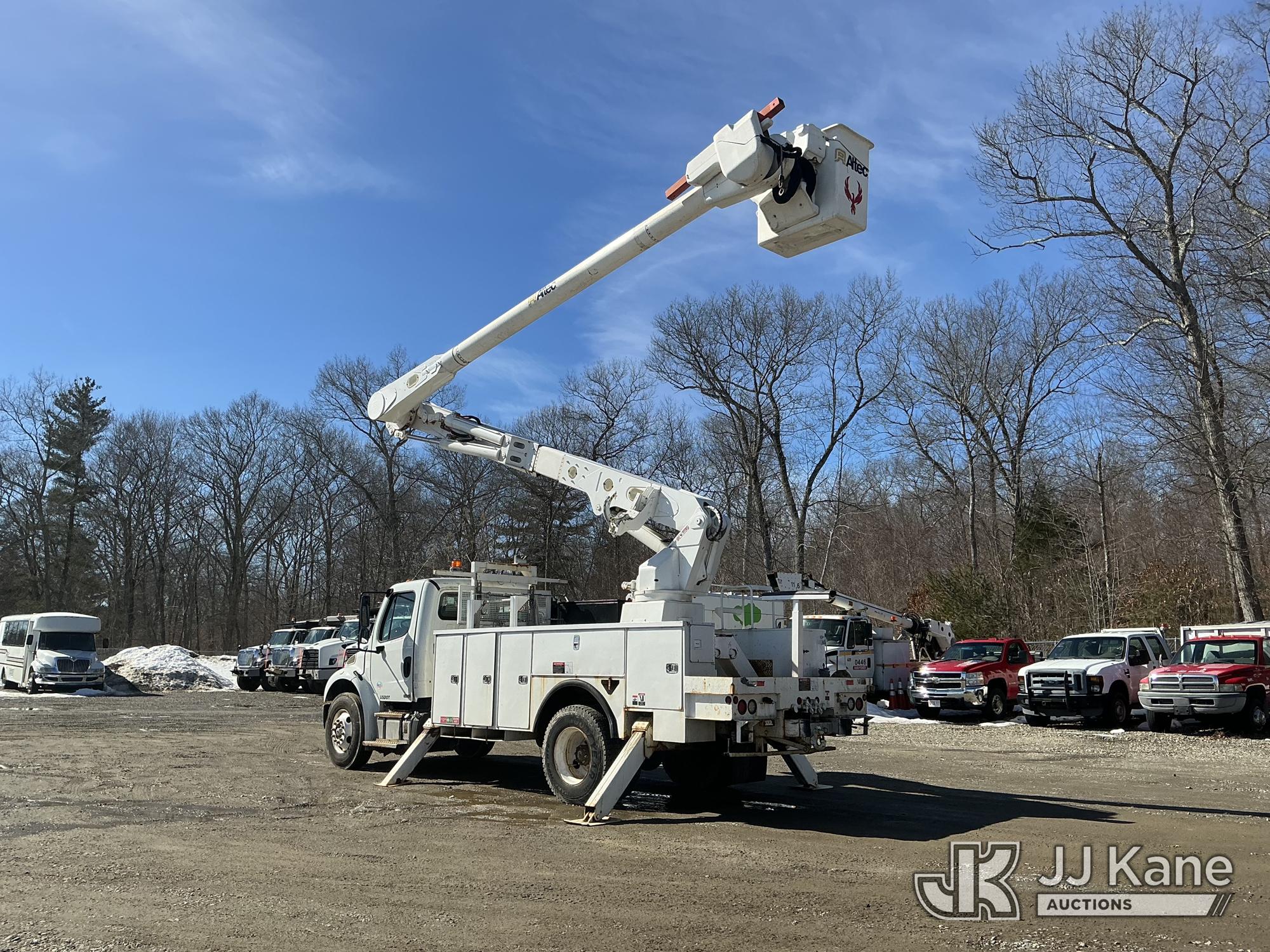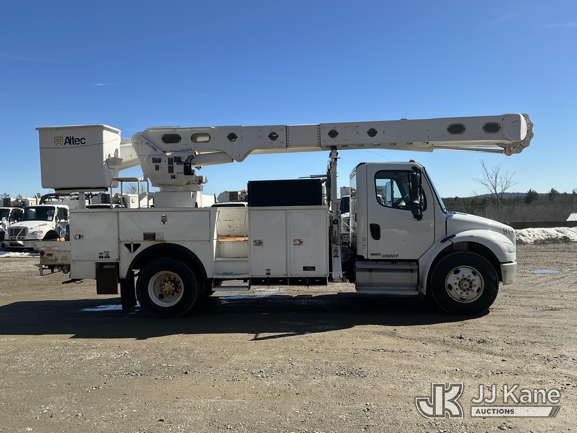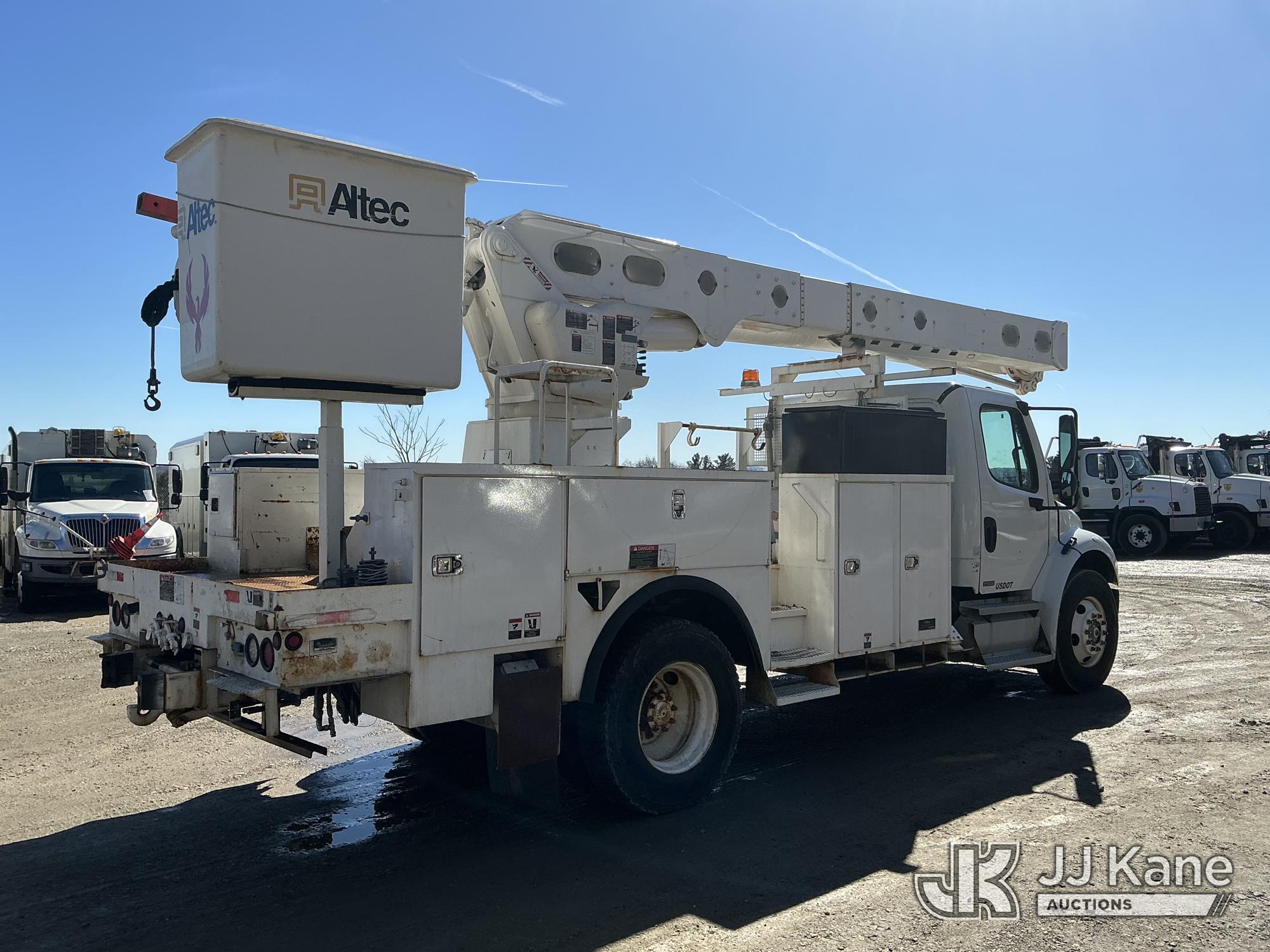 Altec AM55, 60 ft, Over-Center Material Handling Bucket Truck s/n 1010DM3064, with two-man bucket & 4 hyd outriggers, rear mounted on 2011 Freightliner M2 106 Utility Truck, Cummins 6.7L 4X2, diesel, Auto, A/C, (82,328 miles) (Runs, Moves & Upper Operates) (Missing Upper ID Plate) (Reads 11,484 hours) This is a Titled Item*