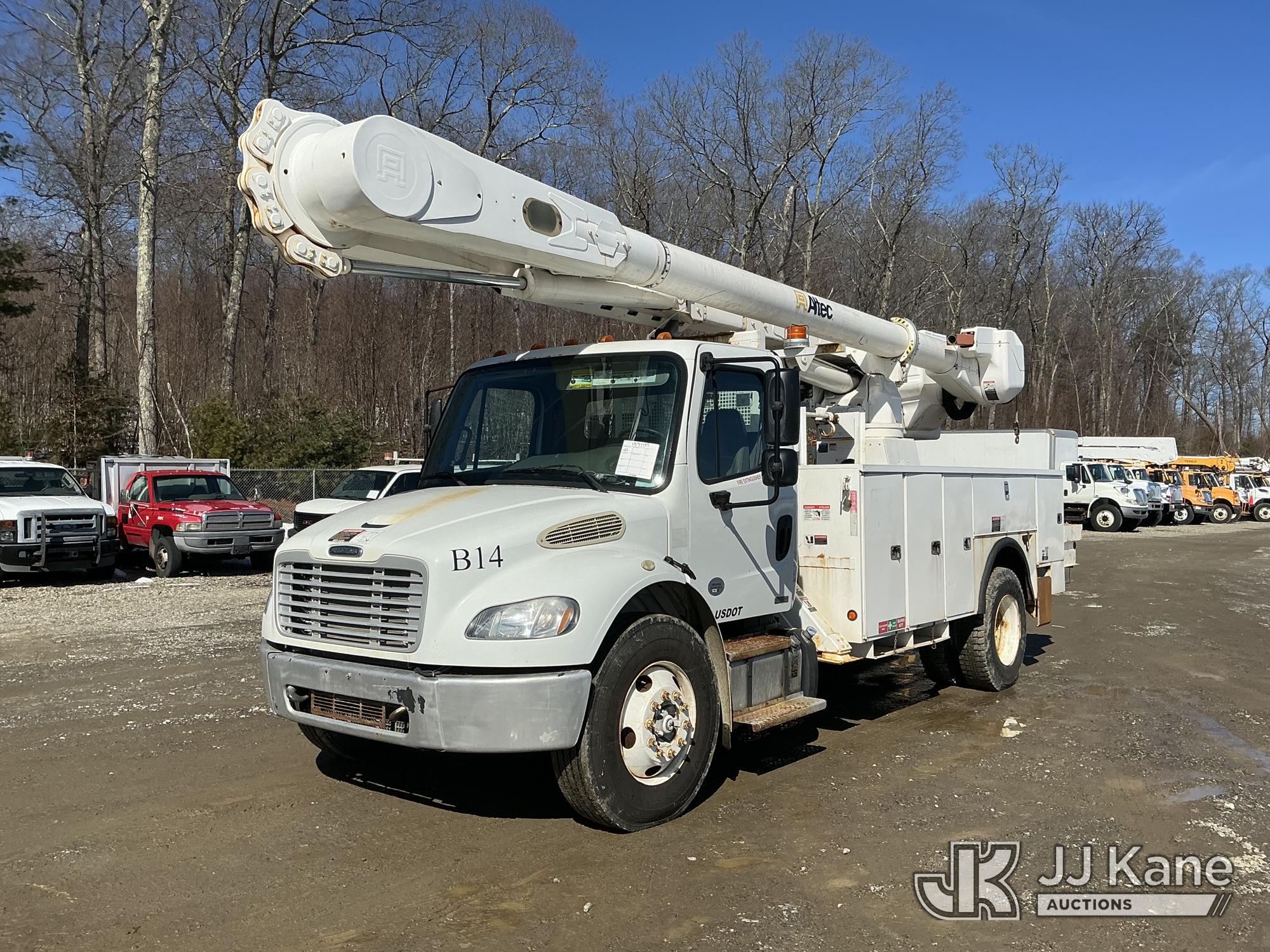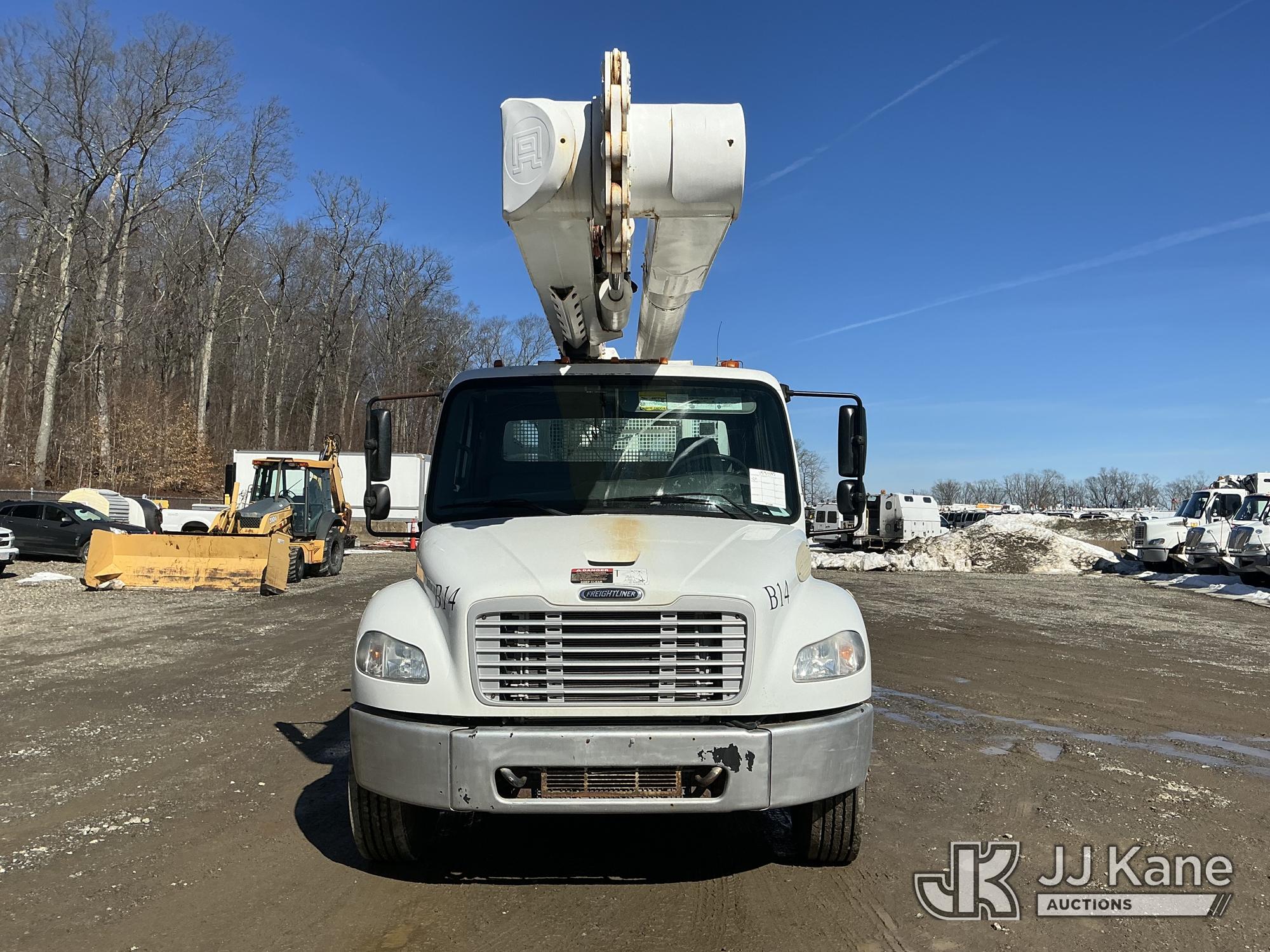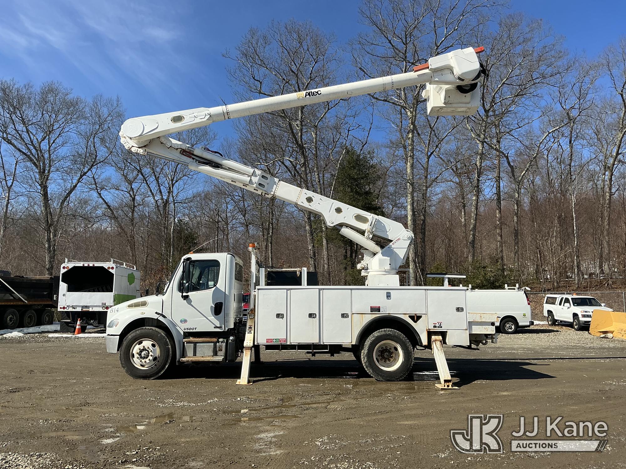 Altec AM55, 60 ft, Over-Center Material Handling Bucket Truck s/n 1010DM3064, with two-man bucket & 4 hyd outriggers, rear mounted on 2011 Freightliner M2 106 Utility Truck, Cummins 6.7L 4X2, diesel, Auto, A/C, (82,328 miles) (Runs, Moves & Upper Operates) (Missing Upper ID Plate) (Reads 11,484 hours) This is a Titled Item*