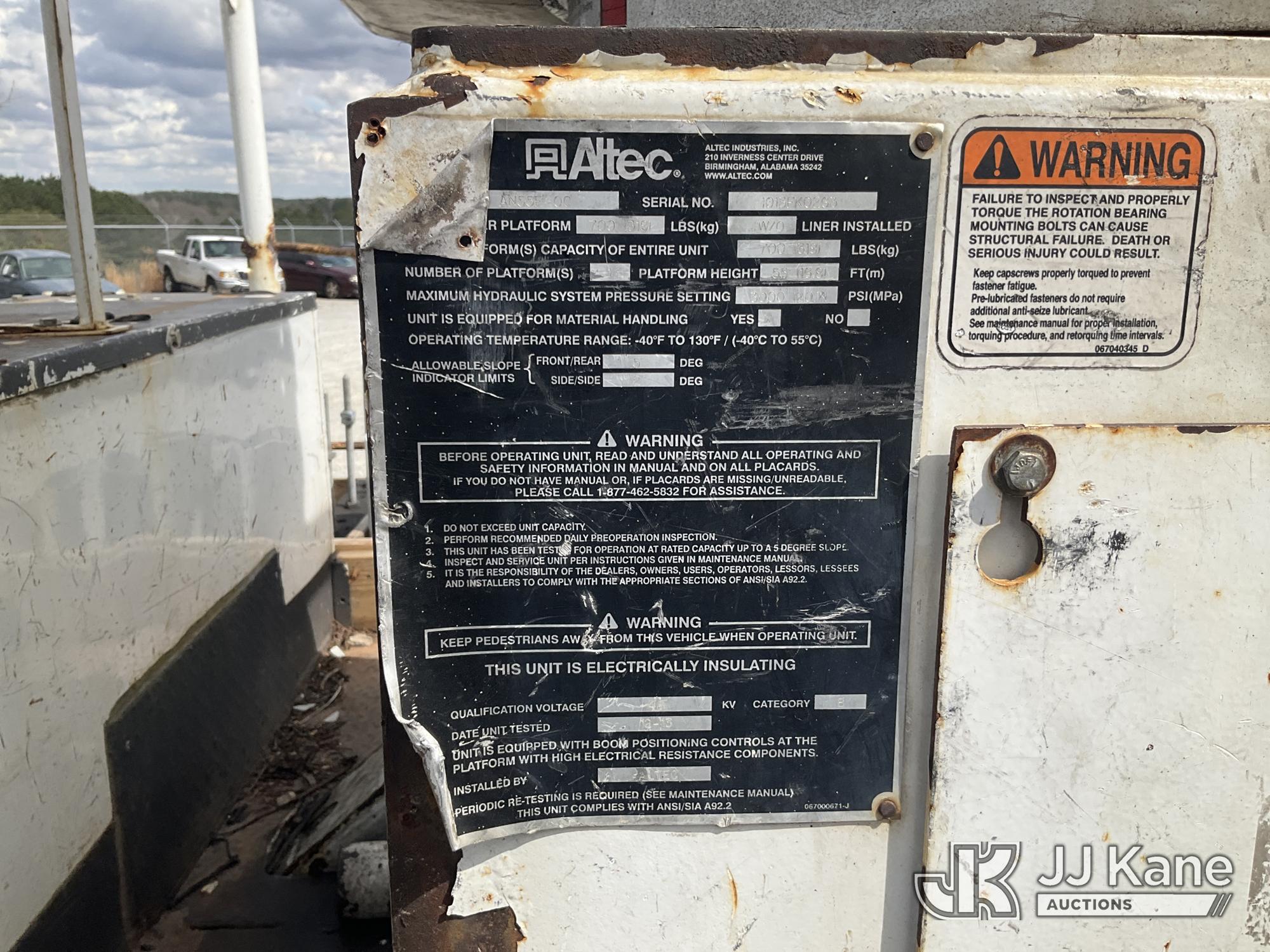 Altec AN55E-OC, 60 ft, Material Handling Bucket Truck s/n 1013FK0263, with two-man bucket & 4 hyd outriggers, rear mounted on 2014 Freightliner M2 106 Utility Truck, Cummins 6.7L Diesel, 4X2, Auto, A/C, (127,221 miles) (Runs, Moves & Upper Operates) This is a Titled Item*