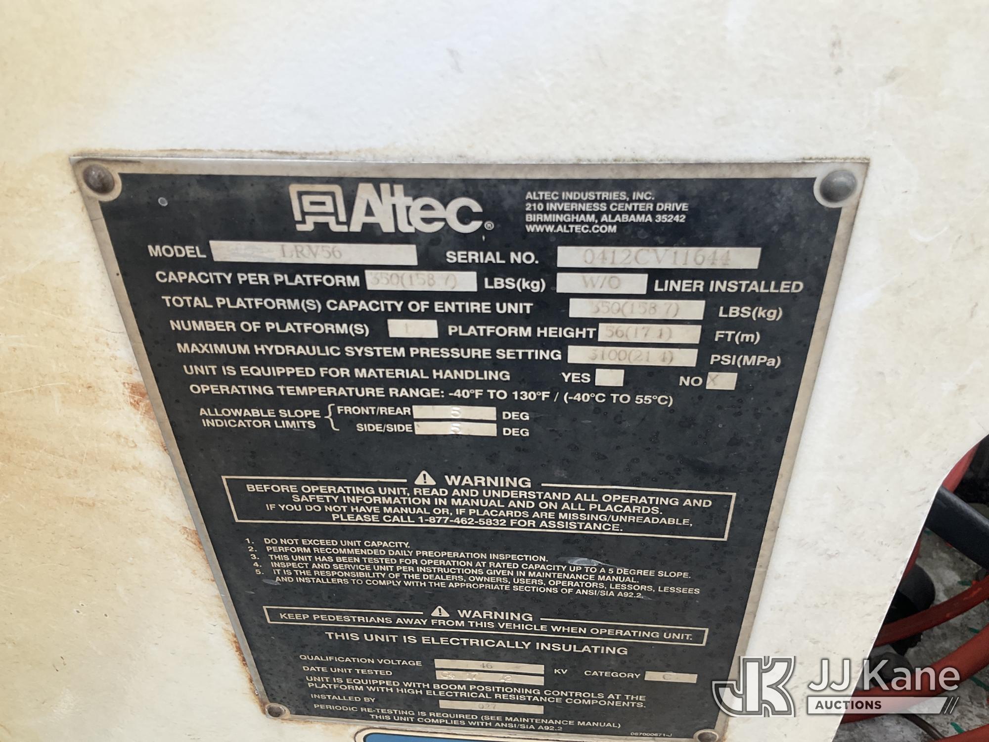 Altec LRV-56, 61 ft, Over-Center Bucket Truck s/n 0412CV11644, with single-man Bucket, mounted behind cab on 2012 Freightliner M2 106 Chipper Dump Truck, Cummins ISB 6.7L diesel, 6-spd, with 11 ft body, (96,946 miles) (Runs, Upper & Dump Operates) (Does Not Move, Missing Upper Controls, Check Engine Light On) (Seller States: Bad Rear Differential) ( The manufacturer has notified JJ Kane that this equipment is subject to an open recall. CSN 672 LRV/LR7 Leveling Yoke Inspection The equipment should not be operated until this is addressed. Buyer is responsible for reviewing the recall notice and contacting the manufacturer to schedule the recommended corrective actions. Associated costs may be covered by the manufacturer in some cases.) This is a Titled Item*