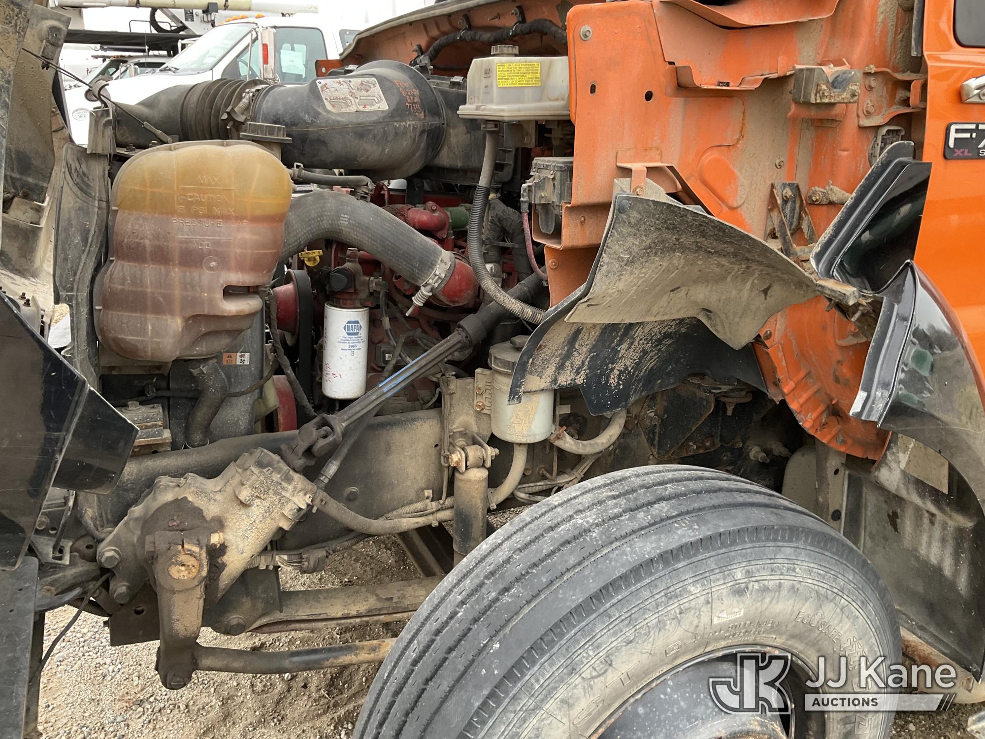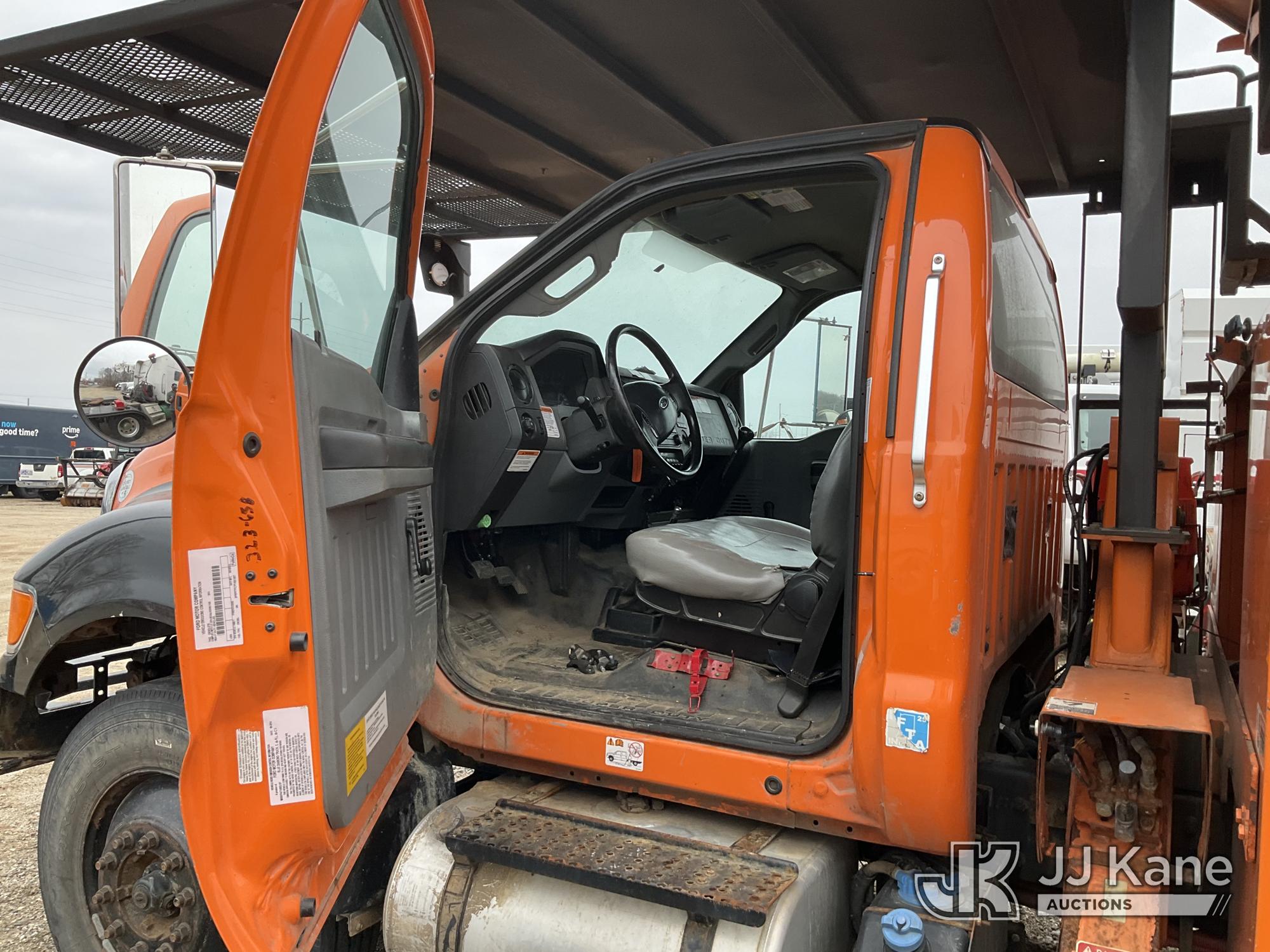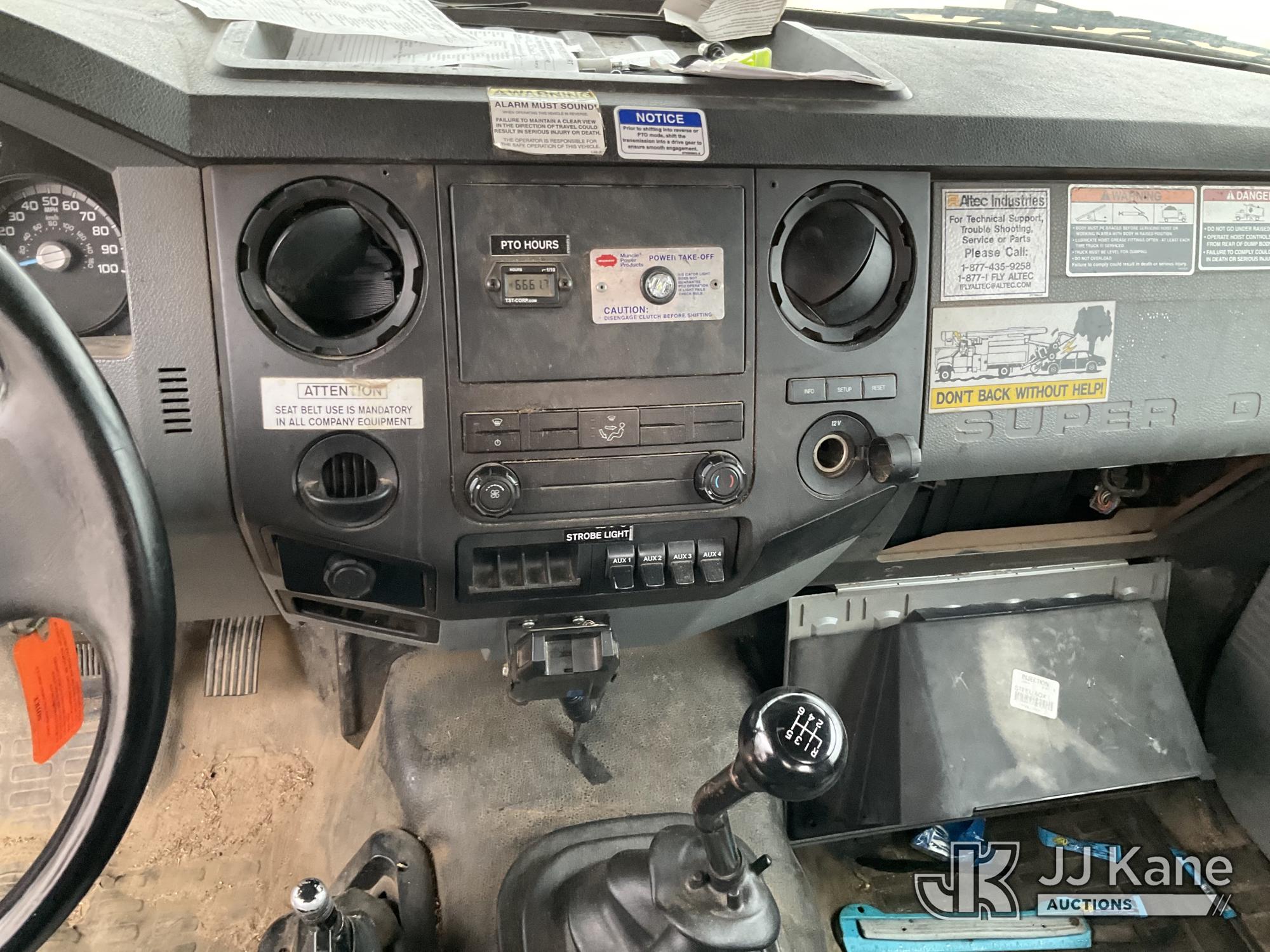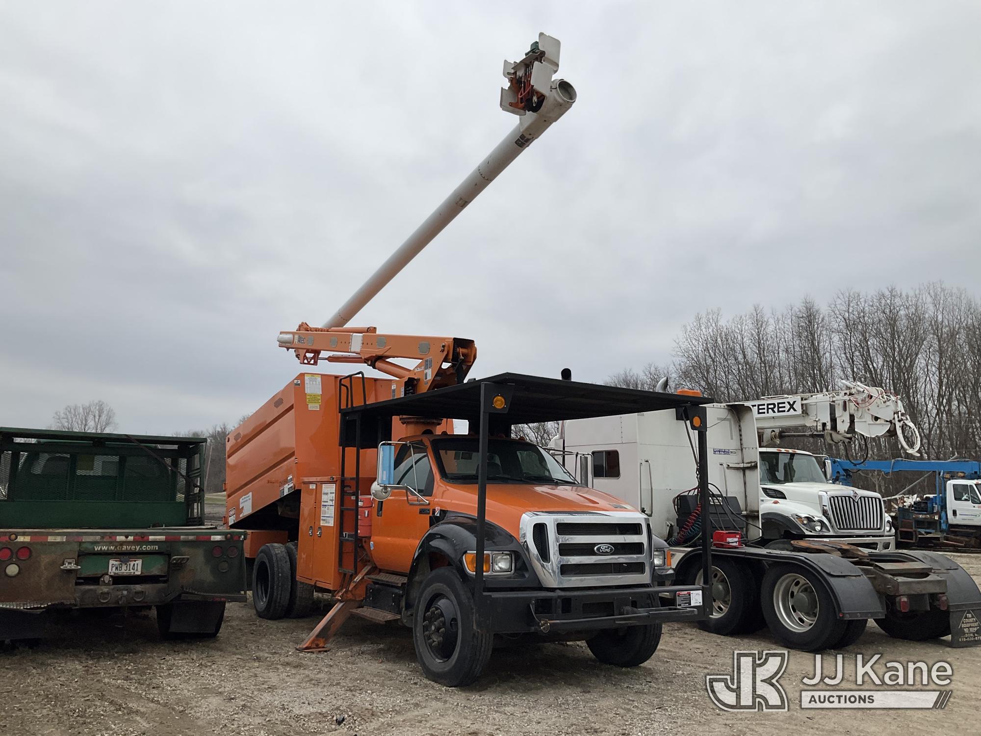 Altec LR756, 61 ft, Over-Center Bucket Truck s/n 1114FF3251, with single man bucket, two hydraulic outriggers, mounted behind cab on 2015 Ford F-750 Regular Cab 2WD DRW Chipper Dump Truck, 6.7L L6 DIESEL 6-spd, (83,947 miles) (Runs, Moves, Operates) (Driveshaft Hardware Missing - Unsafe to Drive, No Bucket, Rust) (Seller States: Electrical and Fuel System Issues) This is a Titled Item*