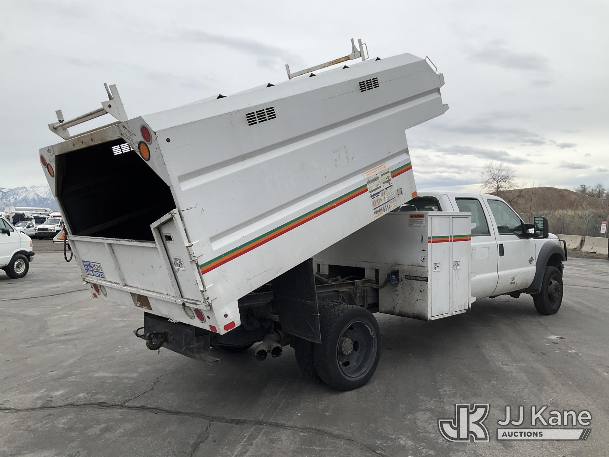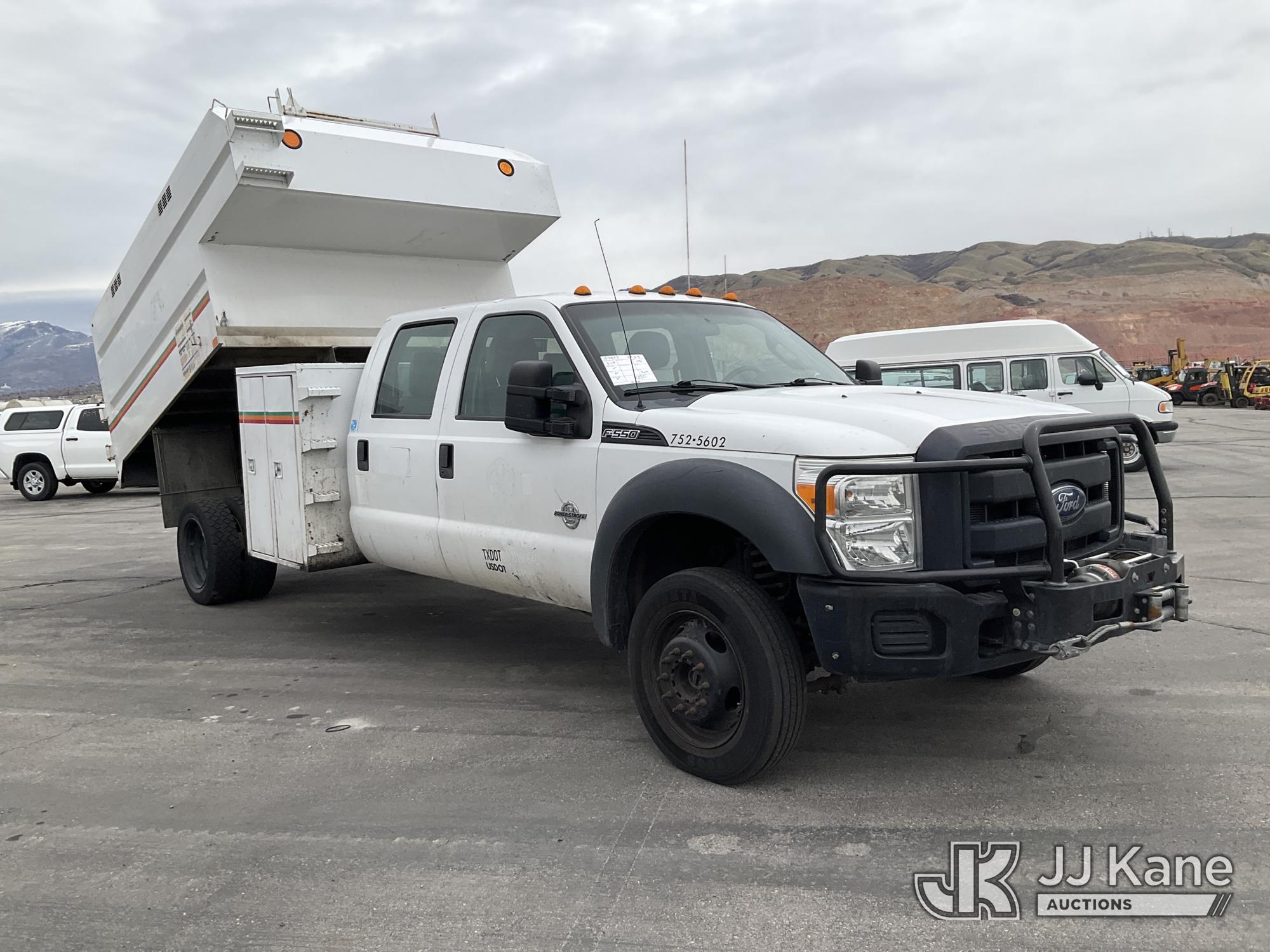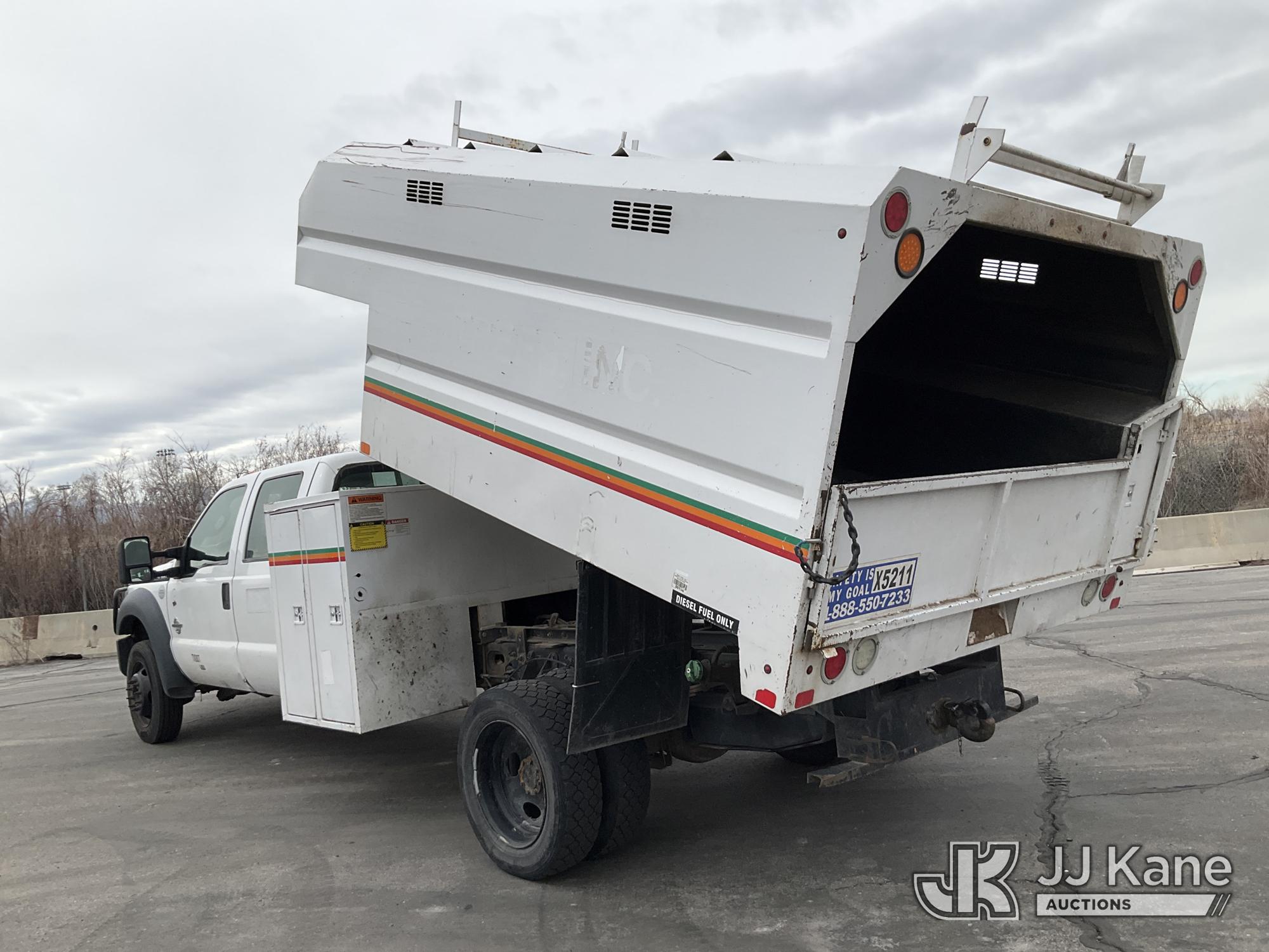 2015 Ford F550 4x4 Crew-Cab Chipper Dump Truck, 6.7L diesel, Auto, A/C, (133,892 miles) (Runs, Moves & Dump Operates) (Check Engine & Airbag Lights On, Seller States: Major Repairs Needed) This is a Titled Item*