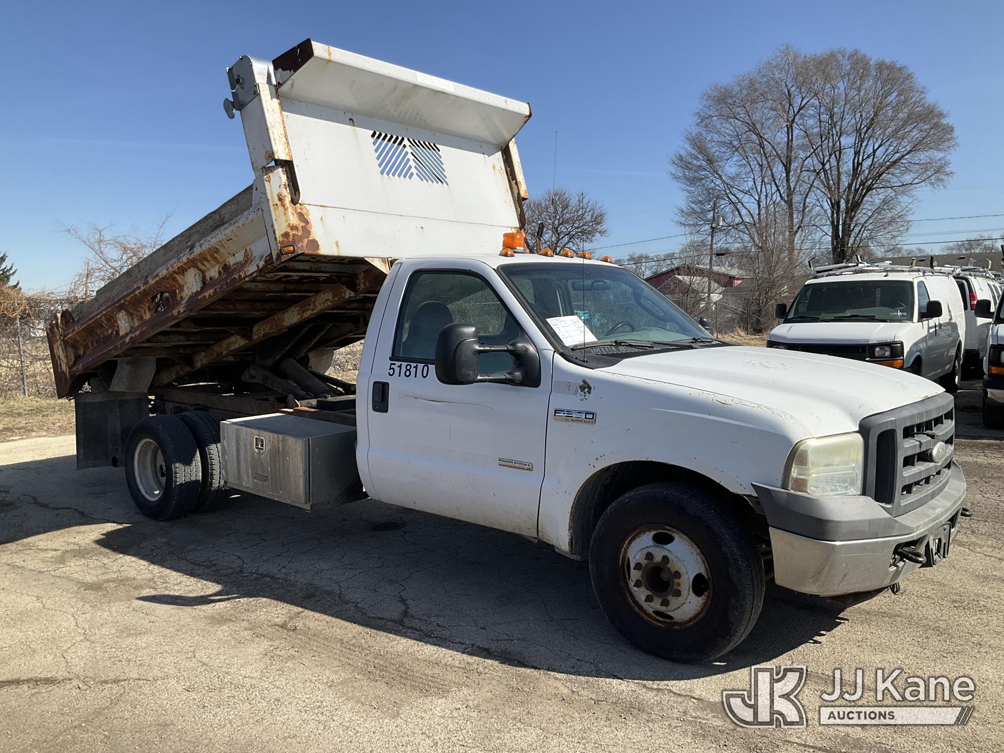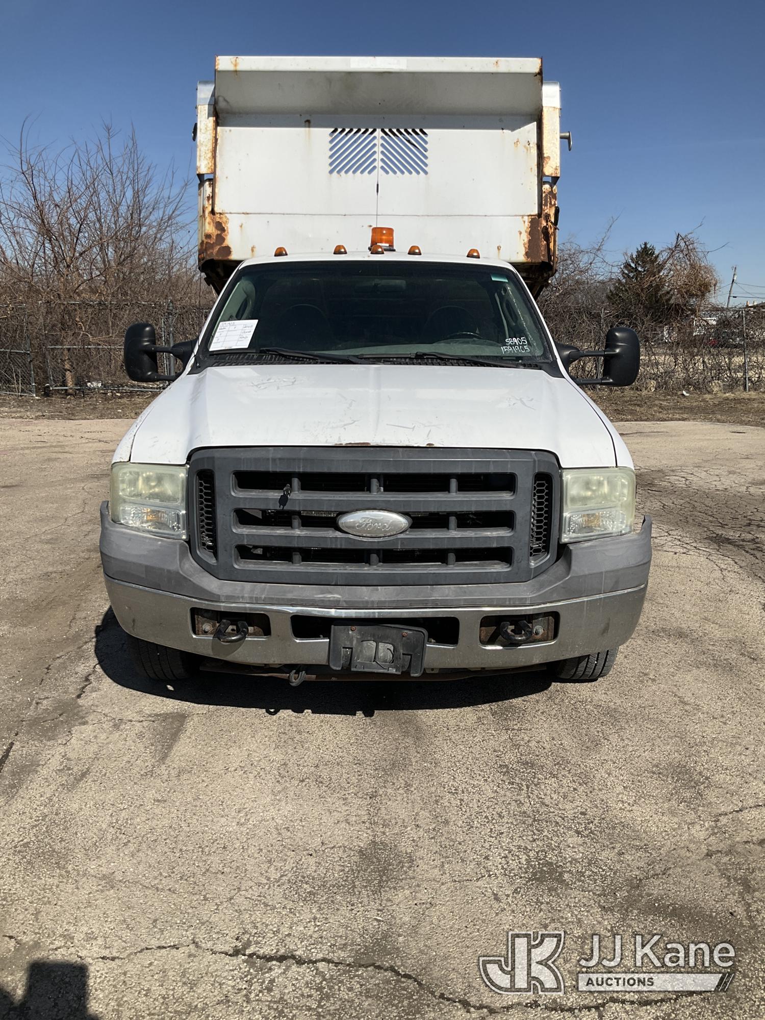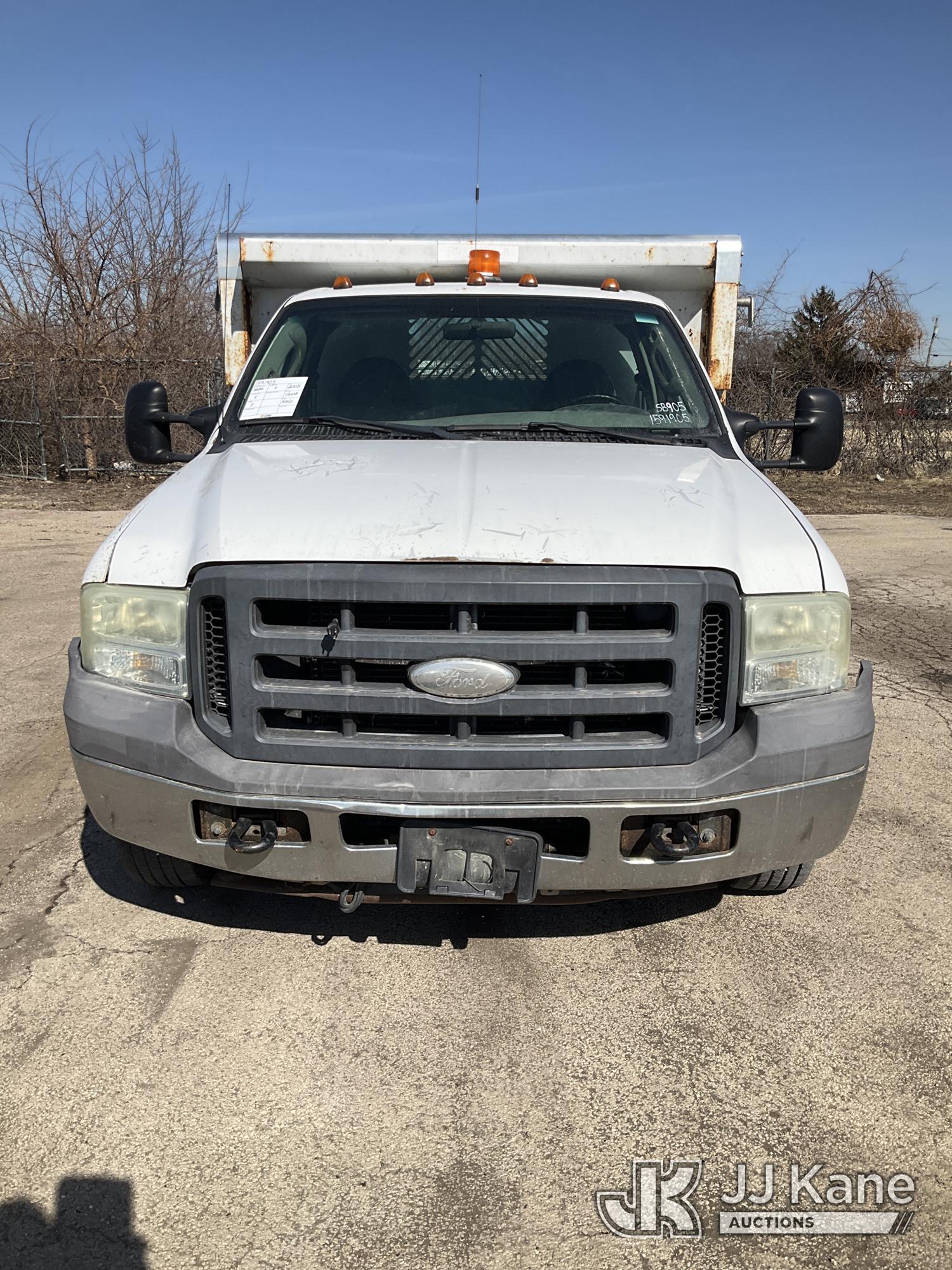 2005 Ford F-350 SD Dump Truck, 6.0L V8 OHV 32V TURBO DIESEL RWD, Auto, A/C, (Exempt from Odometer Disclosure - Reads 131,648 miles) (Runs, Moves, Dump Operates) (Paint Damage) This is a Titled Item*