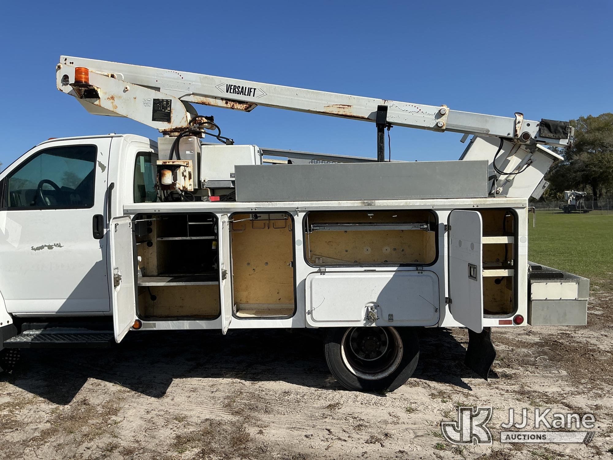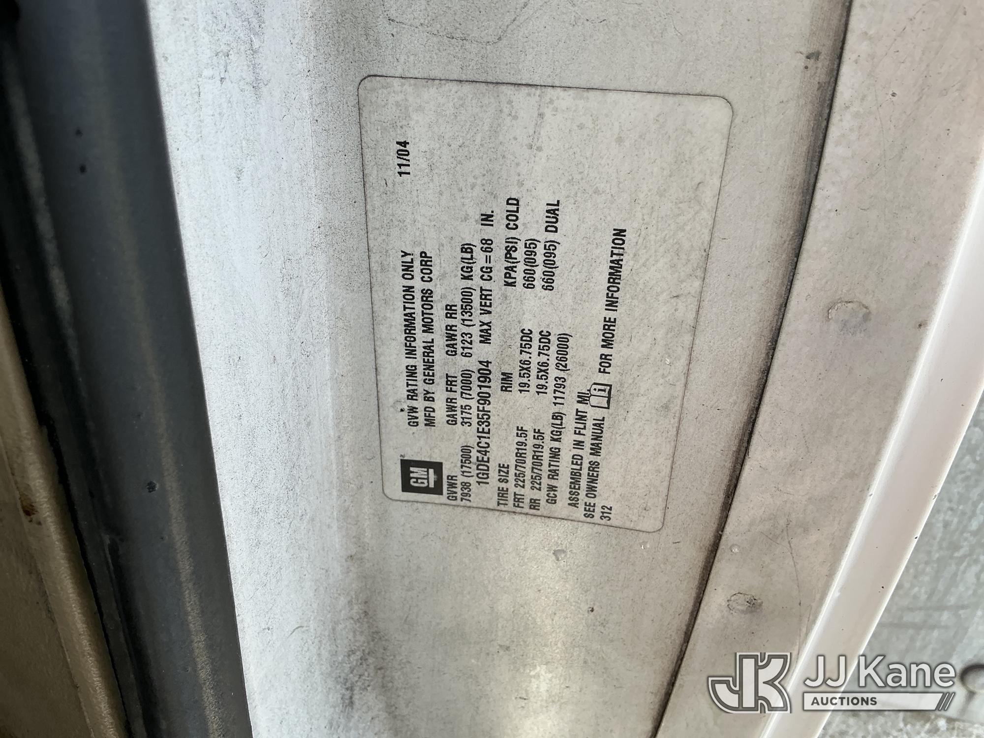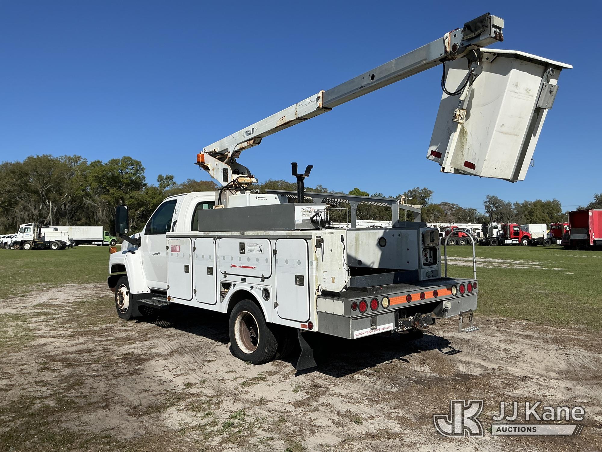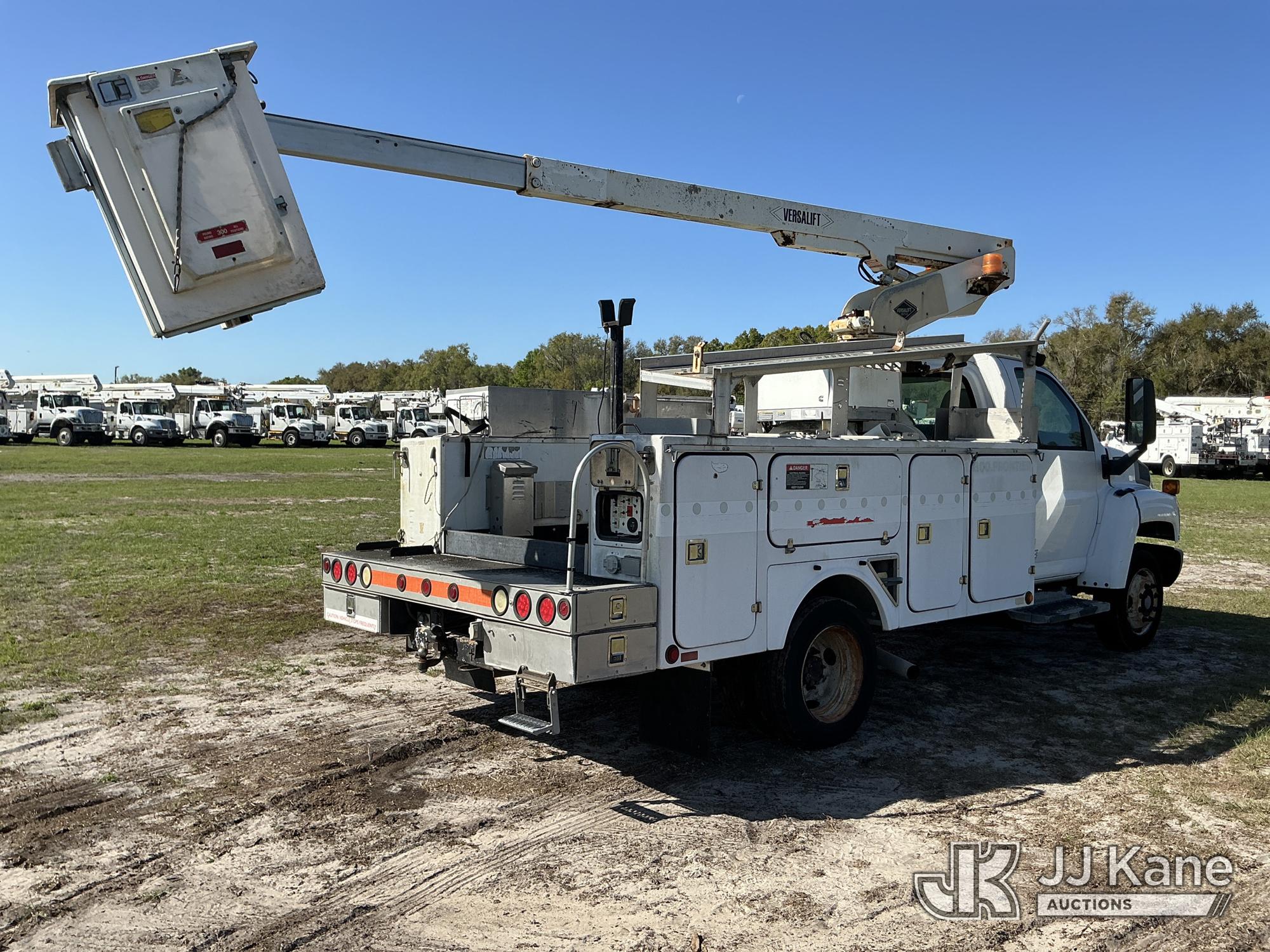 Versalift TEL29N-02, Telescopic Non-Insulated Bucket Truck s/n AG050145, with single-man bucket, mounted behind cab on 2005 GMC C4500 Service Truck, 8.1L V8 OHV 16V Gas, 4X2, Auto, A/C, with Onan generator, (Exempt from Odometer Disclosure - Reads 137,088 miles) (Runs, Moves, Upper Operates) (Tilt Bucket INOP, Hydraulic Leak, Needs Batteries, Brake Light On) (FL Residents Purchasing Titled Items – tax, title & registration fees will be collected at the maximum rate of $400.00 under 25,999 and $800.00 for Over 26,000 and $250.00 trailers – Proof of insurance is mandatory; Out of State Residents Purchasing Title Items – tax will be collected based upon your state rate.) This is a Titled Item*