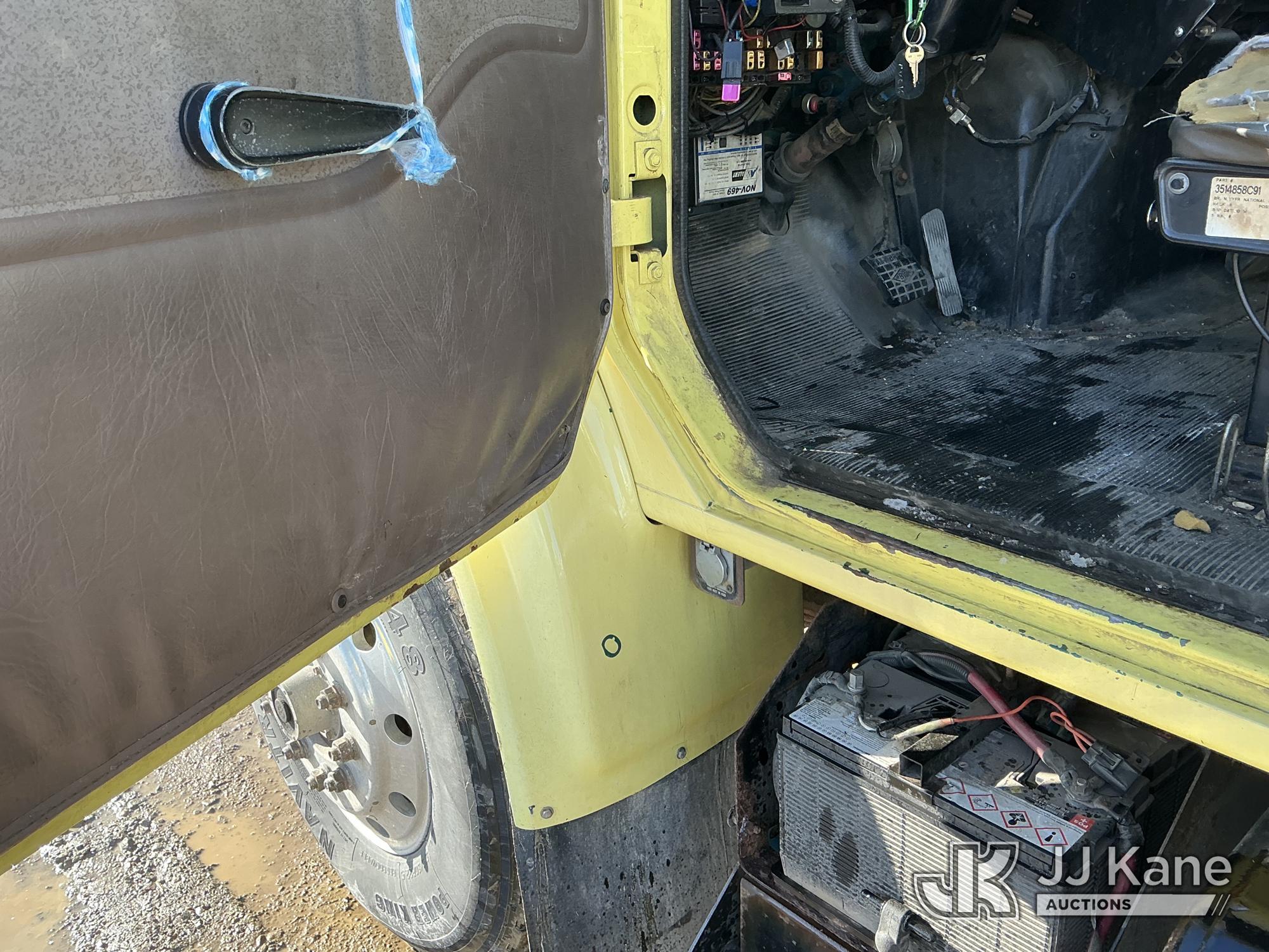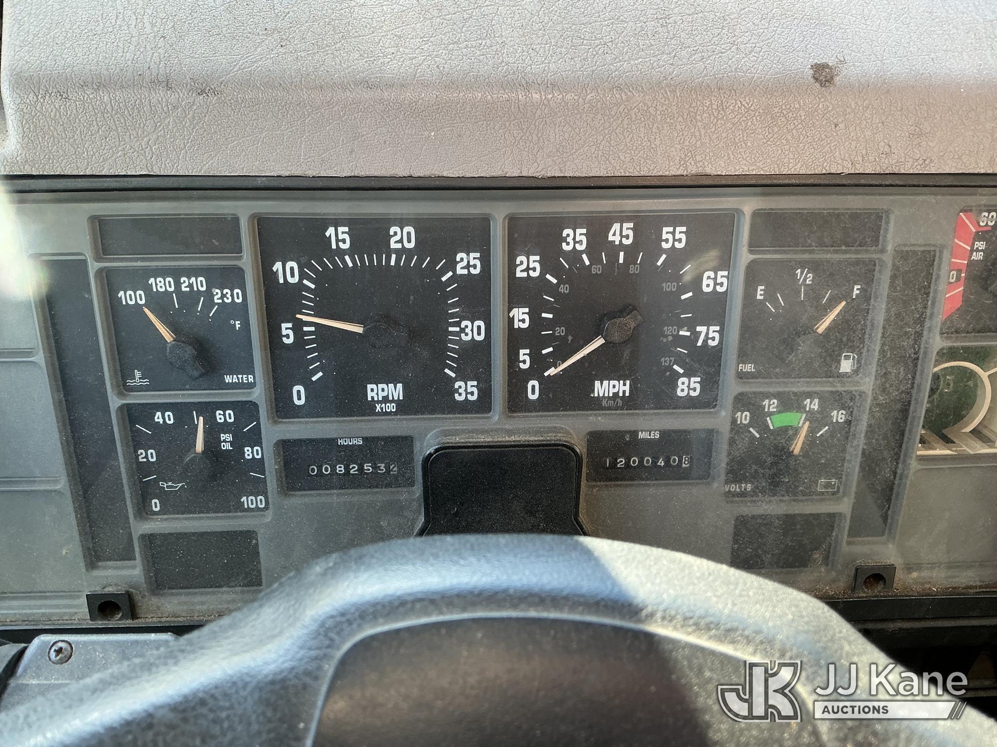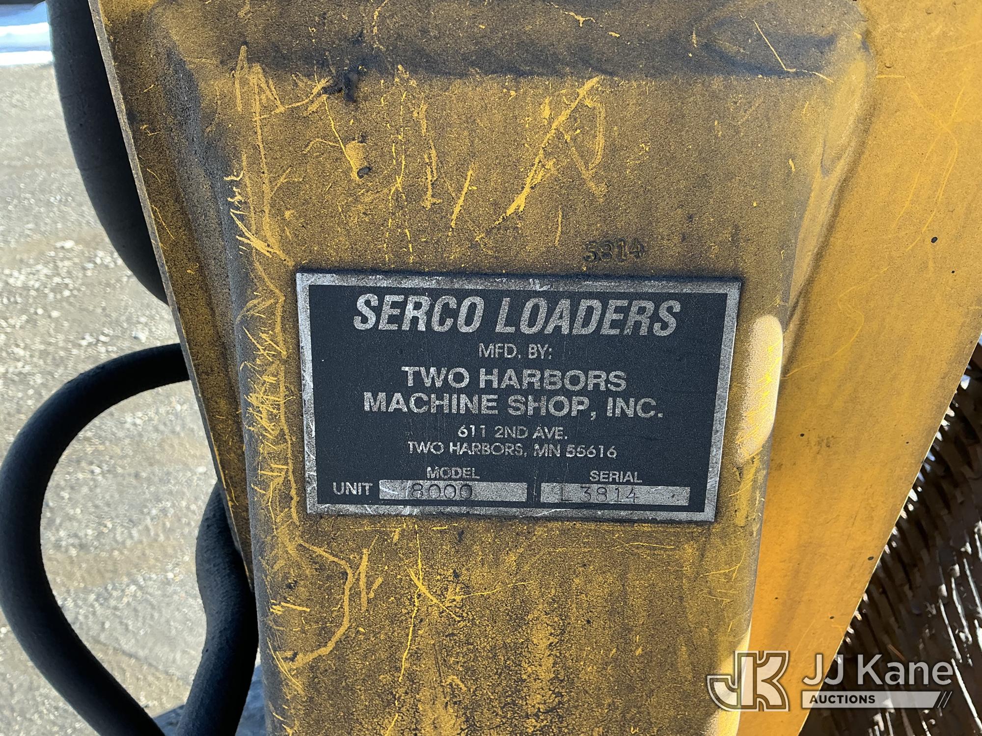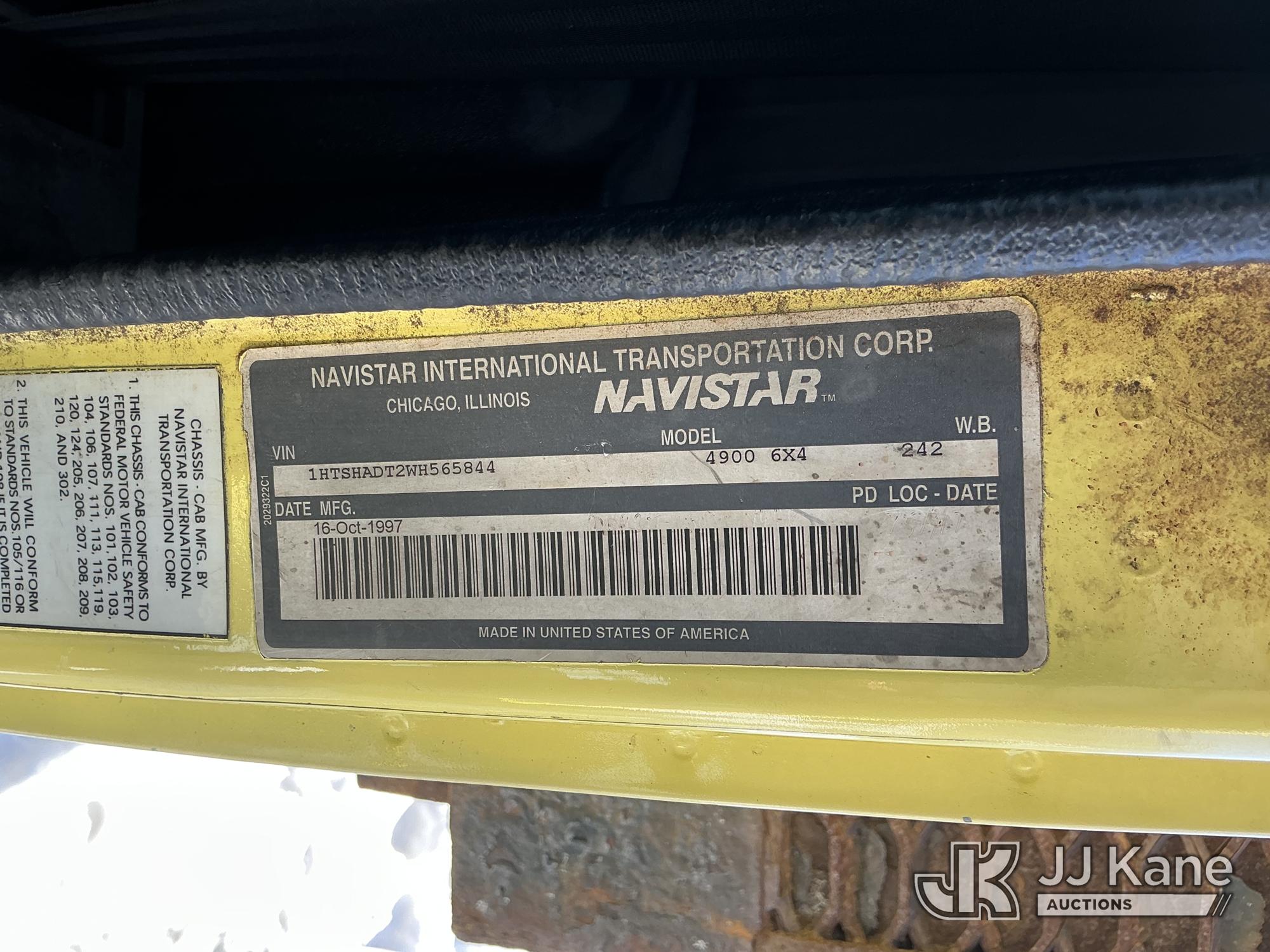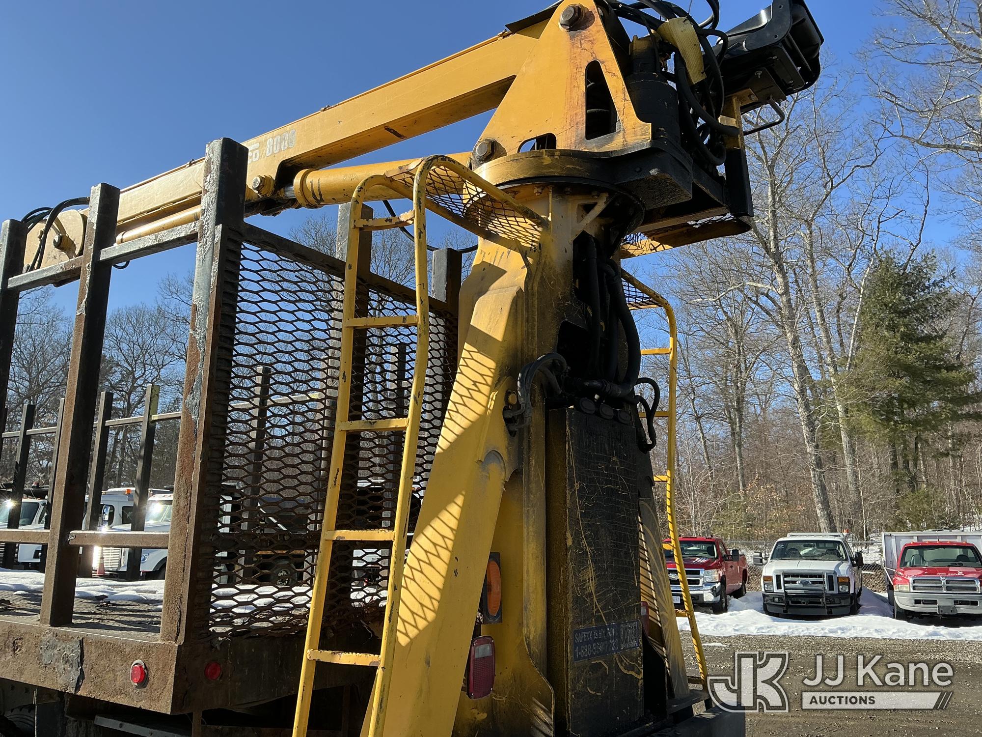 Serco 8000, 8,000 Lb Grappleboom/Log Loader Crane s/n L3814, with 27 ft reach & 2 hyd outriggers & riding console, rear mounted on 1998 International 4900 T/A Flatbed/Log Truck, DT530 6X4, diesel, Auto, (Exempt from Odometer Disclosure - Reads 120,040 miles) (Runs & Moves) (Road Side Outrigger Control Seized, Upper Condition Unknown, Road Side Door Handle Inoperable, Seller States: Loader Valve Bank & Rotary Manifold Are Leaking & Need Replacement) (Reads 8,253 hours) This is a Titled Item*
