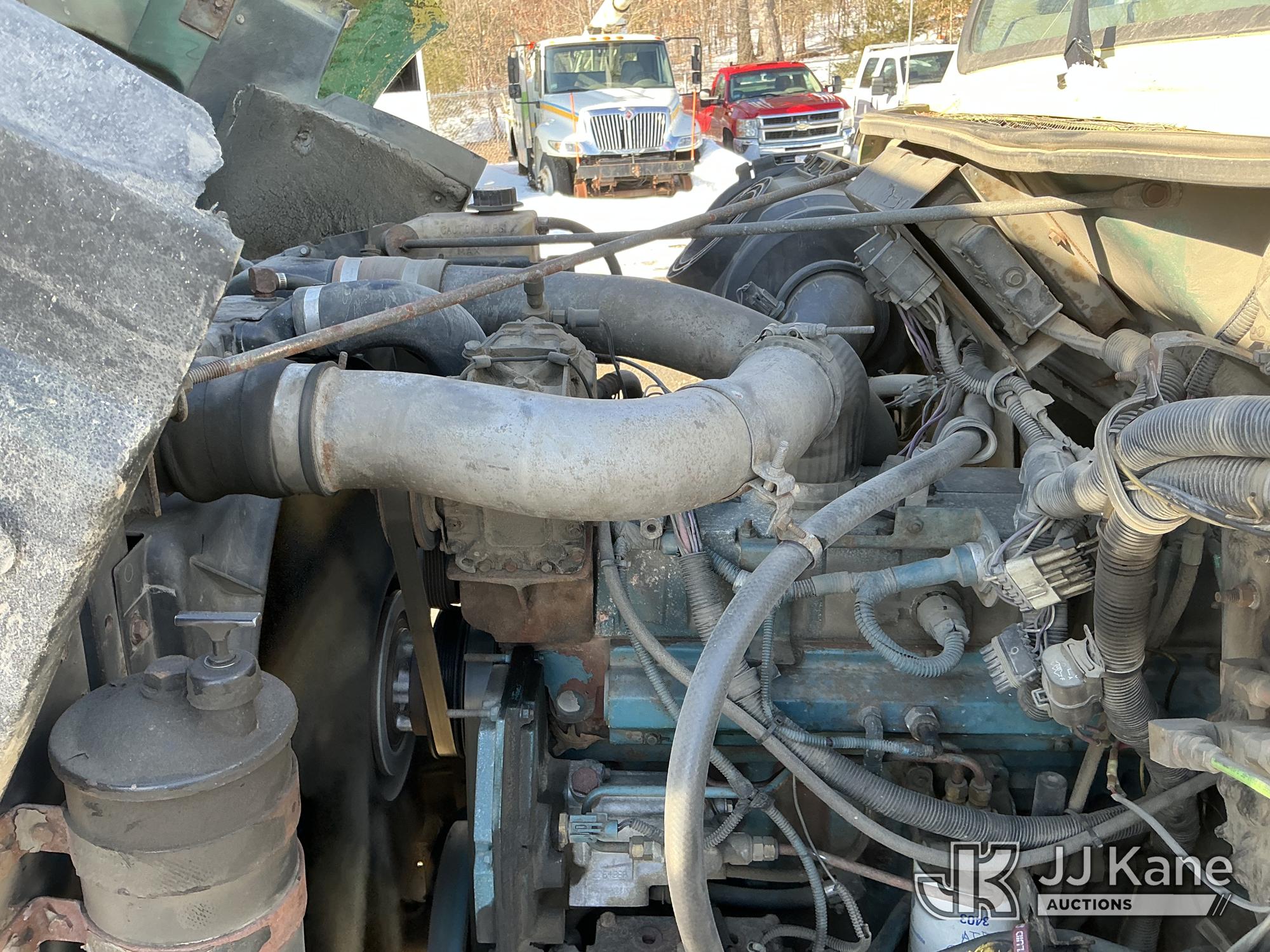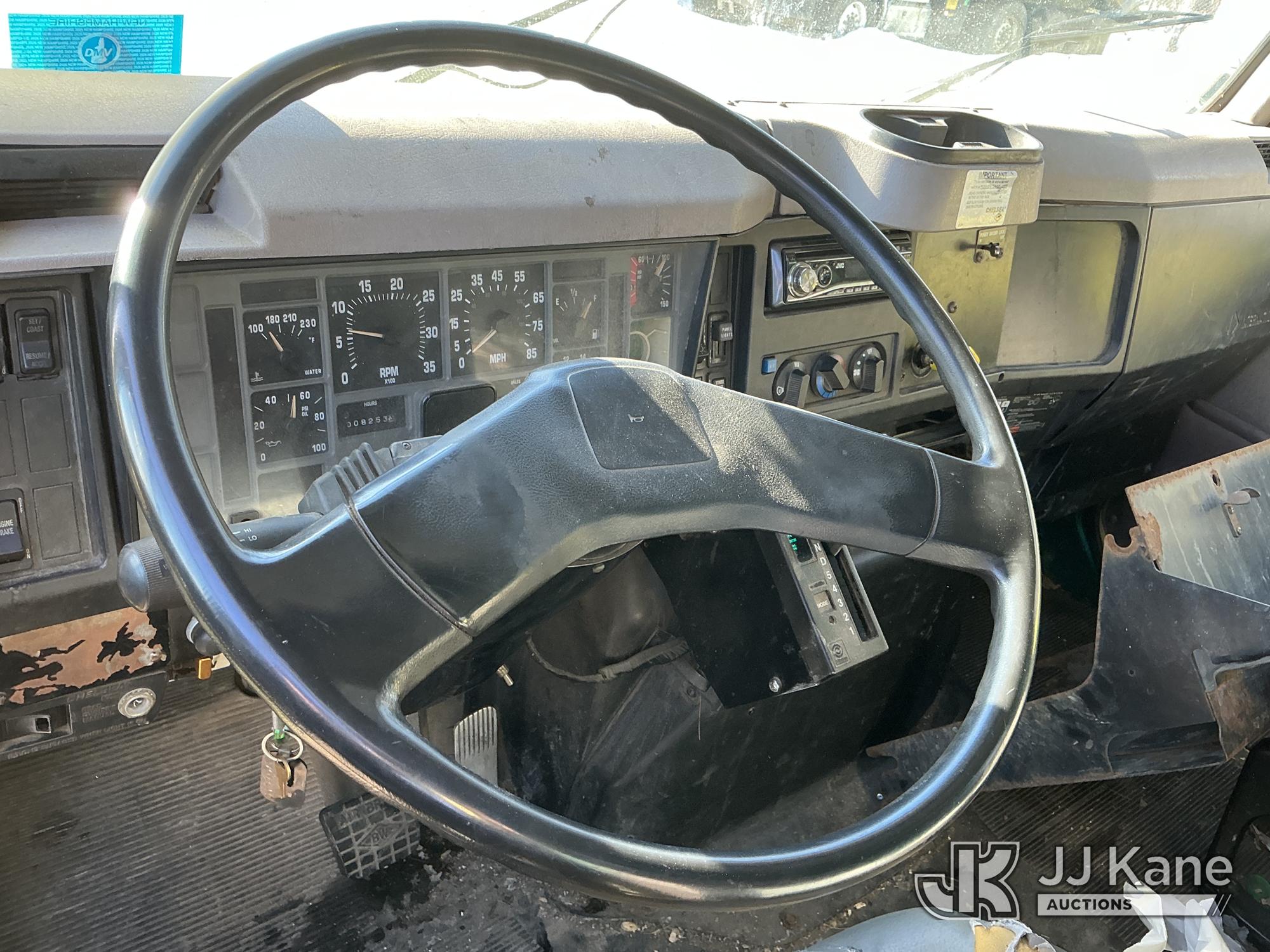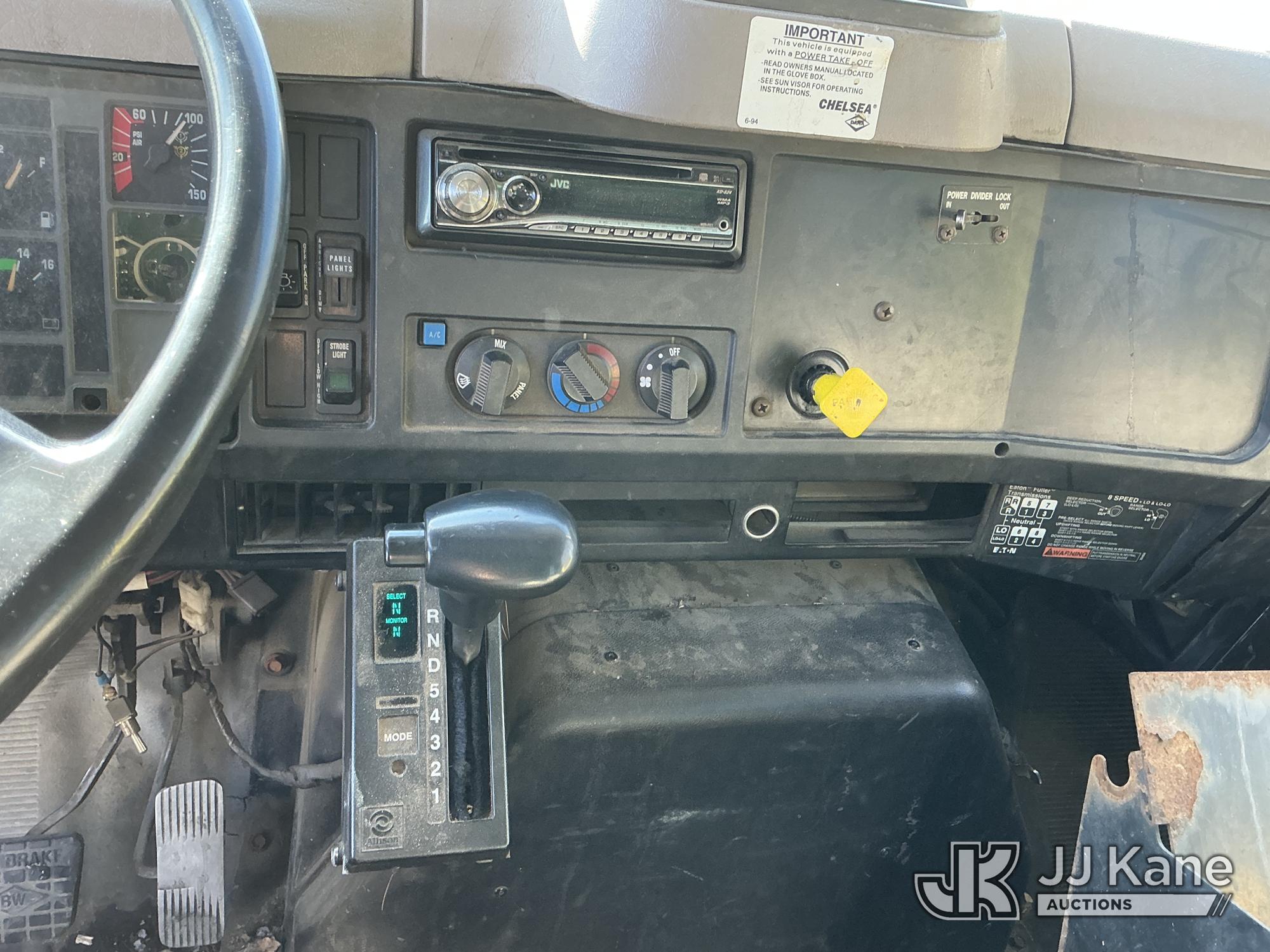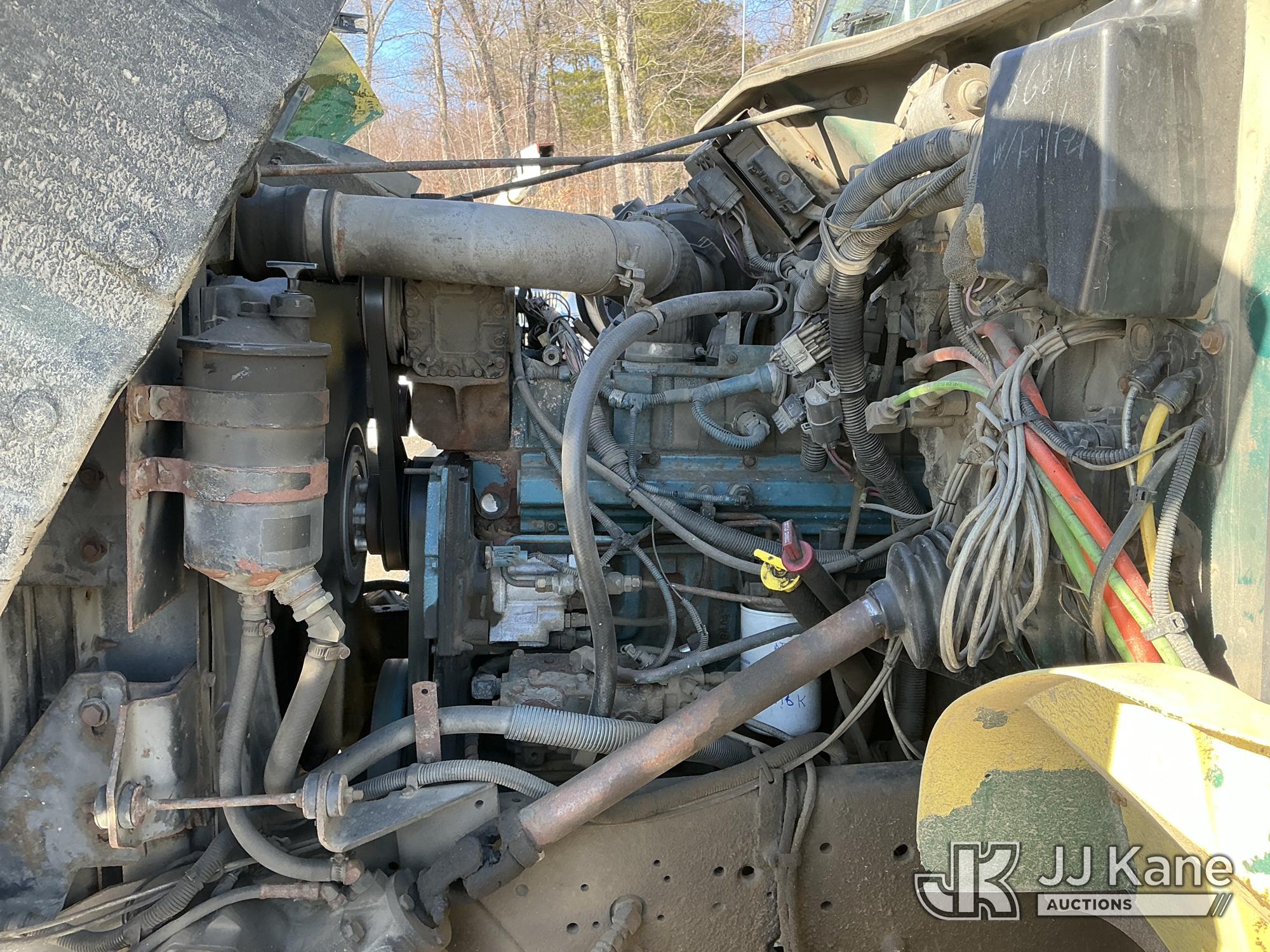 Serco 8000, 8,000 Lb Grappleboom/Log Loader Crane s/n L3814, with 27 ft reach & 2 hyd outriggers & riding console, rear mounted on 1998 International 4900 T/A Flatbed/Log Truck, DT530 6X4, diesel, Auto, (Exempt from Odometer Disclosure - Reads 120,040 miles) (Runs & Moves) (Road Side Outrigger Control Seized, Upper Condition Unknown, Road Side Door Handle Inoperable, Seller States: Loader Valve Bank & Rotary Manifold Are Leaking & Need Replacement) (Reads 8,253 hours) This is a Titled Item*