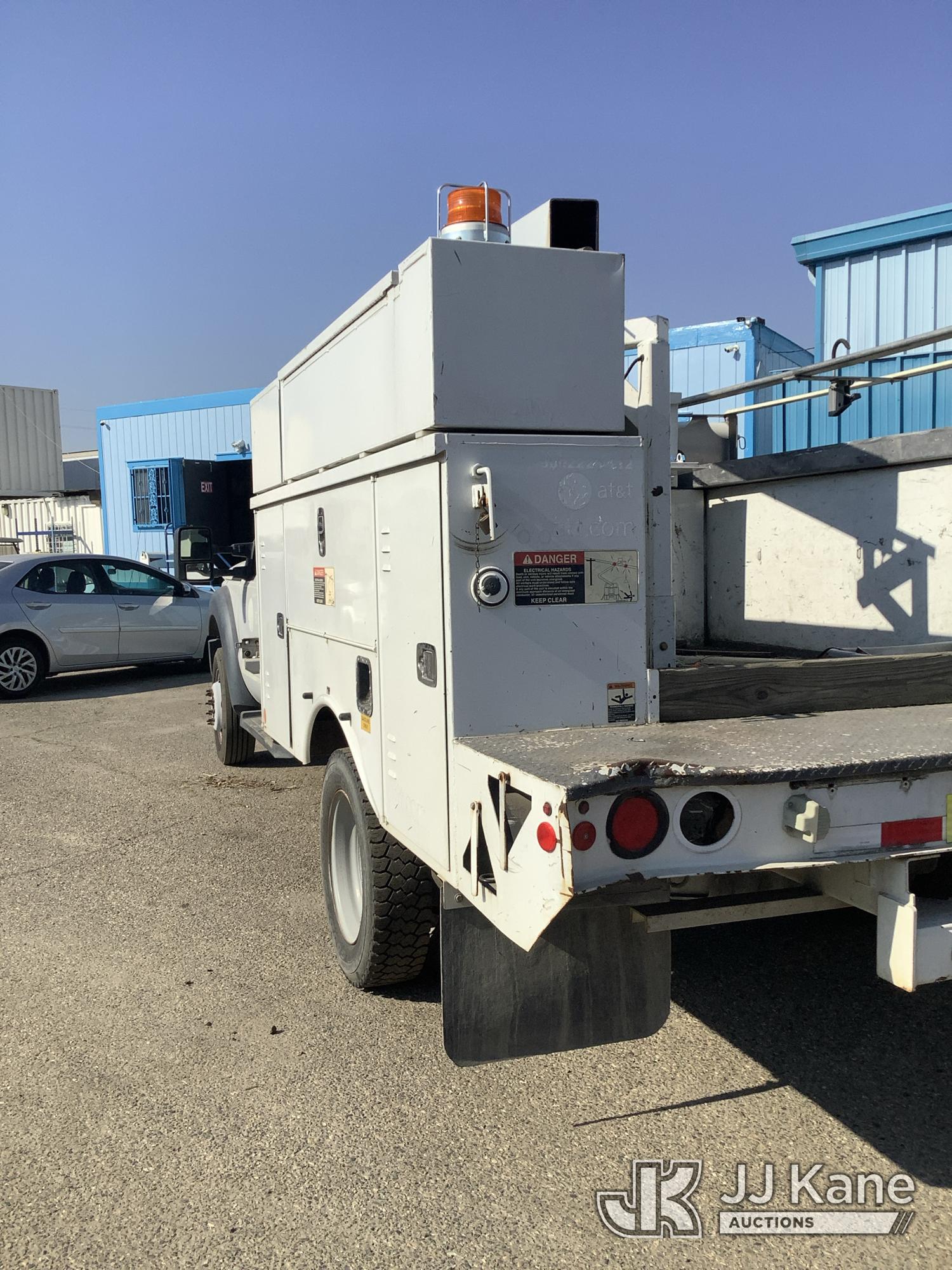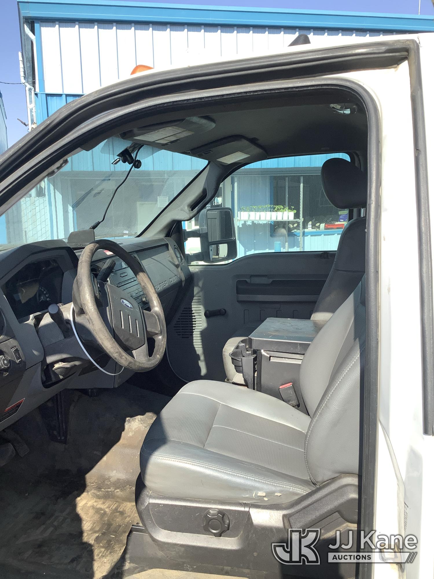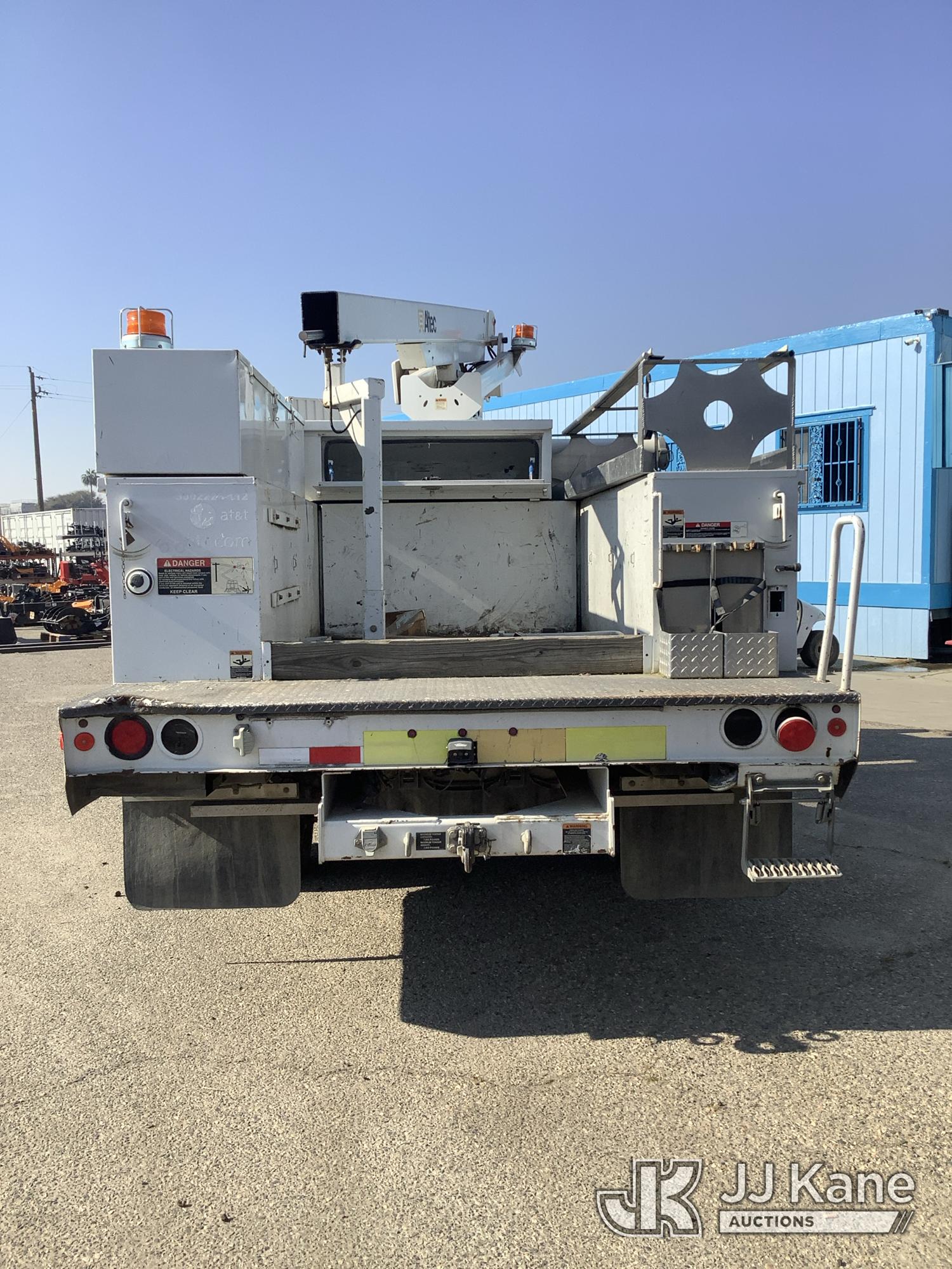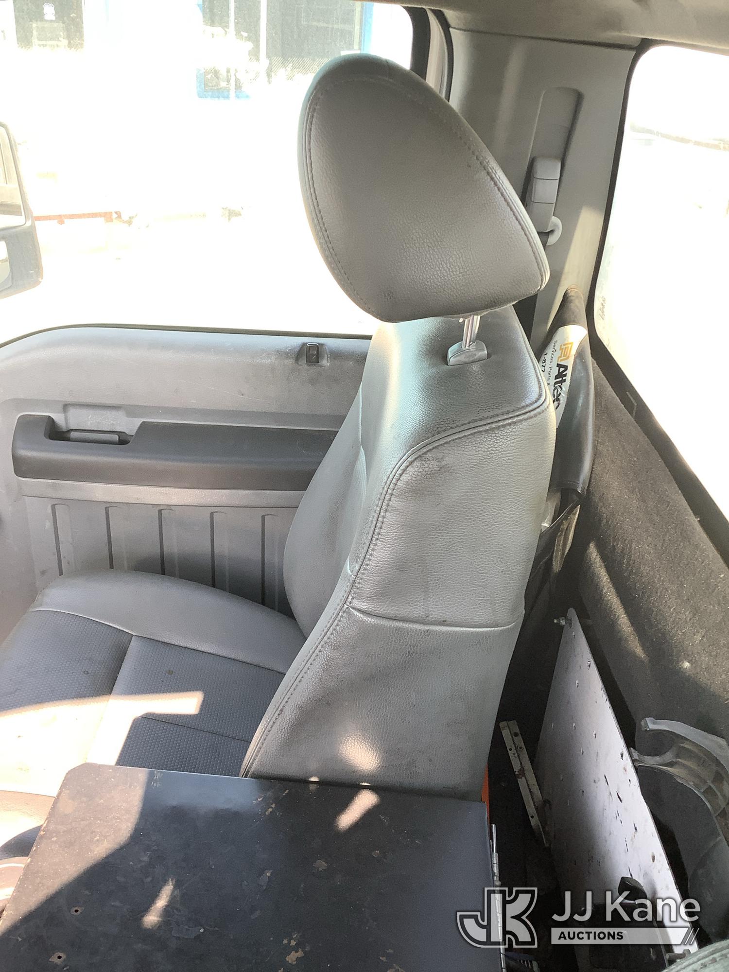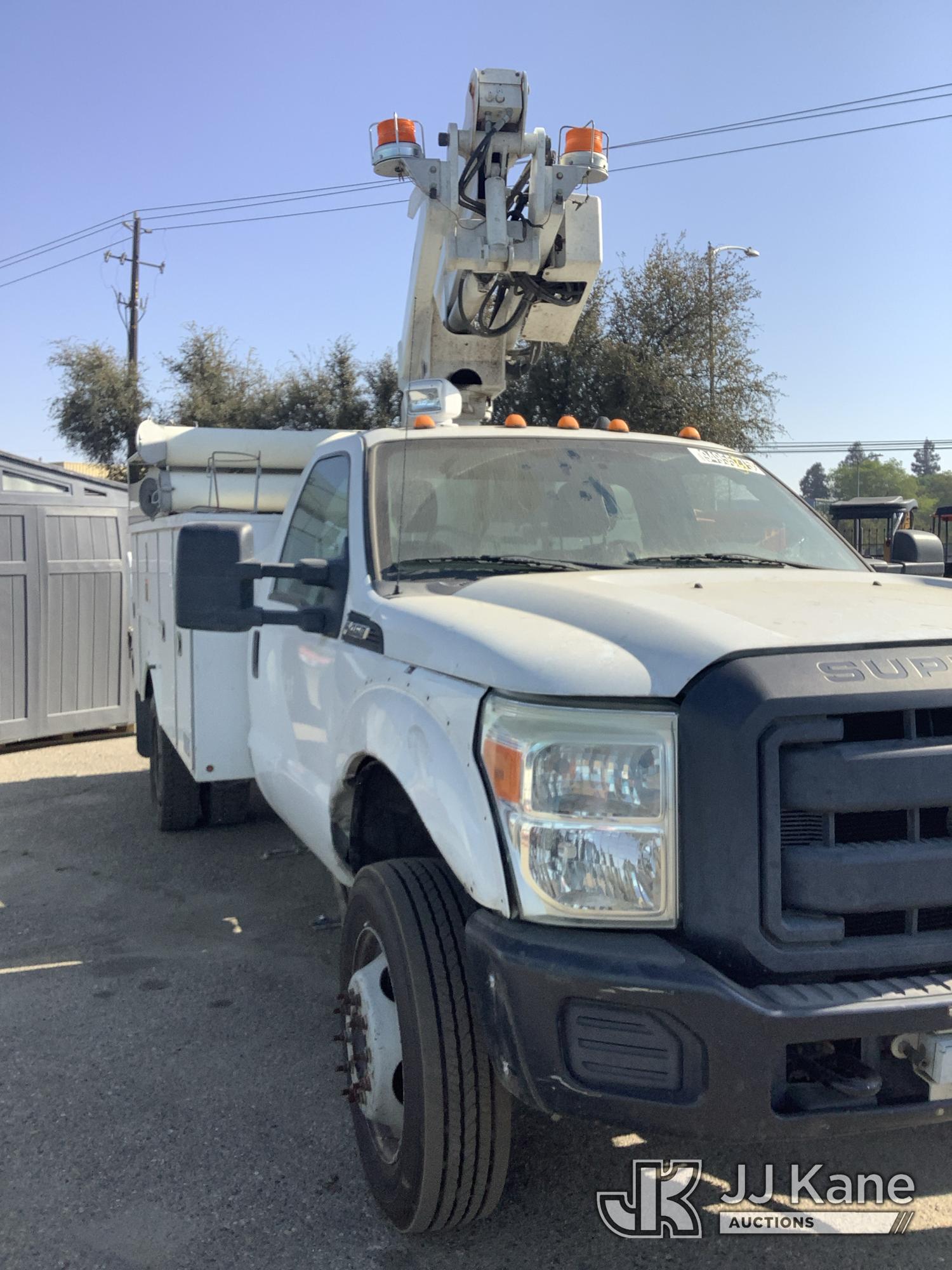 Altec AT200-A, 35 ft, Telescopic Non-Insulated Bucket Truck s/n 0812BV17837, with single man bucket, mounted behind cab on 2012 Ford F-450 SD Service Truck, 10-cyl gas, RWD, Auto, (141,983 miles) Element Lease Return (**Dealer Only**) (Runs & Moves) (Major Body Damage, Missing Parts, Hydraulic Leak)(This item has been removed from service due to the listed safety repairs that were not completed. The safety items below must be completed by an approved OEM facility before the unit can return to service: UPPER BOOM TIP DAMAGED/CUT OFF; PLATFORM MISSING; REQUIRES ANSI INSPECTION FOR REPAIR/REPLACEMENT REQUIREMENTS, COMPLETE ANY REQUIRED TESTING AND REPAIRS AFTER INSPECTIONS ARE COMPLETED) (Bidding Restricted to Licensed Vehicle Dealers Only), This is a Titled Item*