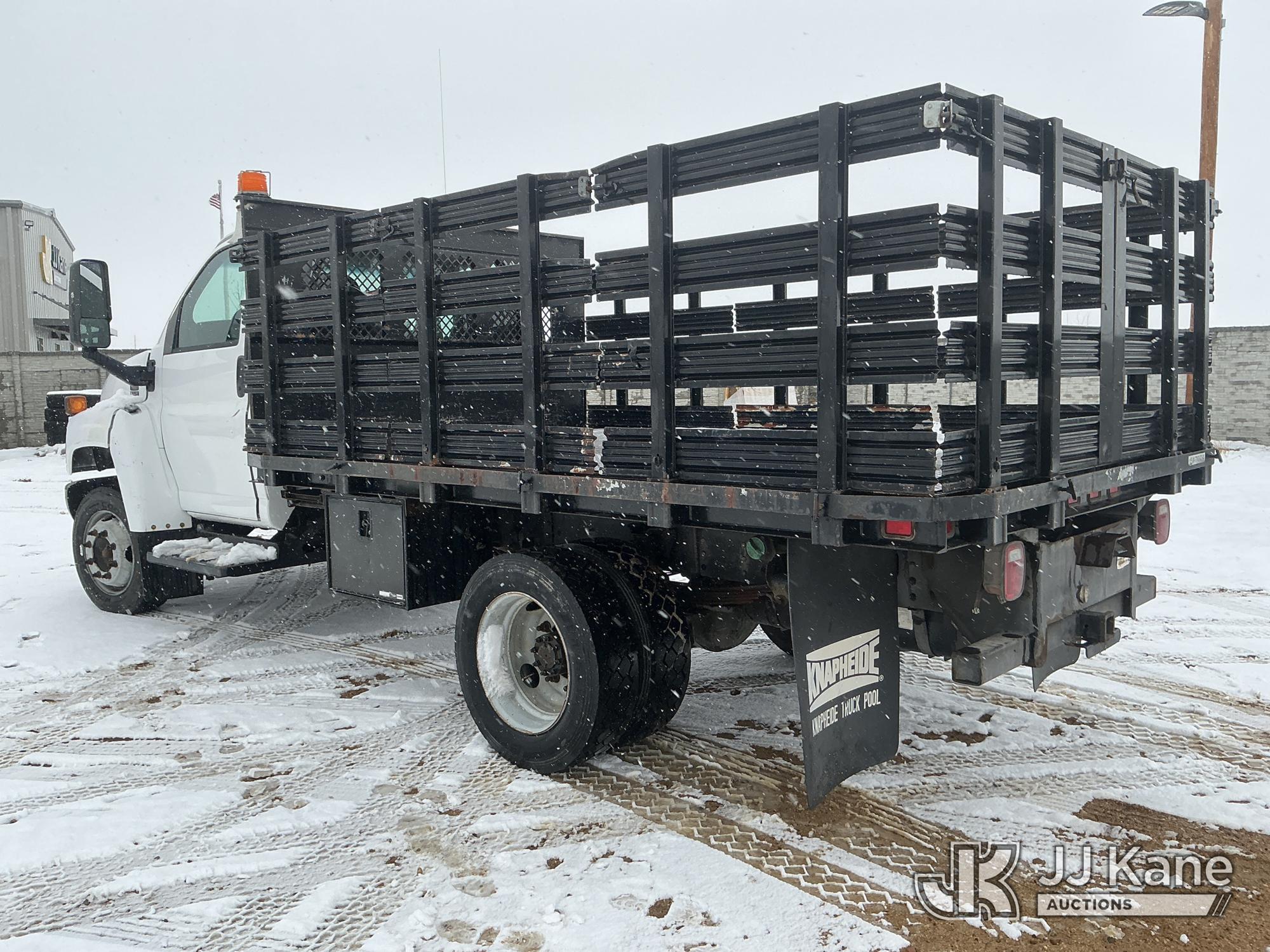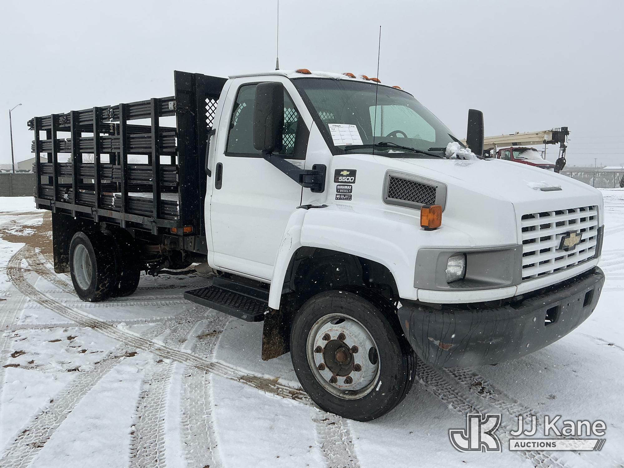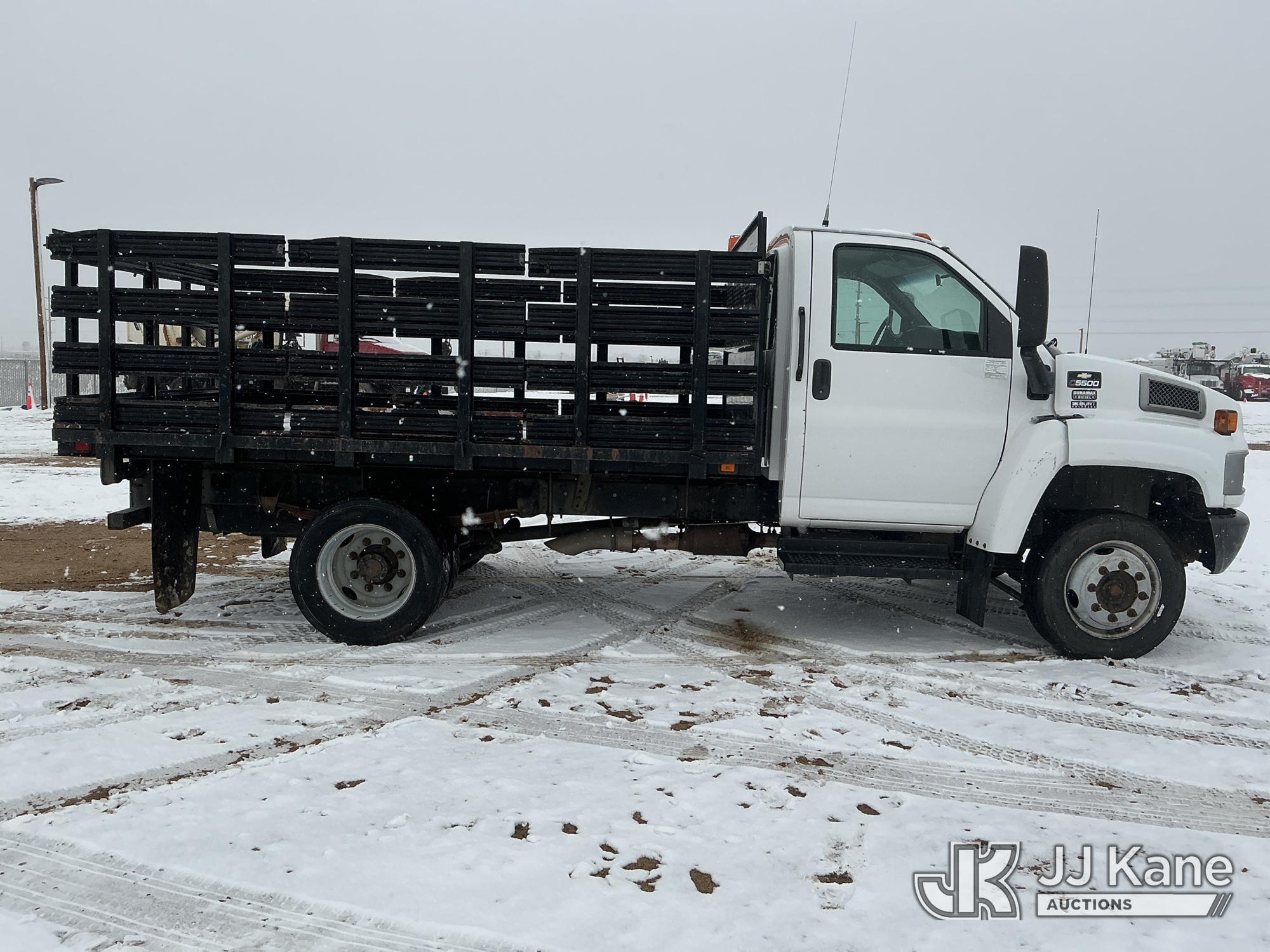 2008 Chevrolet C5500 Flatbed Truck, 6.6L diesel, 4X2, Auto, A/C, with stake sides, (86,328 miles) (Runs & Moves) (Engine Noise) (No Emissions Provided, See Bidder Agreement) This is a Titled Item*