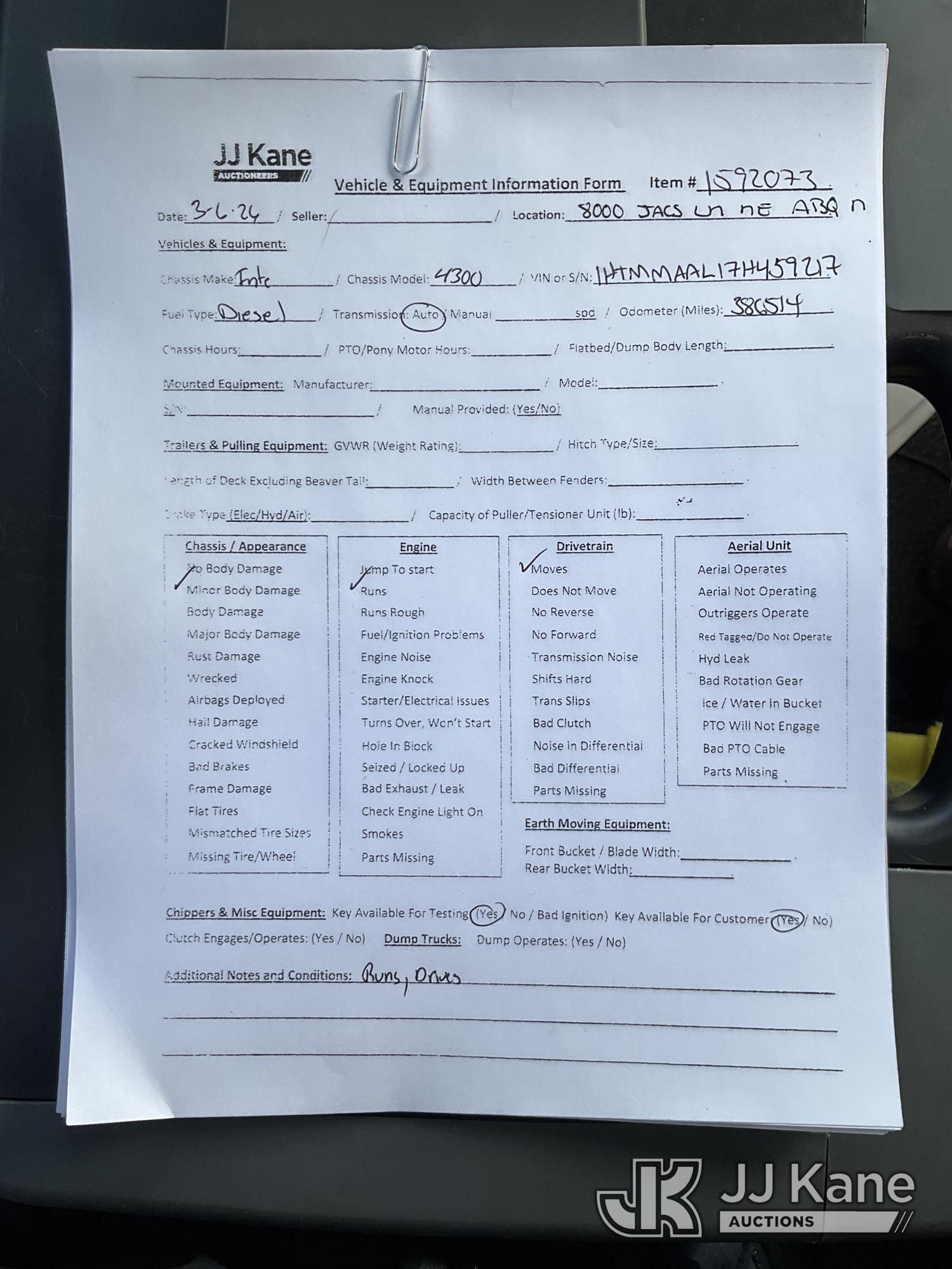 2007 International 4300 Tank Truck, 7.6L L6 DIESEL 4X2, Auto, A/C, (386,514 miles) (Runs & Moves) (Engine Light On, Minor Body Damage) This is a Titled Item*
