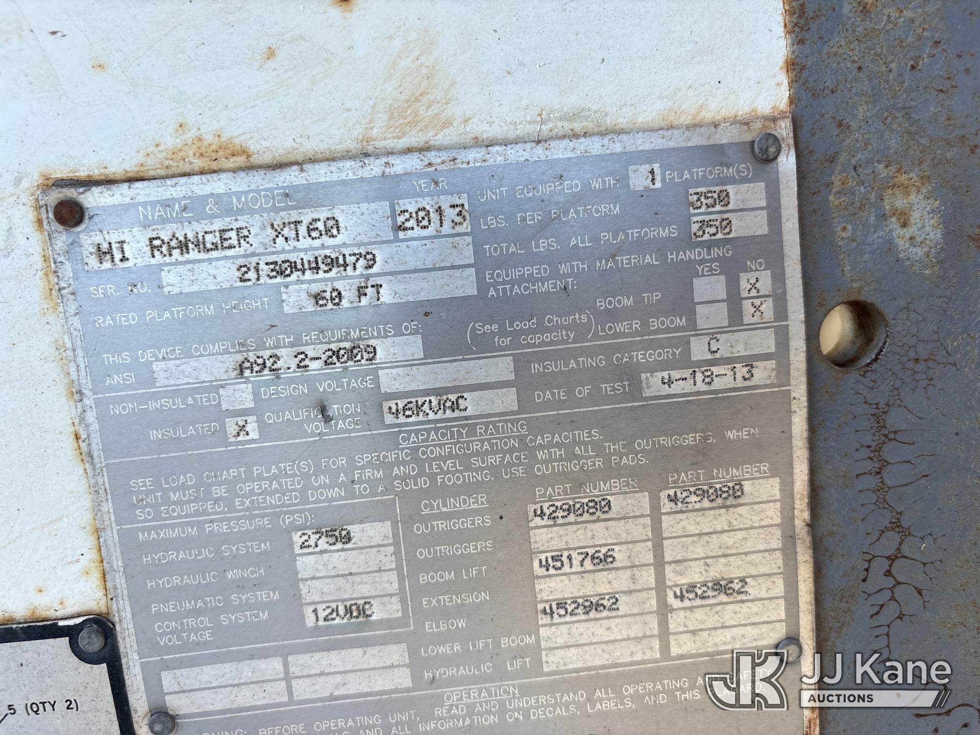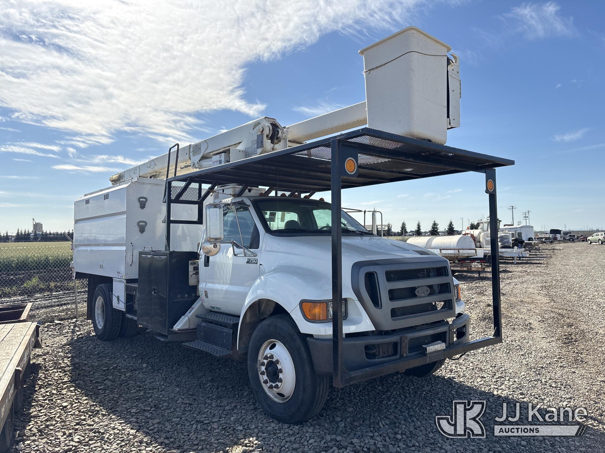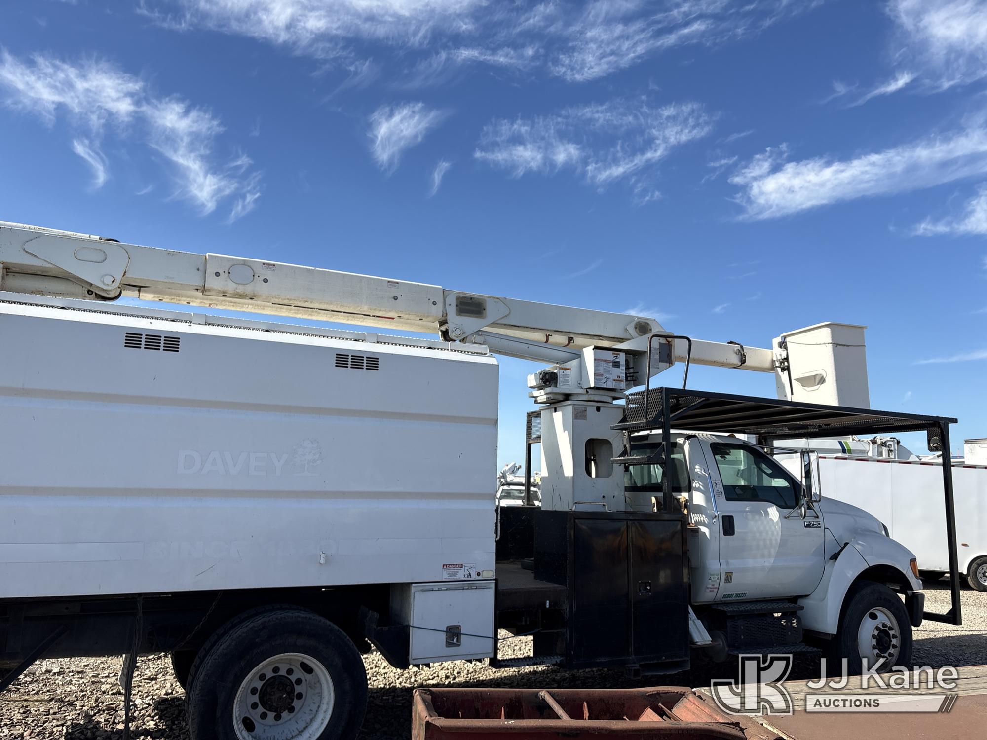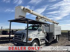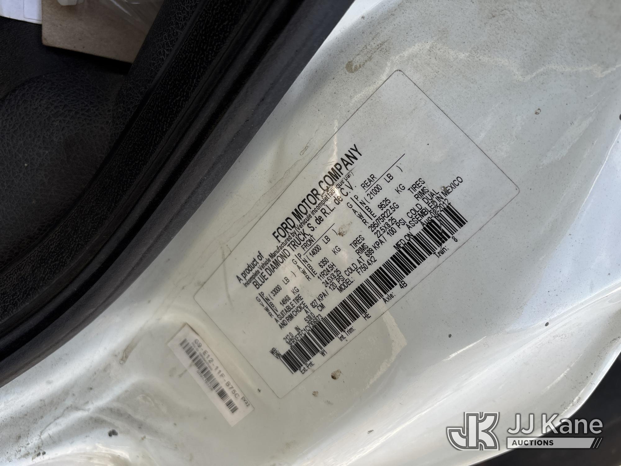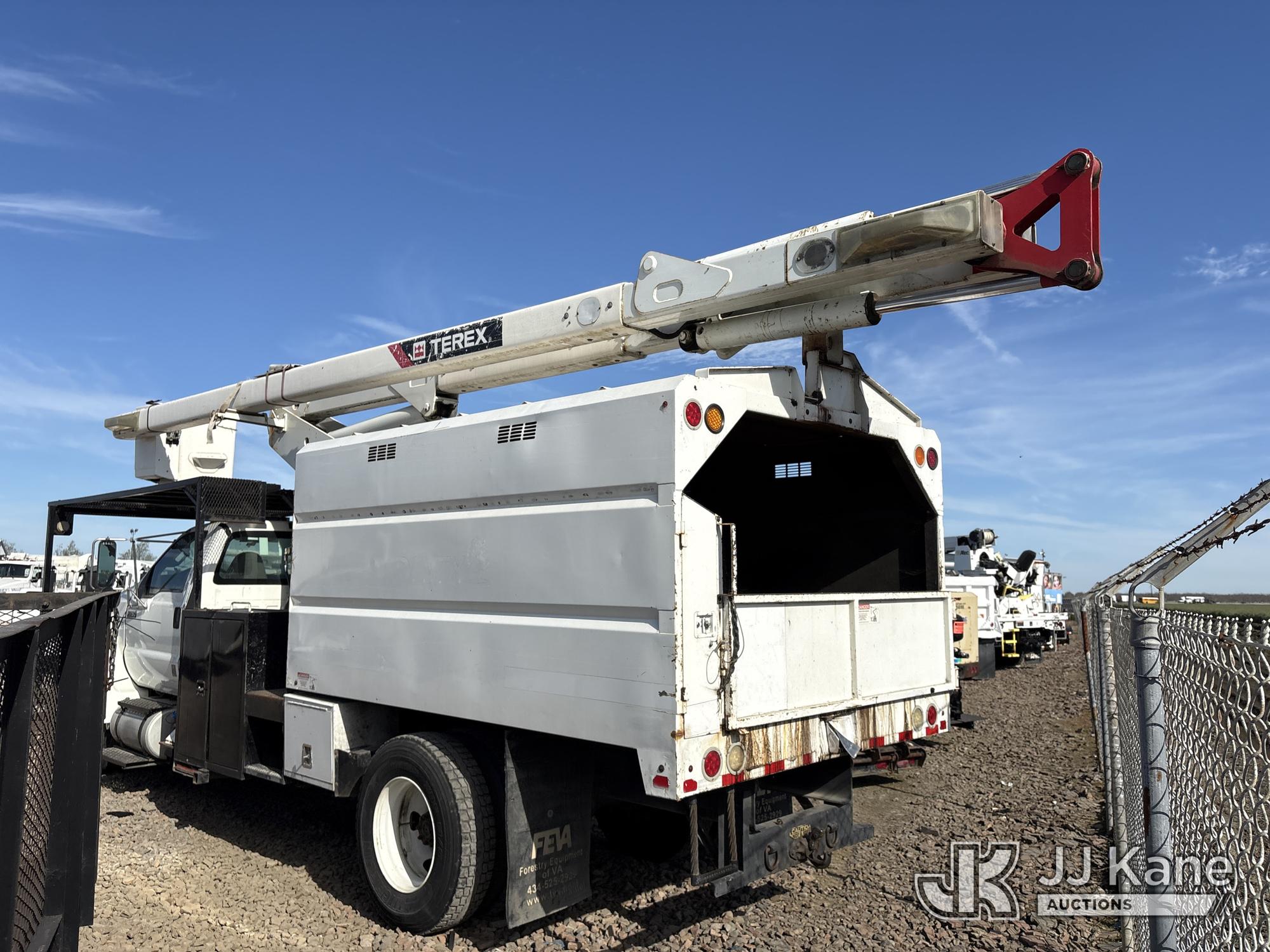 Terex XT60, 65 ft, Over-Center Bucket Truck s/n 2130449479, with single-man bucket & 2 hyd outriggers, mounted behind cab on 2012 Ford F-750 Regular Cab 2WD DRW Dump Chipper Truck, s/n 3FRXF7FC1CV306873, 6.7L L6 4X2, DIESEL, 6-spd, A/C, (107,016 miles) (Not Running, Conditions Unknown) (Bidding Restricted to Licensed Vehicle Dealers Only), May be subject to ARB Regulations This is a Titled Item*