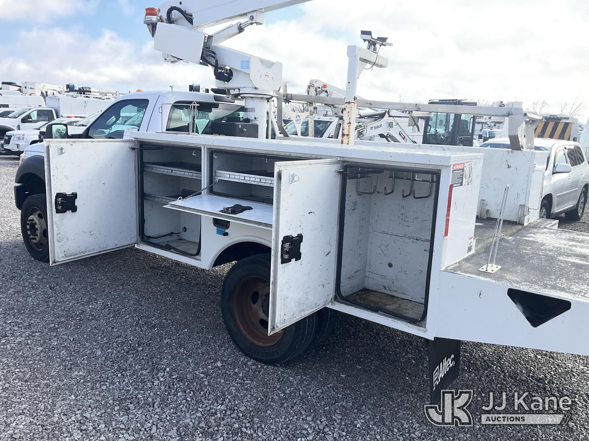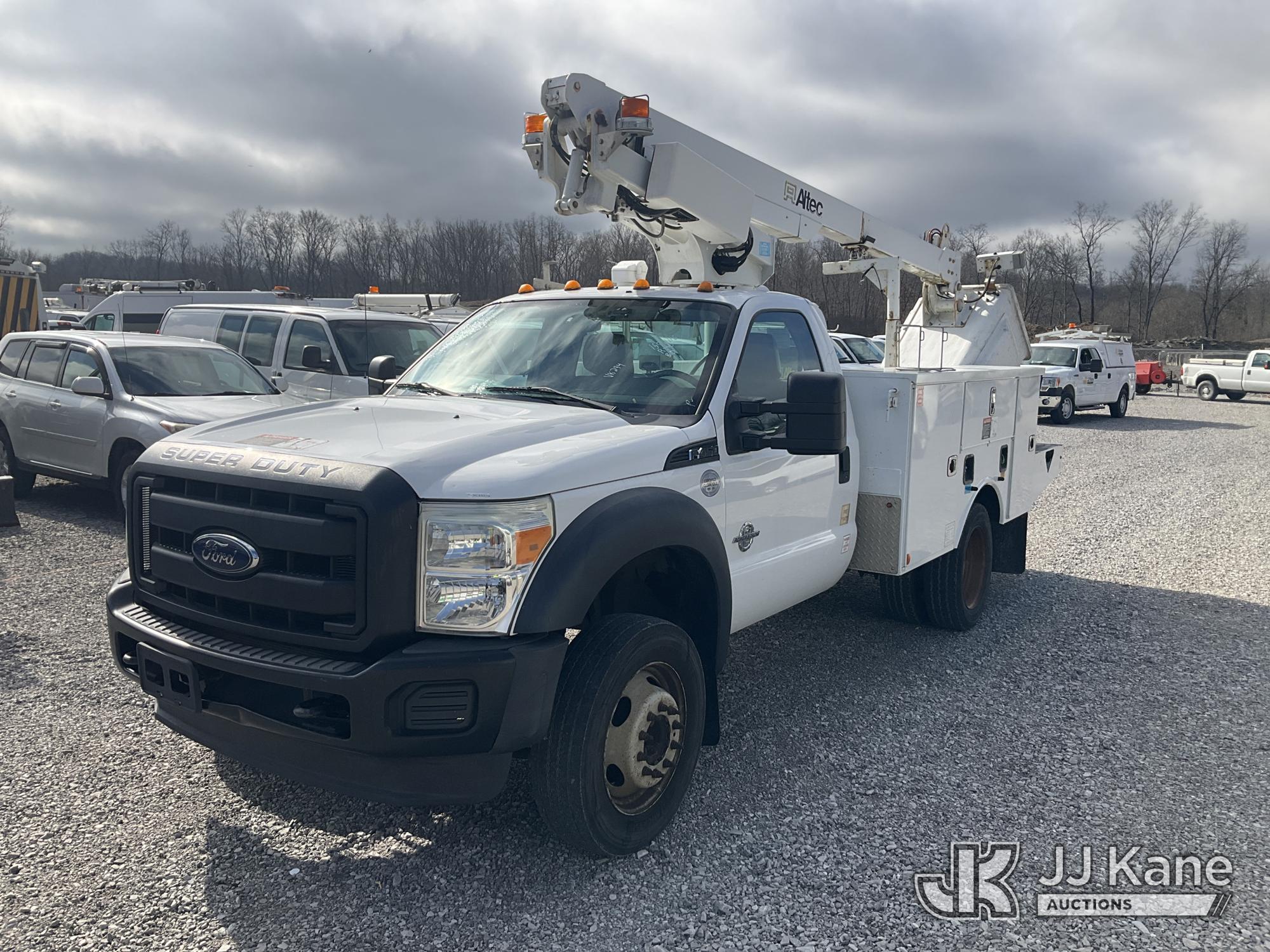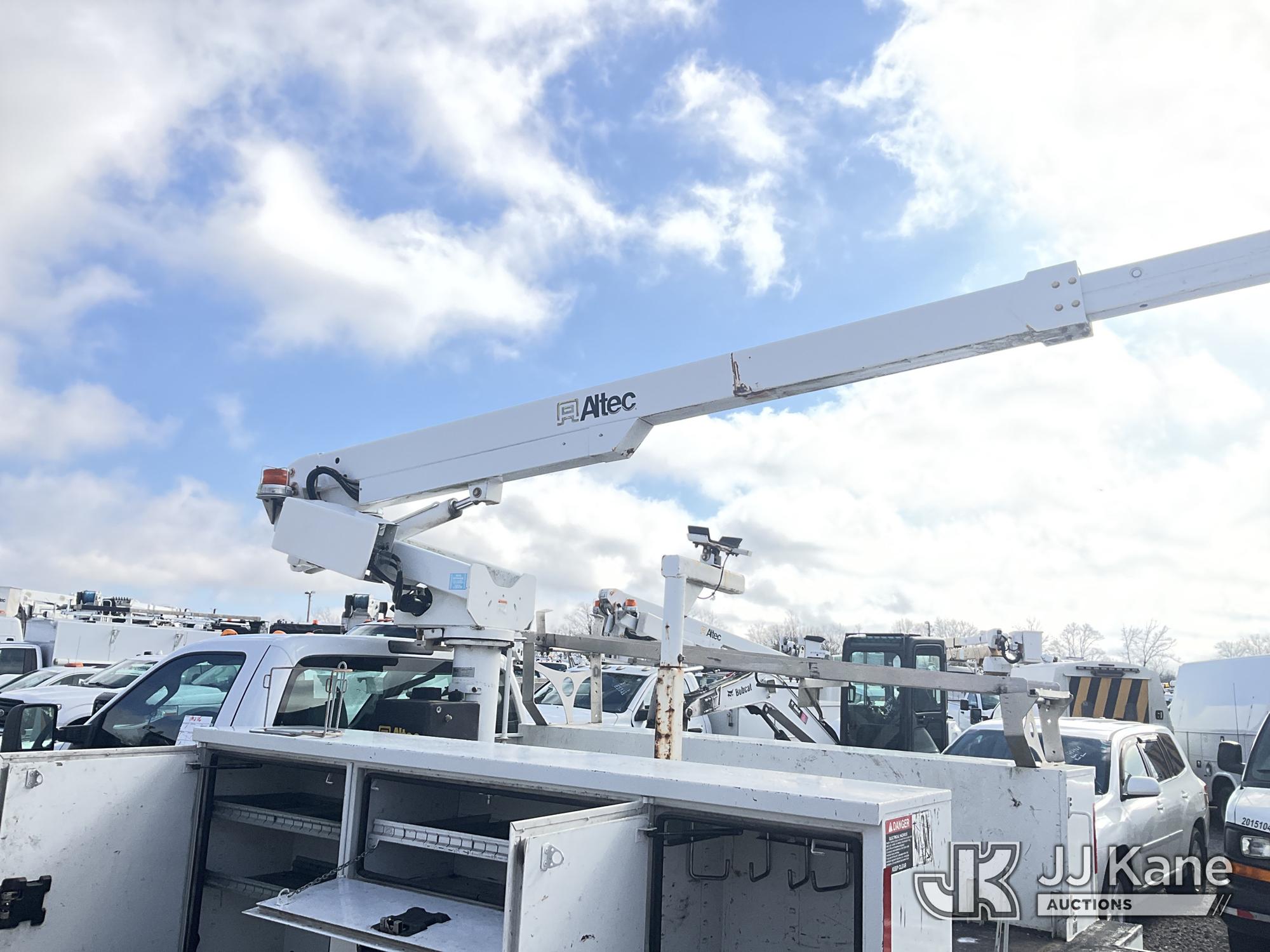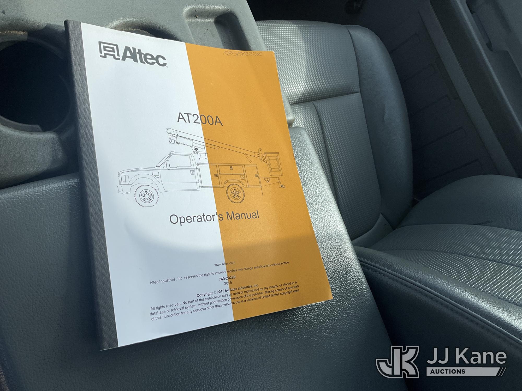 Altec AT200-A, 35 ft, Telescopic Non-Insulated Bucket Truck s/n 0815BV22260, with single-man bucket, mounted behind cab on 2015 Ford F-450 SD Service Truck, 6.7L V8 OHV 16V DIESEL RWD, Auto, A/C, (174,592 miles) (Runs, Moves & Upper Operates) (Body Damage) (The manufacturer has notified JJ Kane that this equipment is subject to an open recall. CSN 836 Mounting Frame Inspection (Replaces SIL 809 and SIL 820) The equipment should not be operated until this is addressed. Buyer is responsible for reviewing the recall notice and contacting the manufacturer to schedule the recommended corrective actions. Associated costs may be covered by the manufacturer in some cases.) This is a Titled Item*