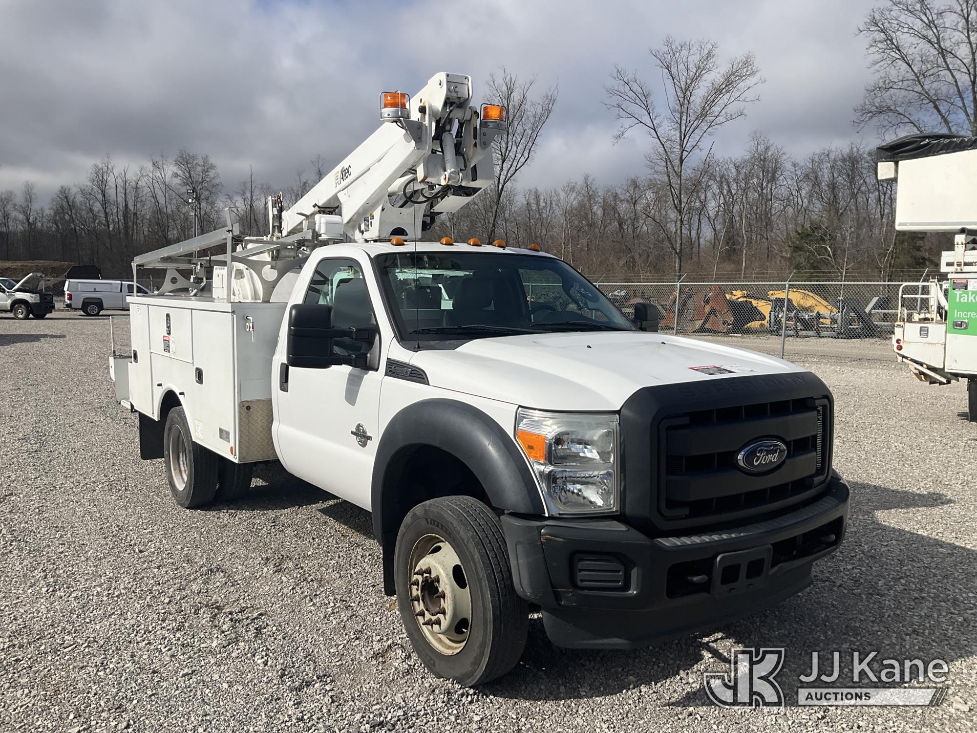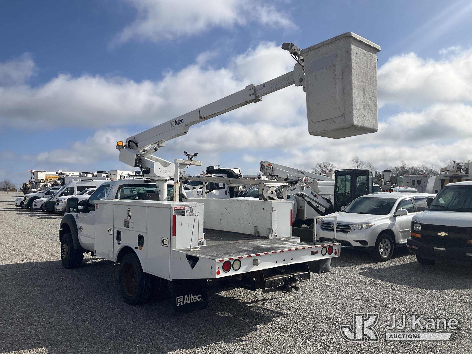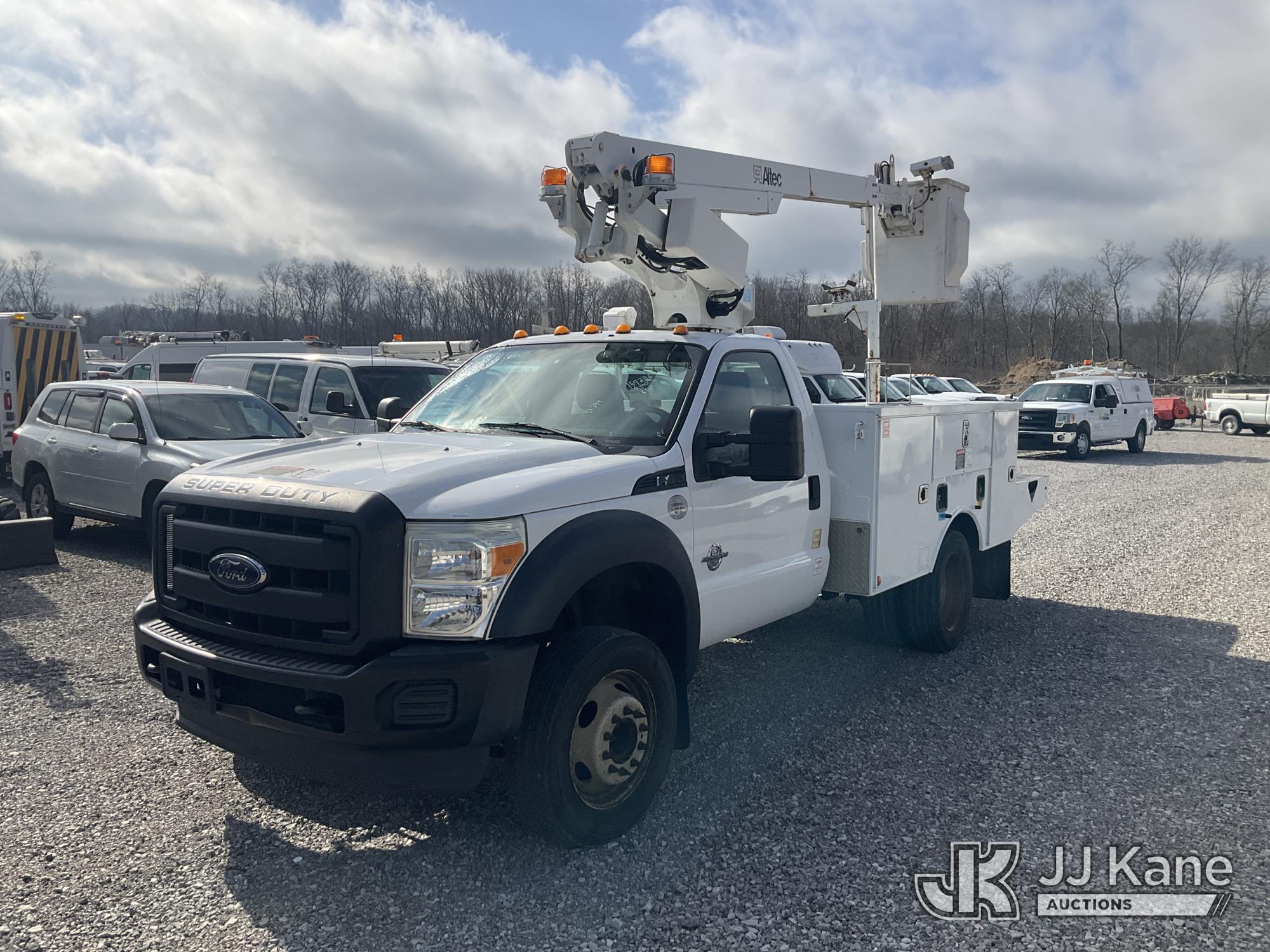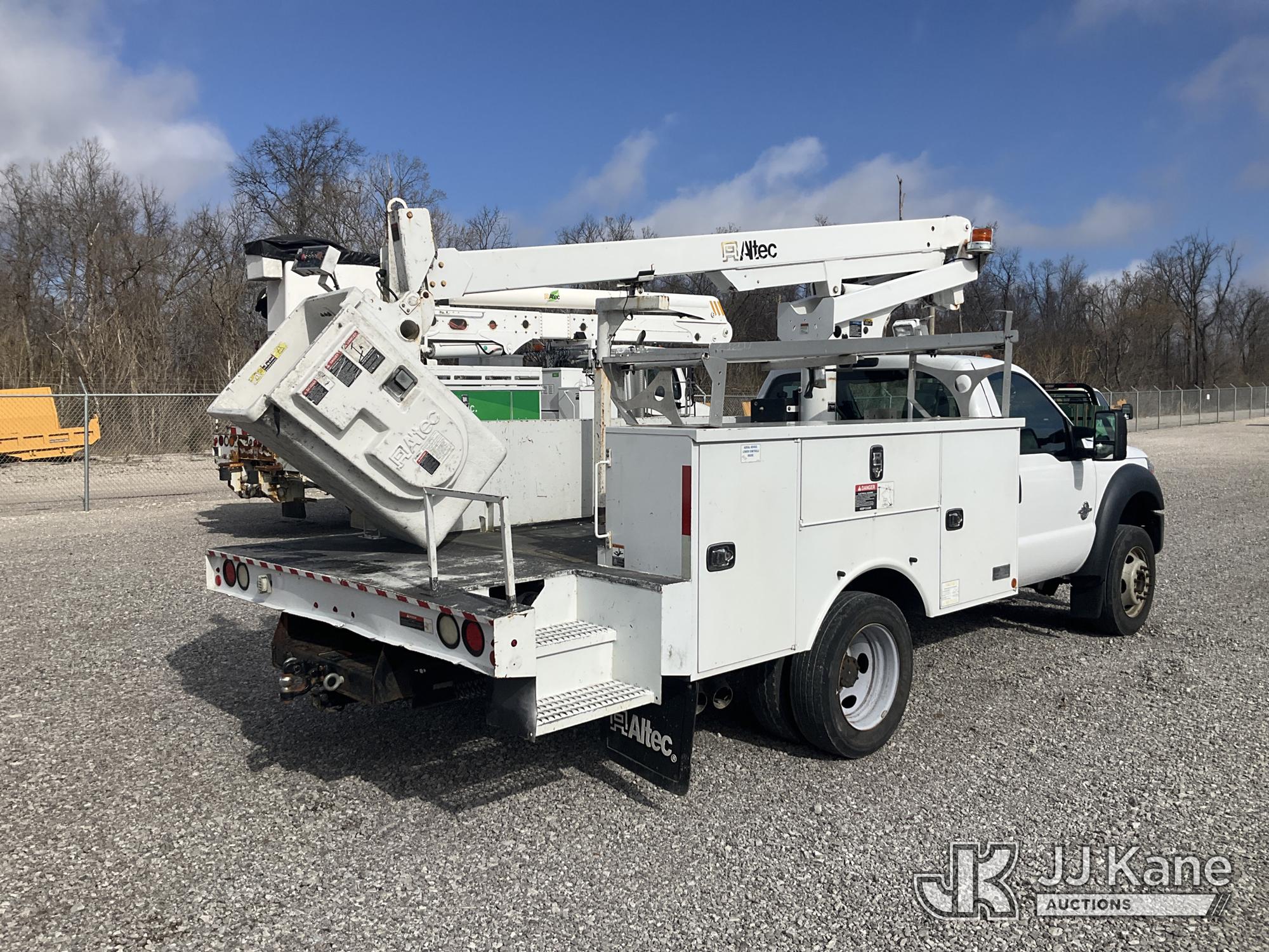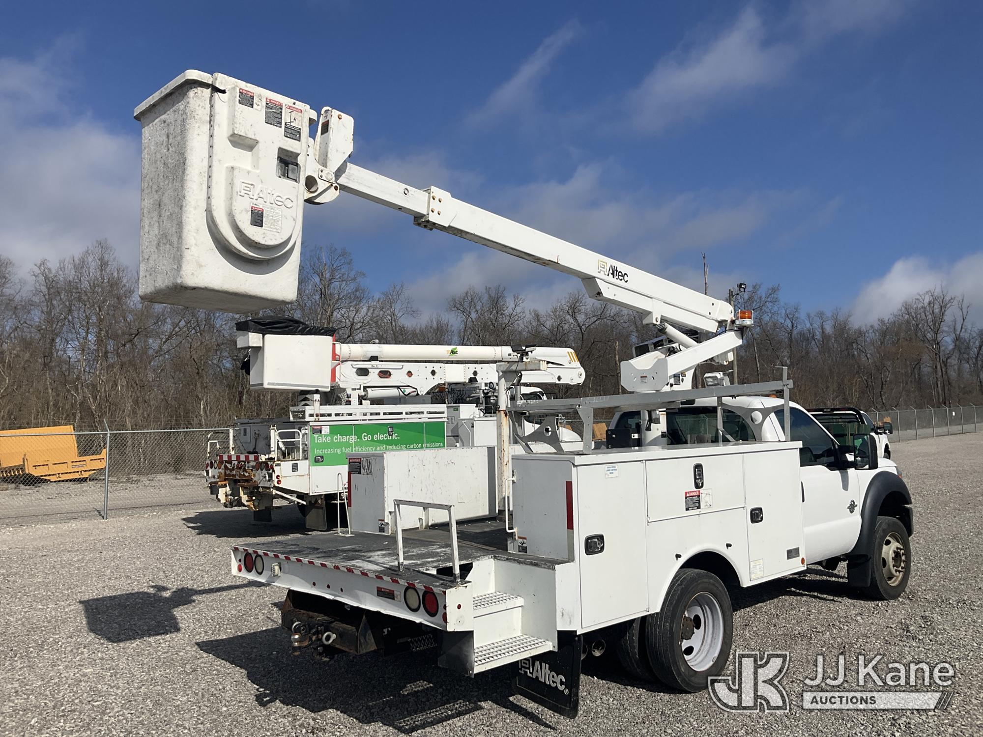 Altec AT200-A, 35 ft, Telescopic Non-Insulated Bucket Truck s/n 0815BV22260, with single-man bucket, mounted behind cab on 2015 Ford F-450 SD Service Truck, 6.7L V8 OHV 16V DIESEL RWD, Auto, A/C, (174,592 miles) (Runs, Moves & Upper Operates) (Body Damage) (The manufacturer has notified JJ Kane that this equipment is subject to an open recall. CSN 836 Mounting Frame Inspection (Replaces SIL 809 and SIL 820) The equipment should not be operated until this is addressed. Buyer is responsible for reviewing the recall notice and contacting the manufacturer to schedule the recommended corrective actions. Associated costs may be covered by the manufacturer in some cases.) This is a Titled Item*