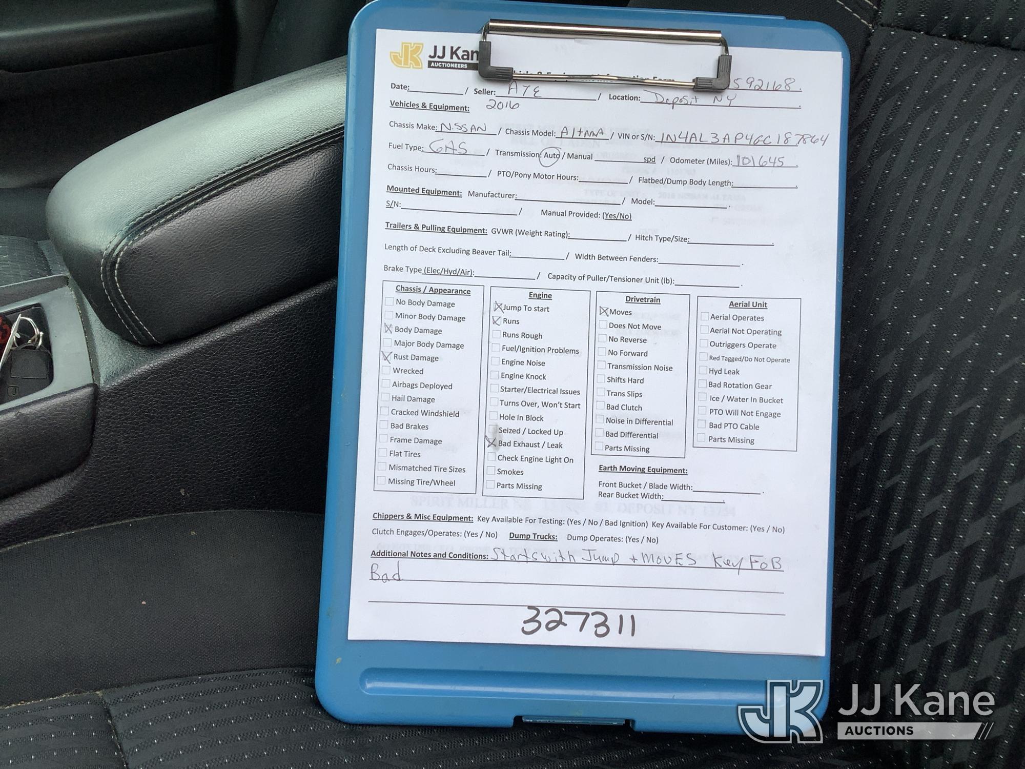 2016 Nissan Altima 4-Door Sedan, 4-cyl gas, FWD, Auto, (101,645 miles) (Runs & Moves) (Jump To Start, Bad Key FOB, Body/Rust Damage) This is a Titled Item*