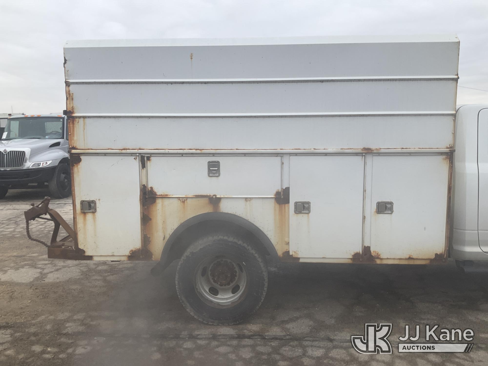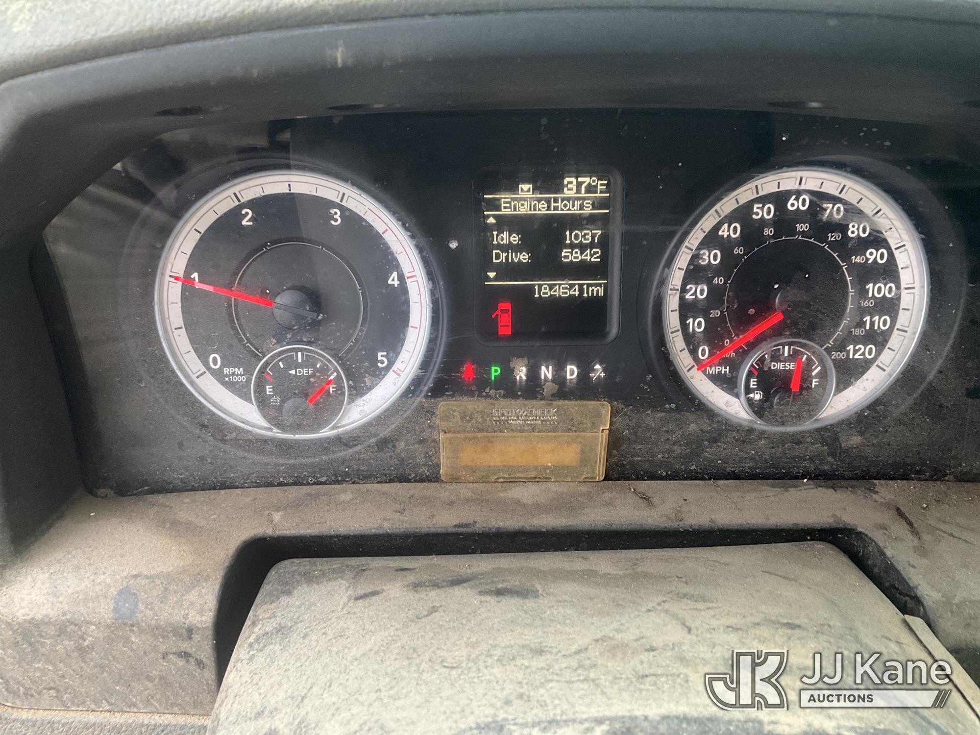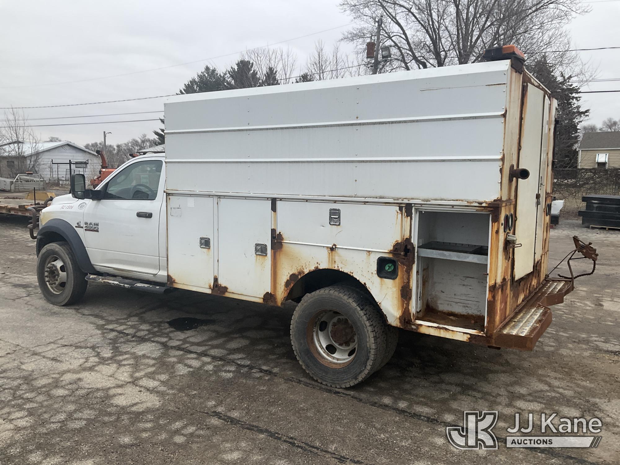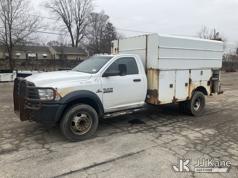 2013 RAM 4500 Enclosed Service Truck, s/n 3C7WRKBL8DG542499, 6.7L L6 OHV 24V TURBO DIESEL RWD, Auto, A/C, (184,641 miles) (Runs, Moves)(No Power Steering, Leaks Oil When Running-Condition Unknown, Body Damage, Service Body Rusty) This is a Titled Item*