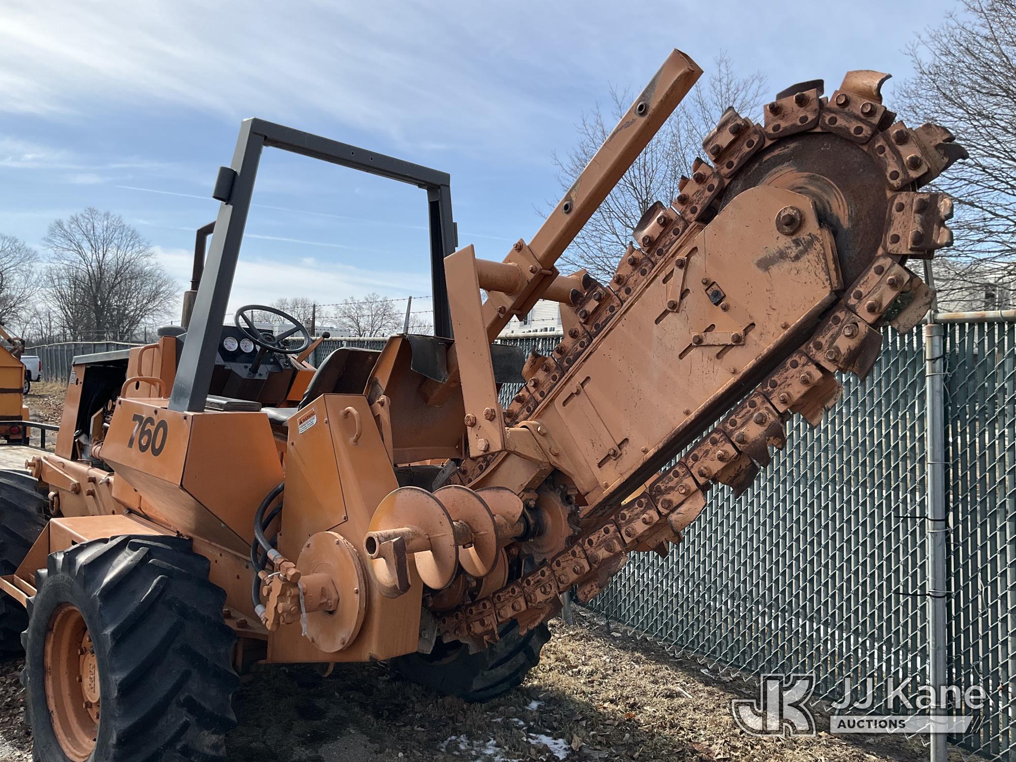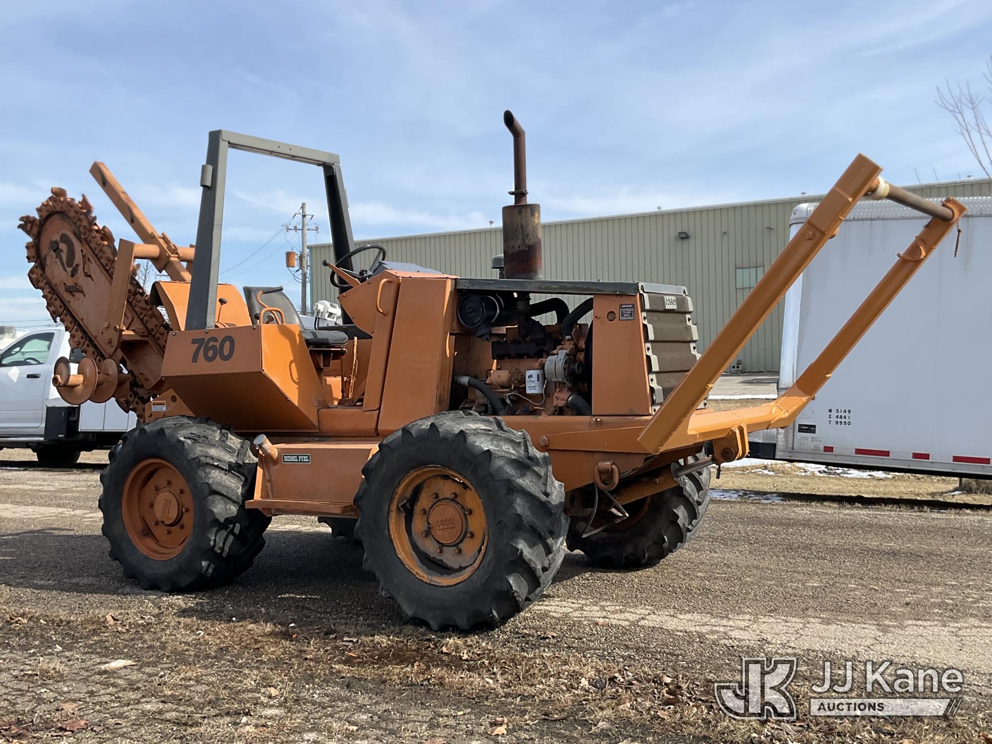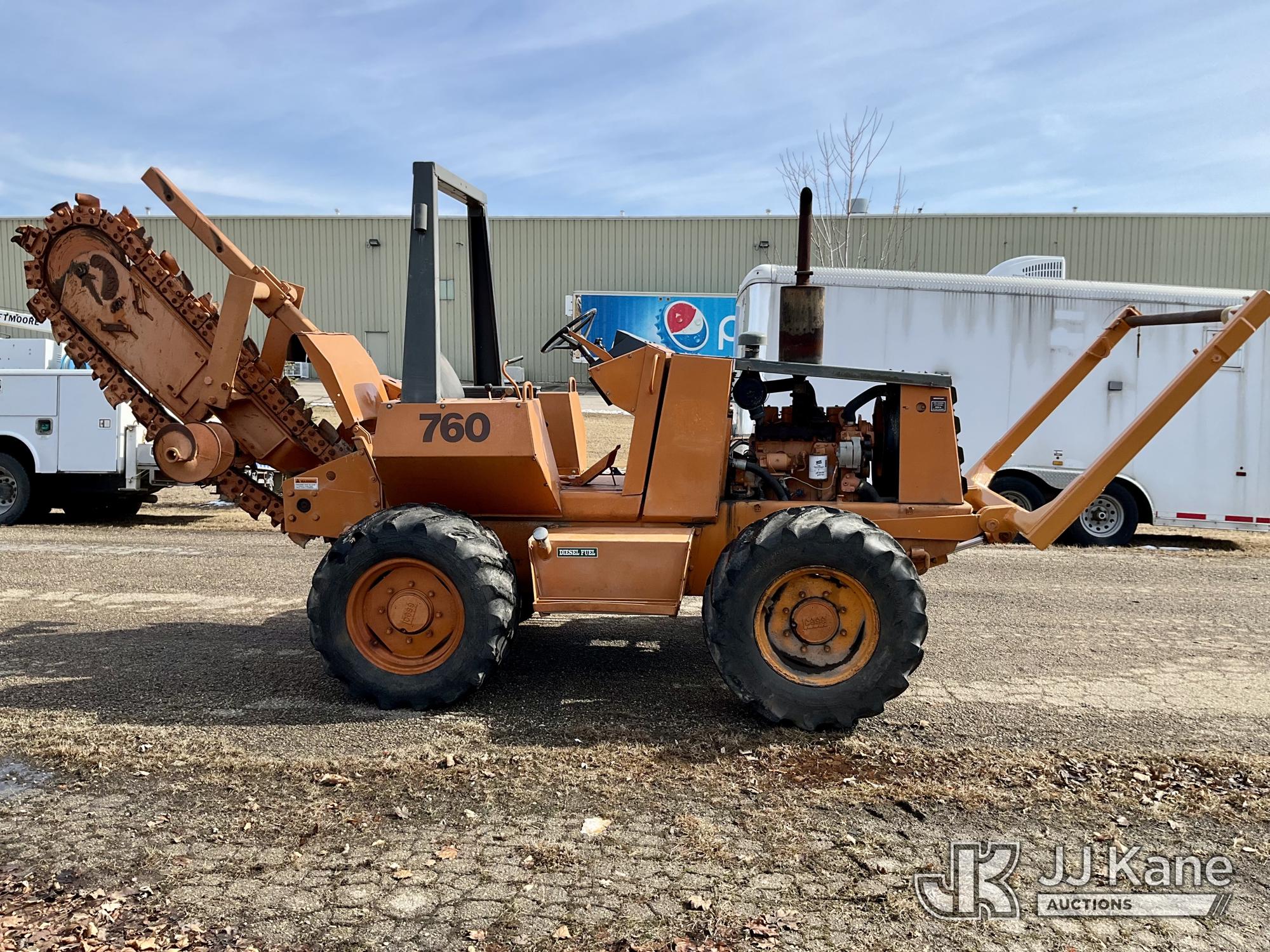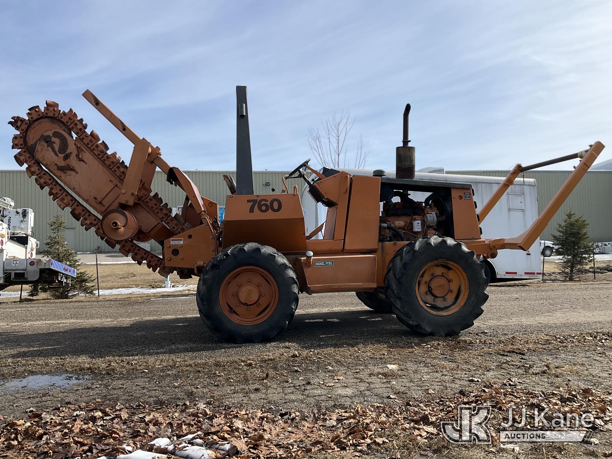 1986 Case 760 Rubber Tired Trencher, s/n 1249346, Case diesel, Hydrostatic, with trencher boom, front reel carrier & ROPS post, (Runs, Moves & Operates (refer to video)) (Reads 400 hours)*