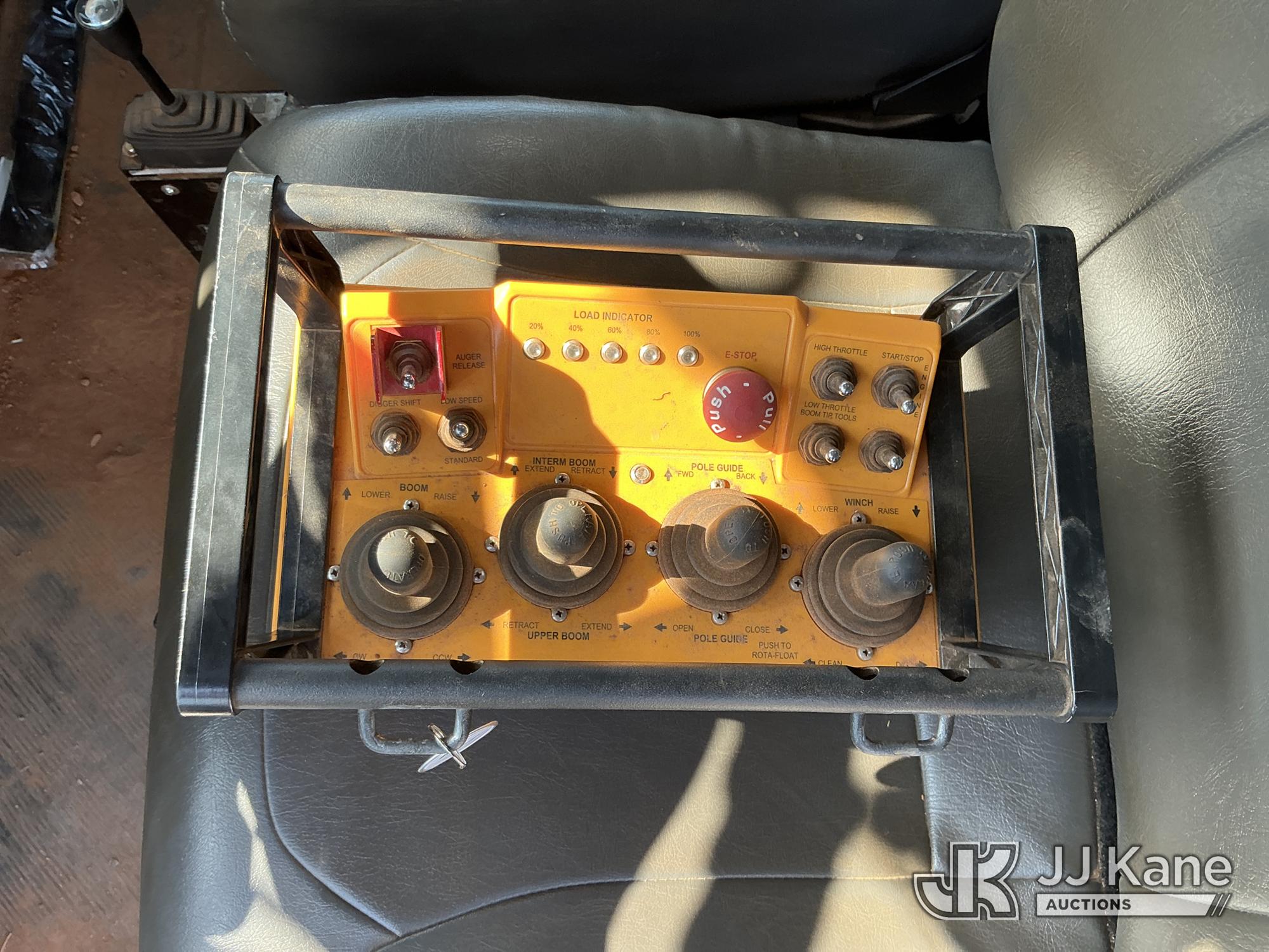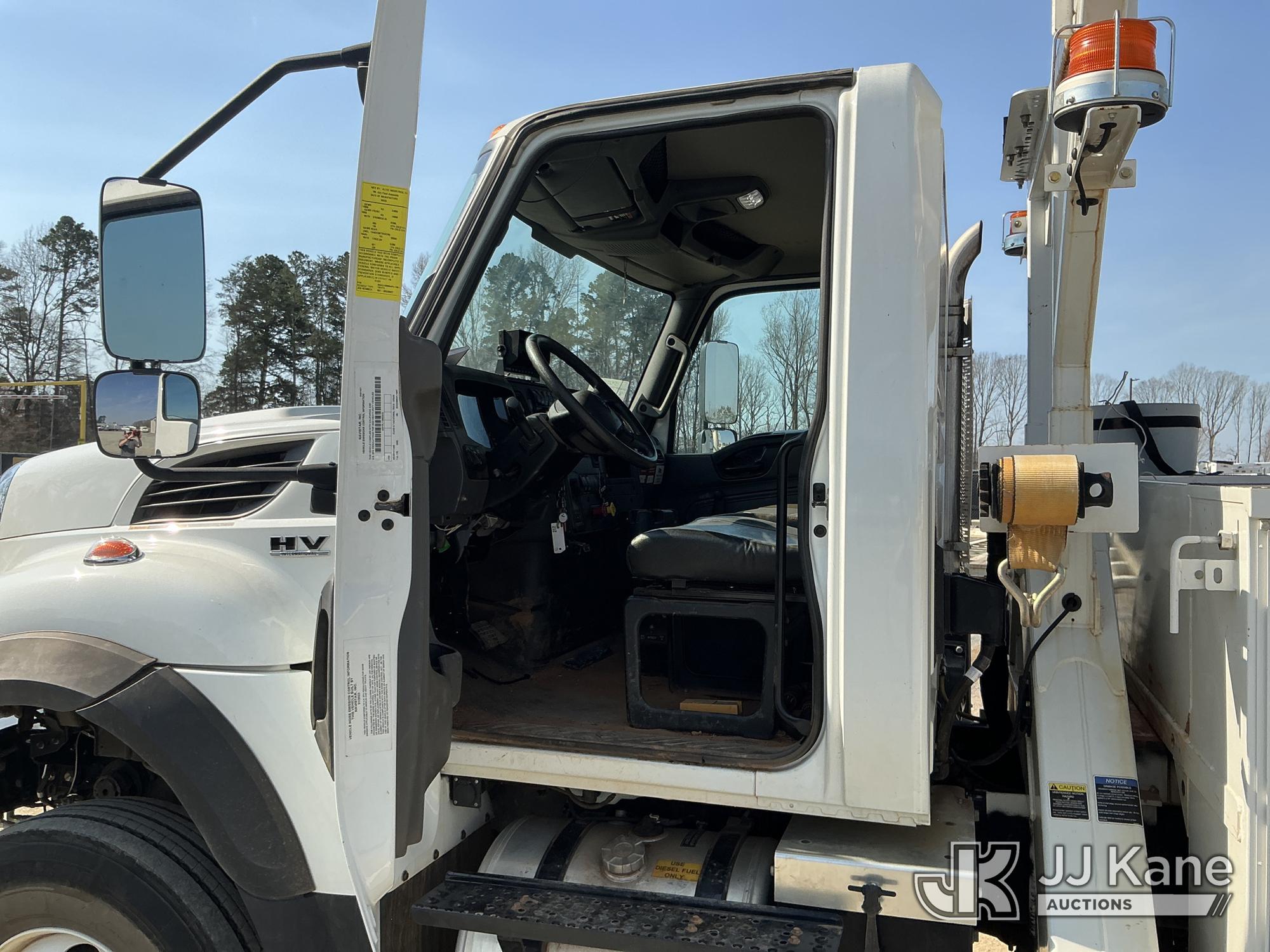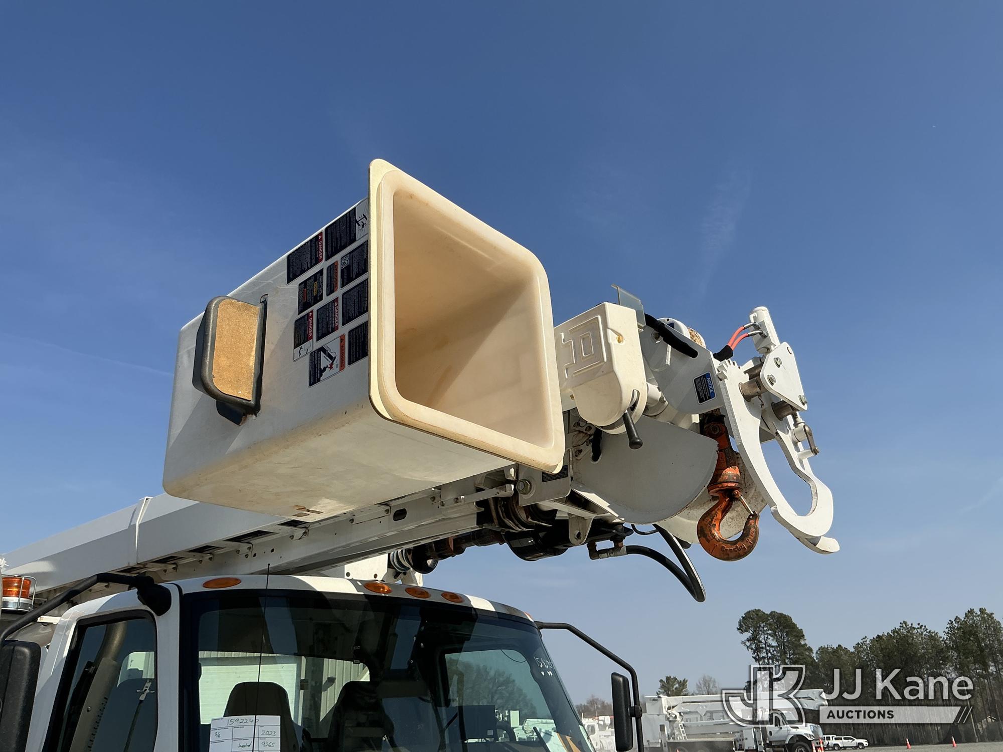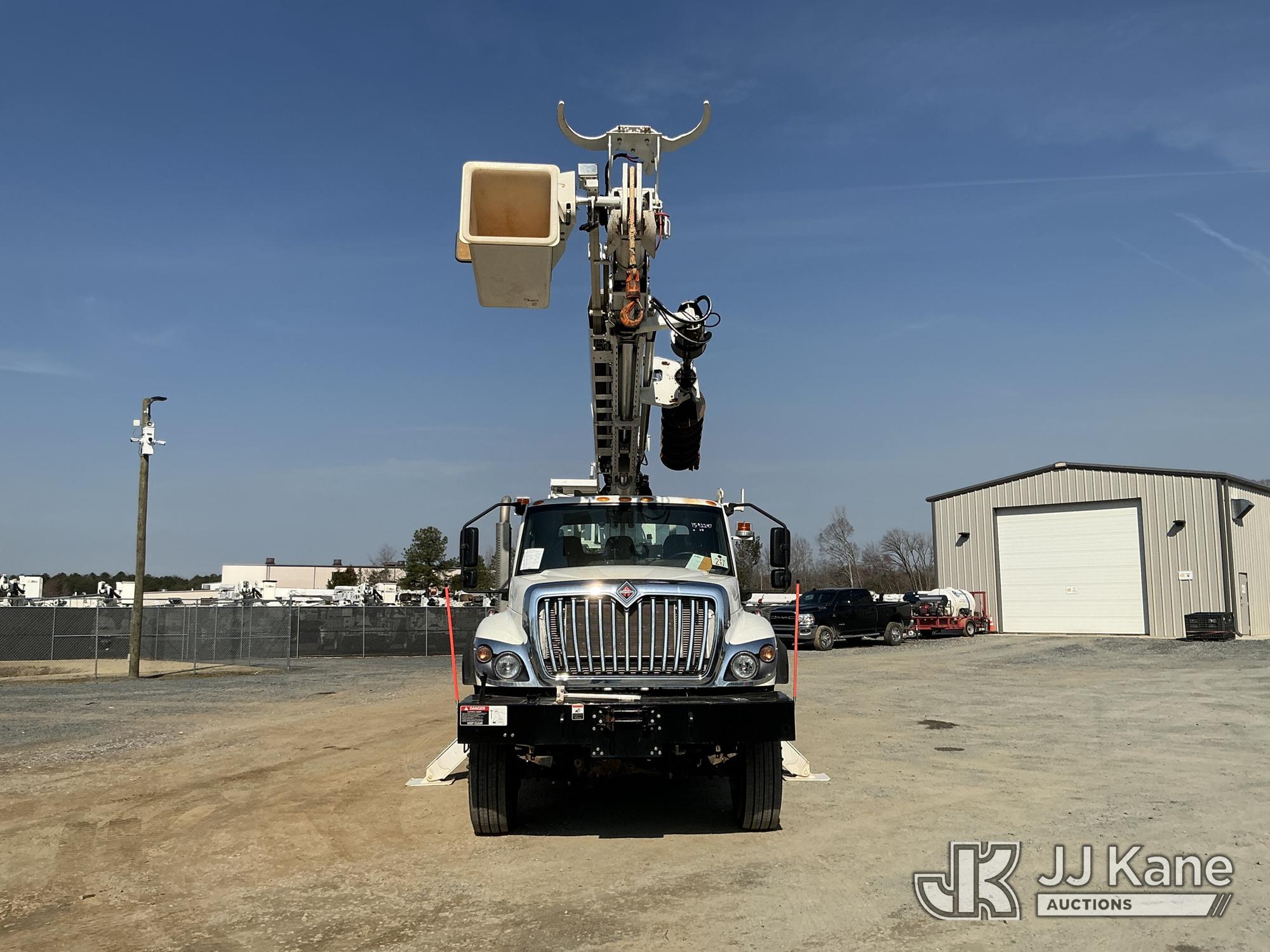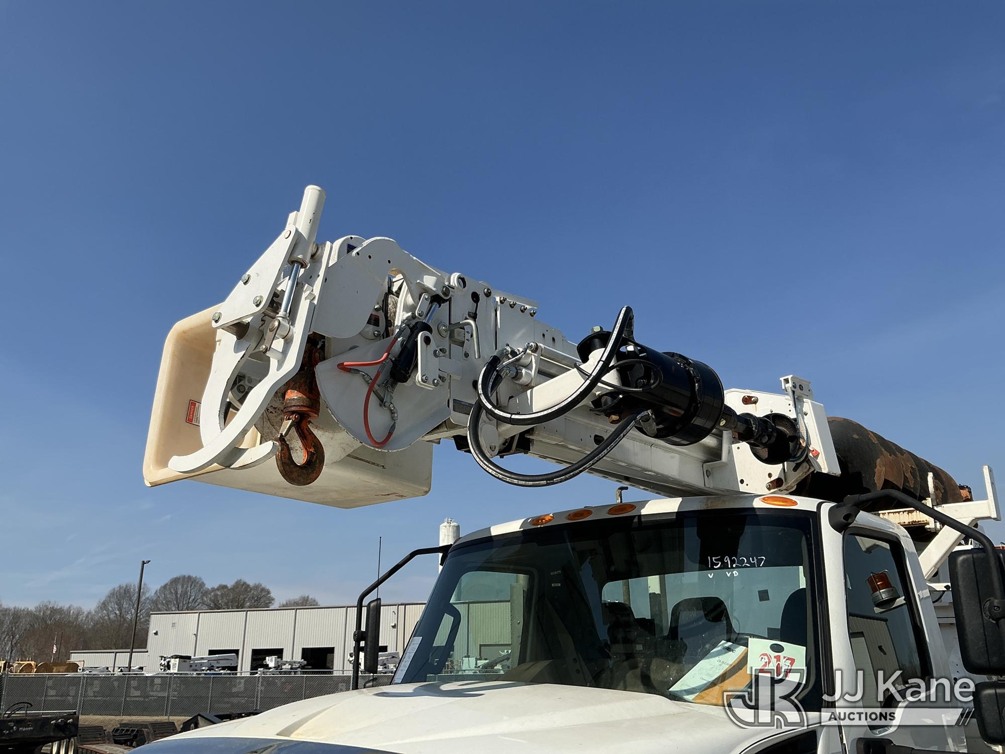 Altec DM47B-TR, 23,790 Lb Digger Derrick s/n 0122FR6837, with 47ft sheave height, 2spd digger, heel winch, pin on bucket, upper controls, pole grabs, riding console, wireless remote, rear mounted on 2023 International HV507 4X4 Utility Truck, Cummins 6.7L diesel, Auto, A/C, with front winch , (9,365 miles) (Runs, Moves & Upper Operates ) This is a Titled Item*