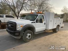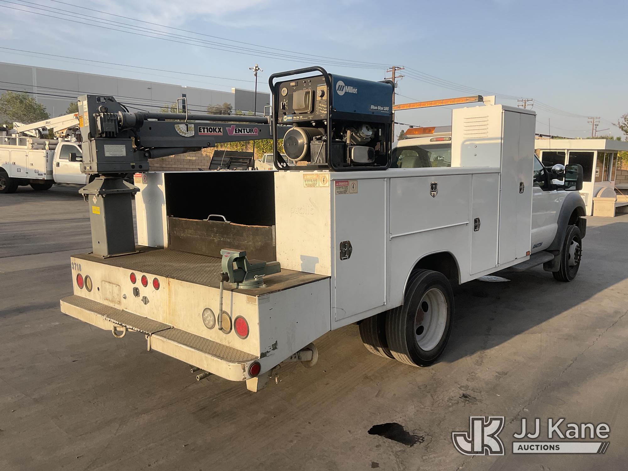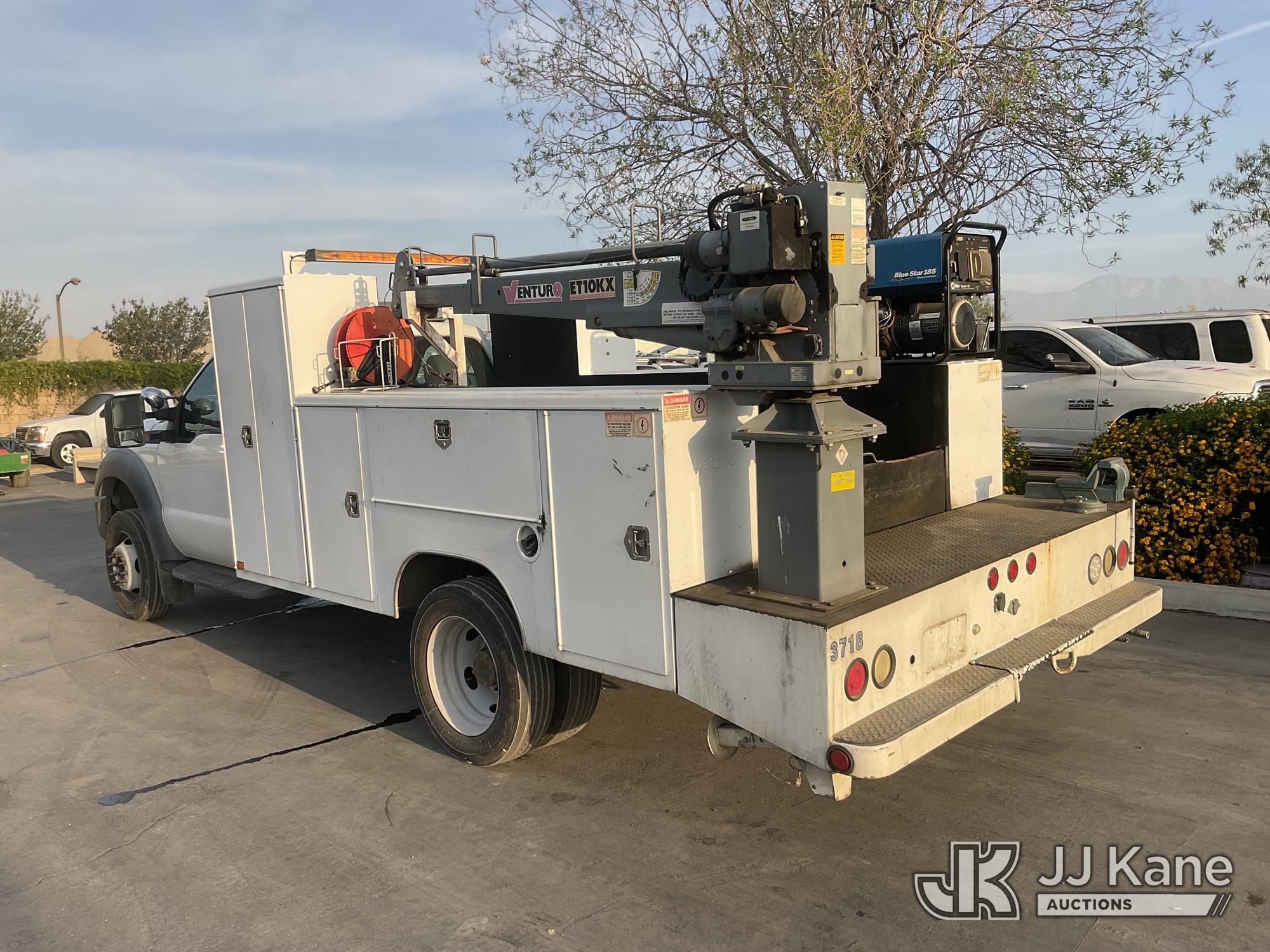 2011 Ford F-550 Mechanics Service Truck, s/n 1FDUF5GY9BEB81383, 10-cyl gas, Auto, A/C, with Tow Package, Venturo Crane, Miller Welder Blue Star 185, (095,668 miles) (Runs & Moves) (Crane Operates, Crane Control In Guard Shack) This is a Titled Item*