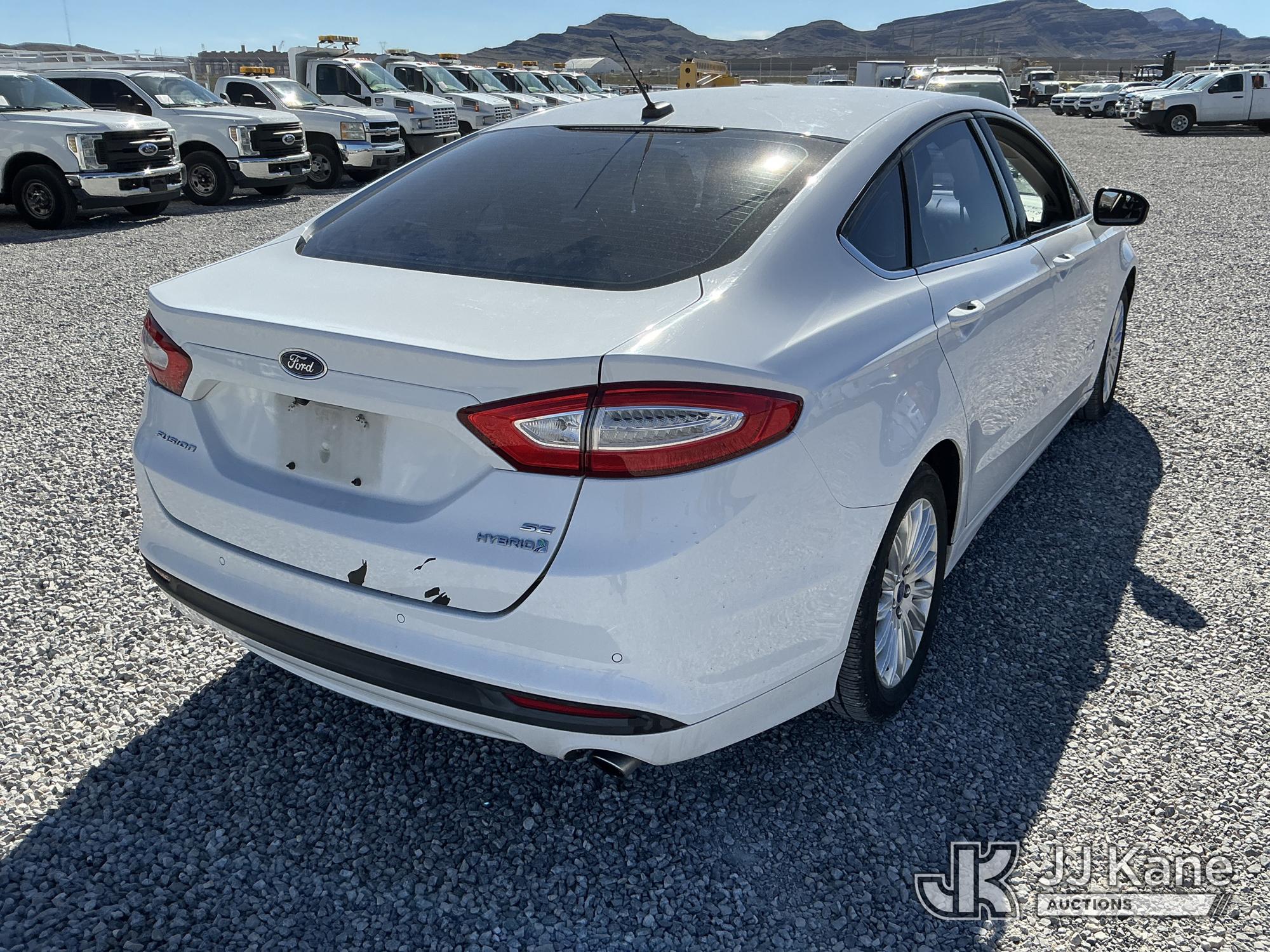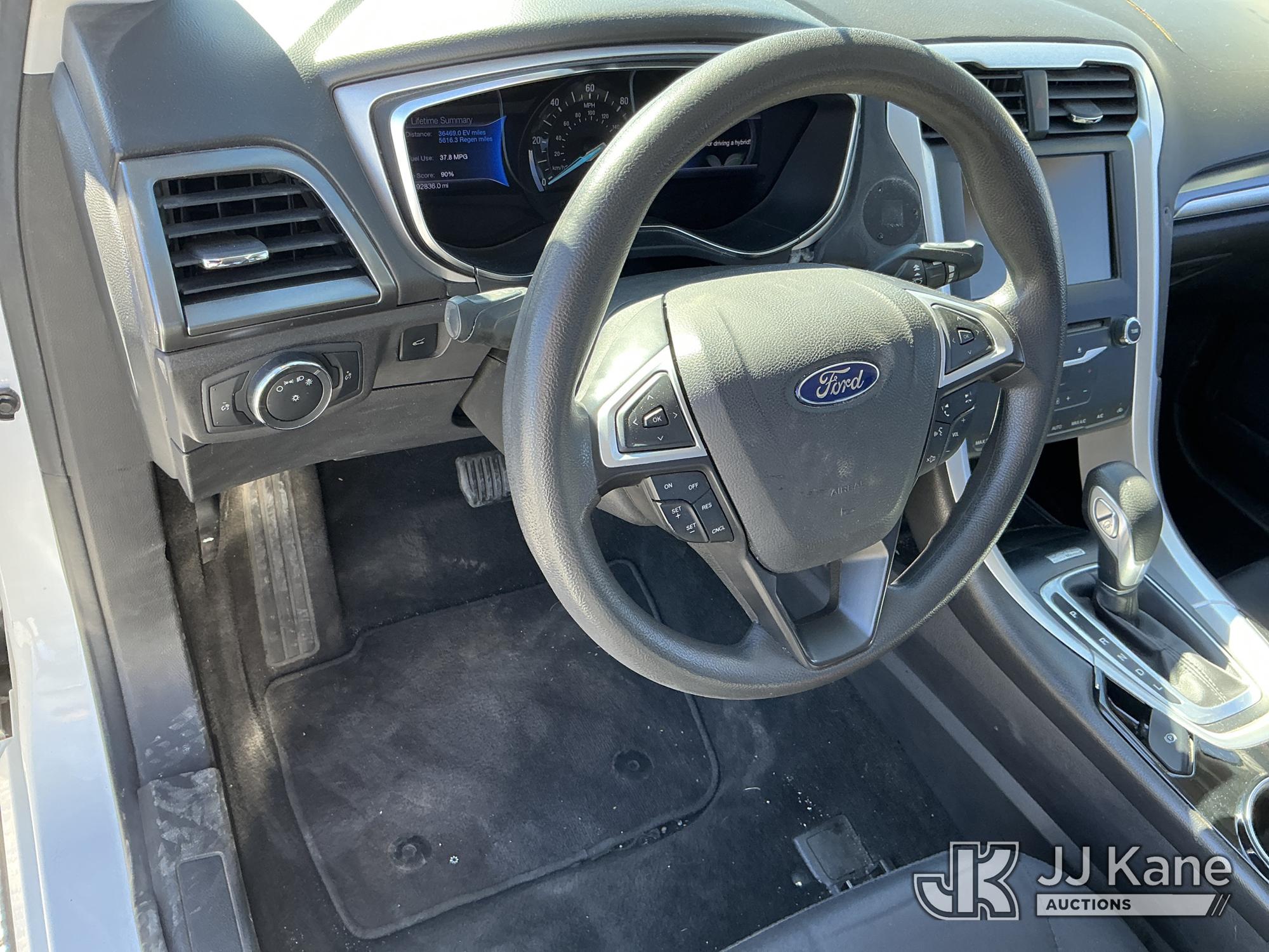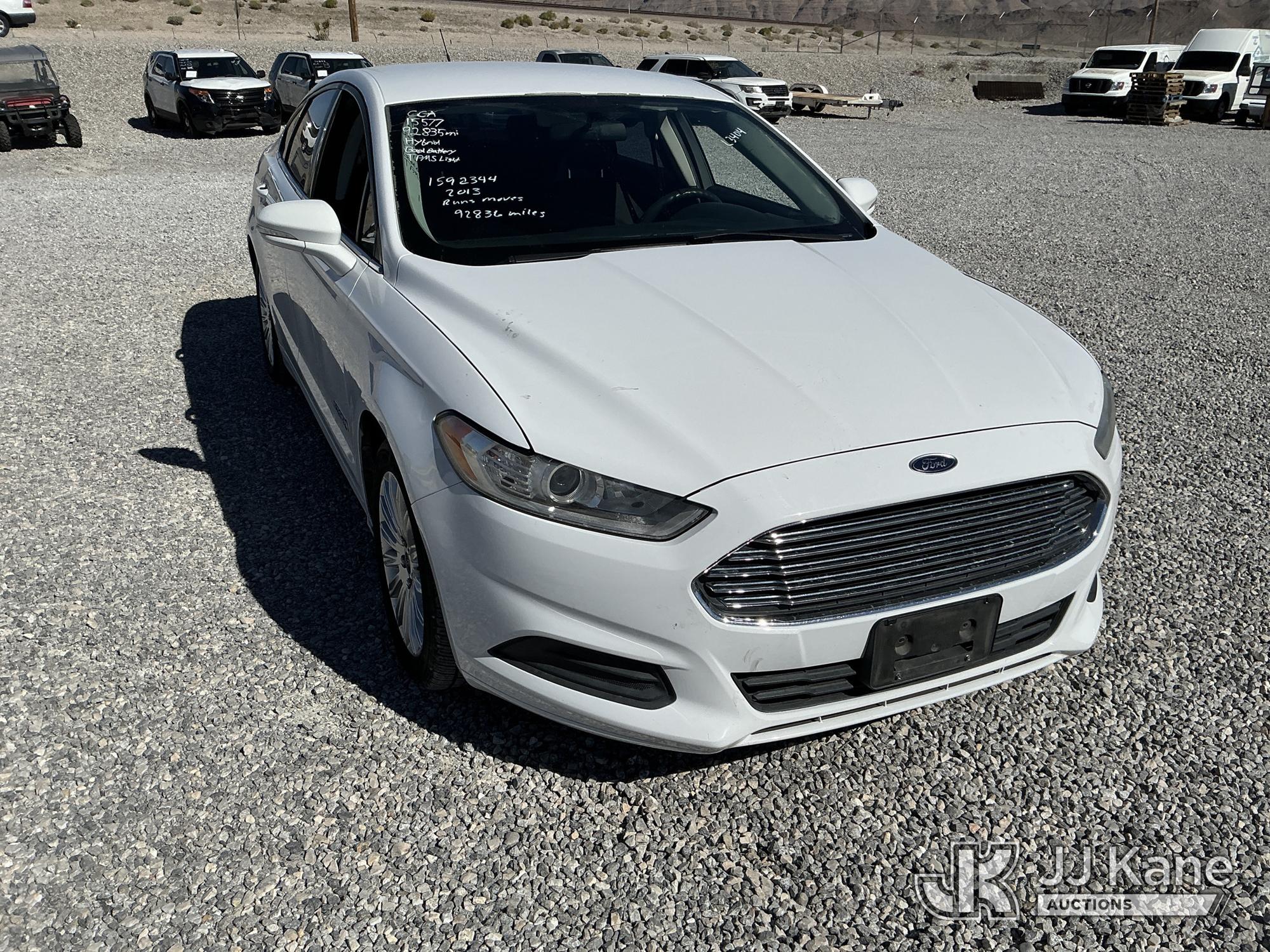 2013 Ford Fusion 4-Door Hybrid Sedan, 4-cyl Hybrid CVT, A/C, (92,836 miles) (Runs & Moves) (TPS Light On, Seller States Bad Battery, Crack On Dash, Paint Damage On Trunk) This is a Titled Item*
