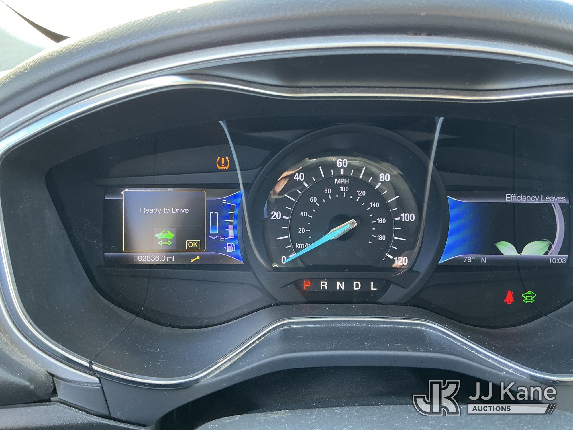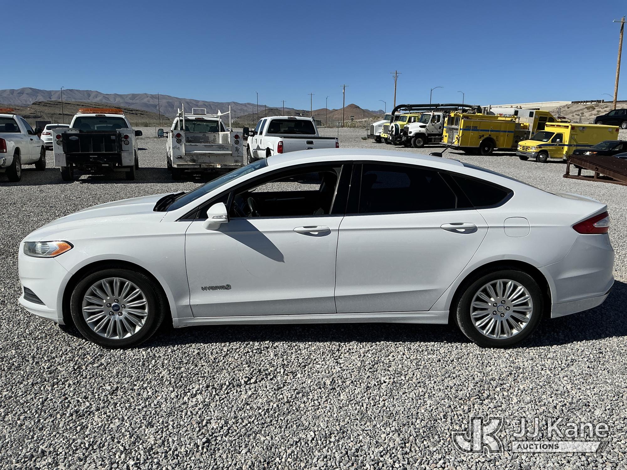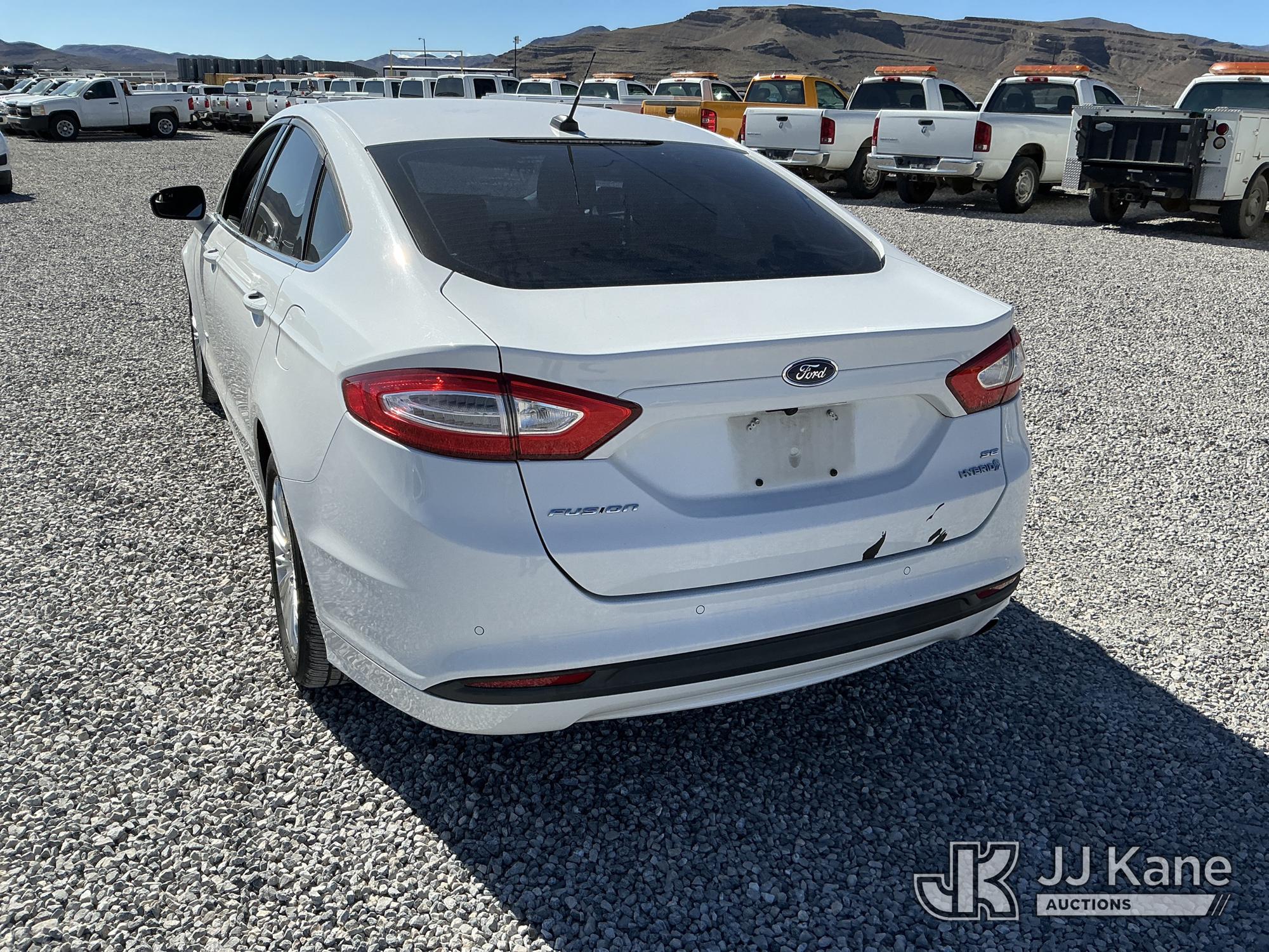 2013 Ford Fusion 4-Door Hybrid Sedan, 4-cyl Hybrid CVT, A/C, (92,836 miles) (Runs & Moves) (TPS Light On, Seller States Bad Battery, Crack On Dash, Paint Damage On Trunk) This is a Titled Item*