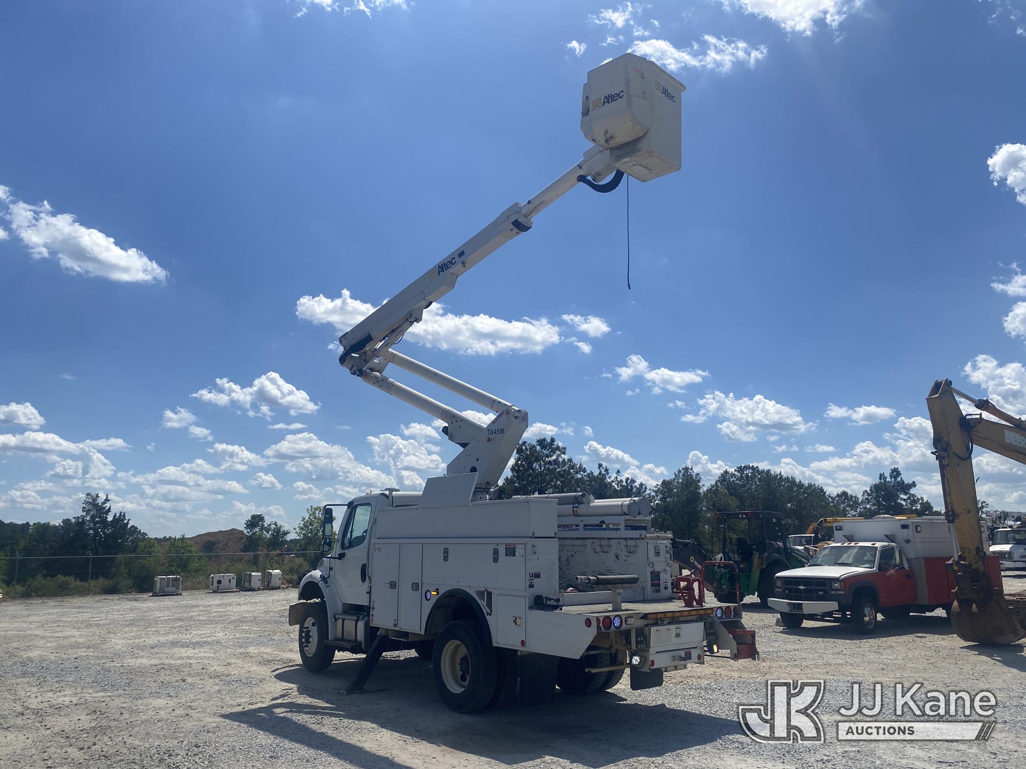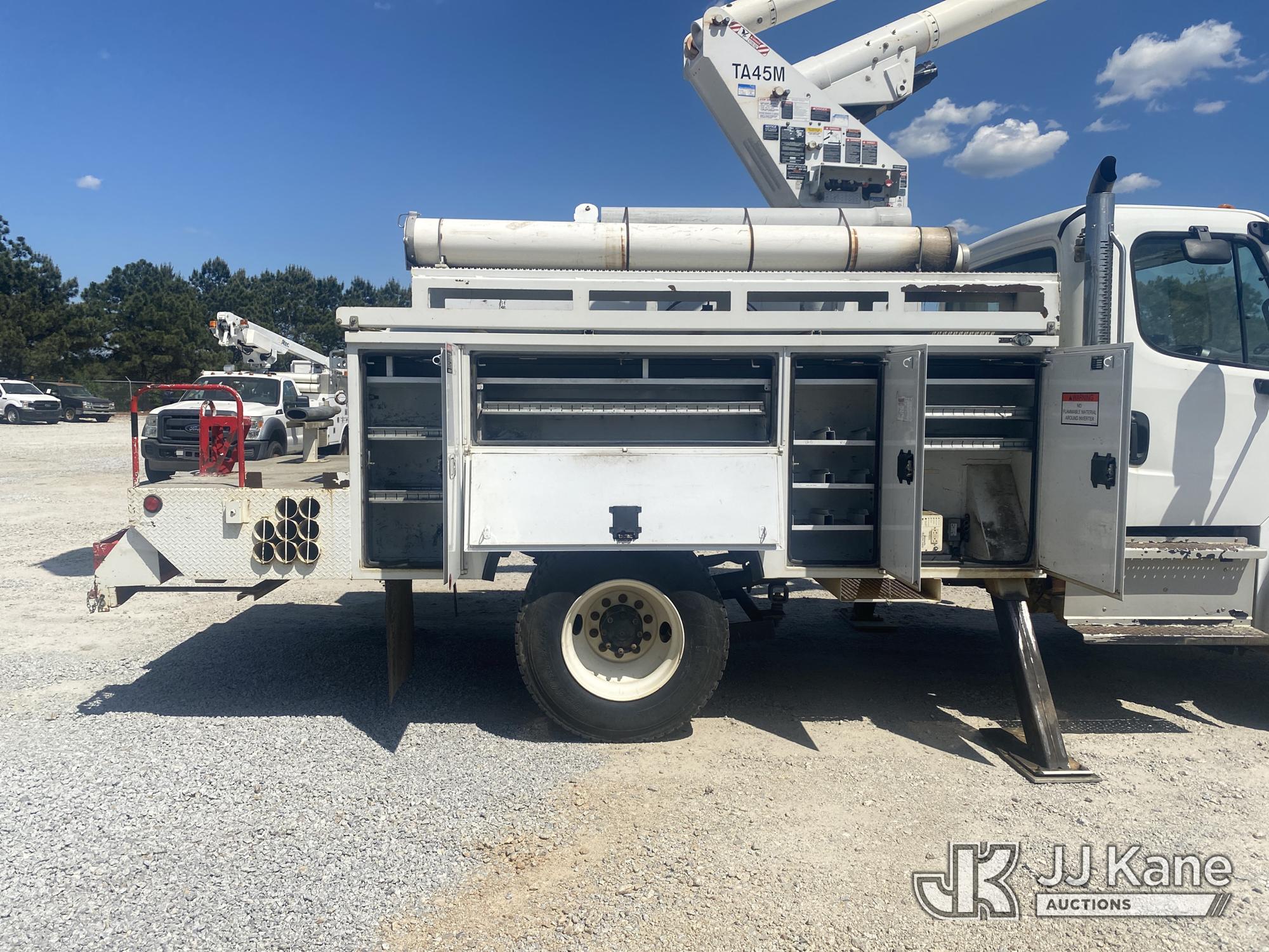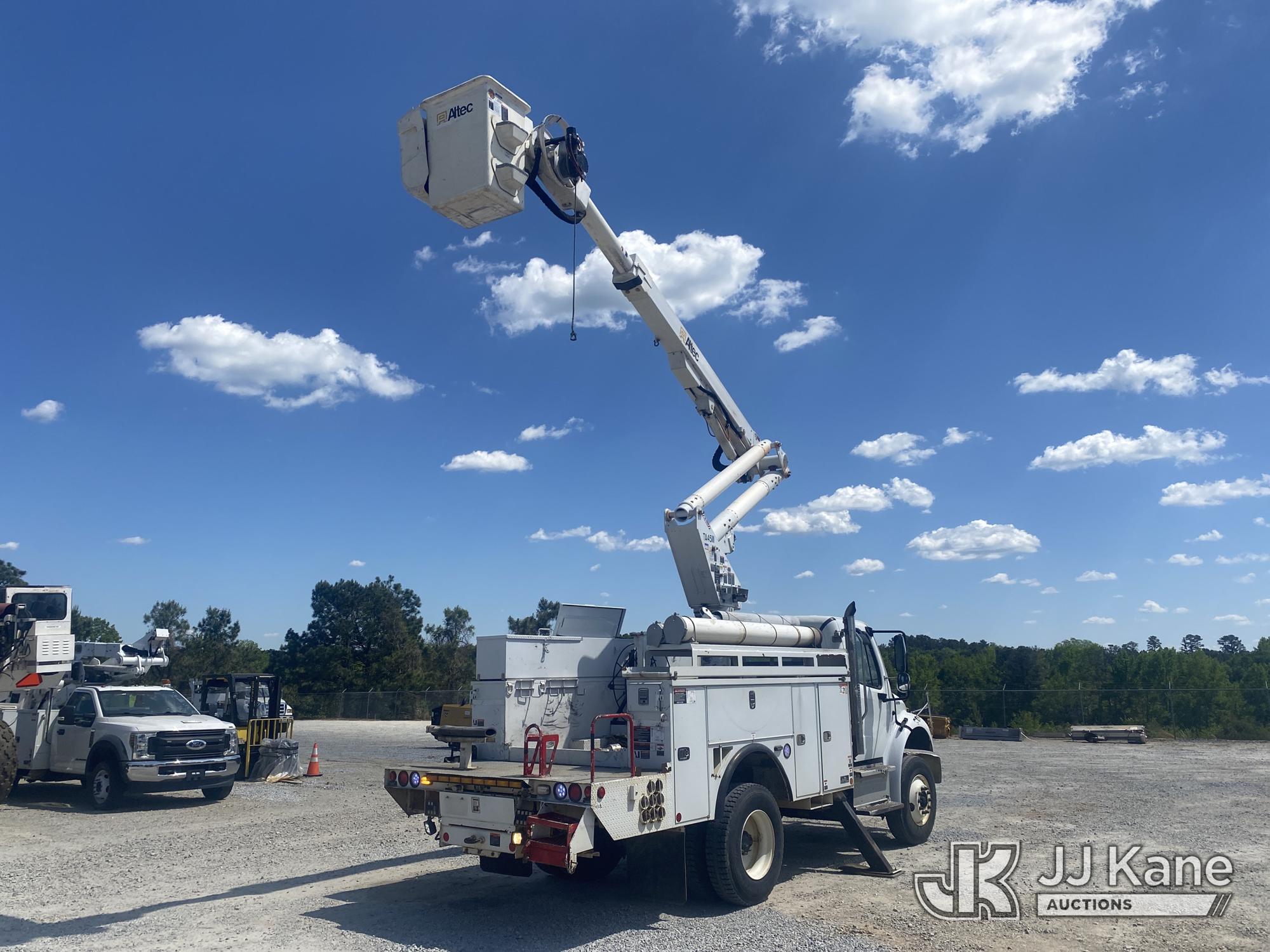 Altec TA45M, 50 ft, Articulating & Telescopic Material Handling Bucket Truck s/n 0514CY0505, with single-man bucket & 2 hyd outriggers, mounted behind cab on 2014 Freightliner M2 106 Utility Truck, 6.7L L6 Diesel, 4X2, Auto, A/C, (266,256 miles) (GA Power Unit) (Runs, Moves & Upper Operates Intermentently, Flashing Check Engine Light On, Engine Shut Off While Operating Upper The manufacturer has notified JJ Kane that this equipment is subject to an open recall. CSN 643 TA Winch Brake Inspection The equipment should not be operated until this is addressed. Buyer is responsible for reviewing the recall notice and contacting the manufacturer to schedule the recommended corrective actions. Associated costs may be covered by the manufacturer in some cases.) (Reads 14,297 hours) This is a Titled Item*