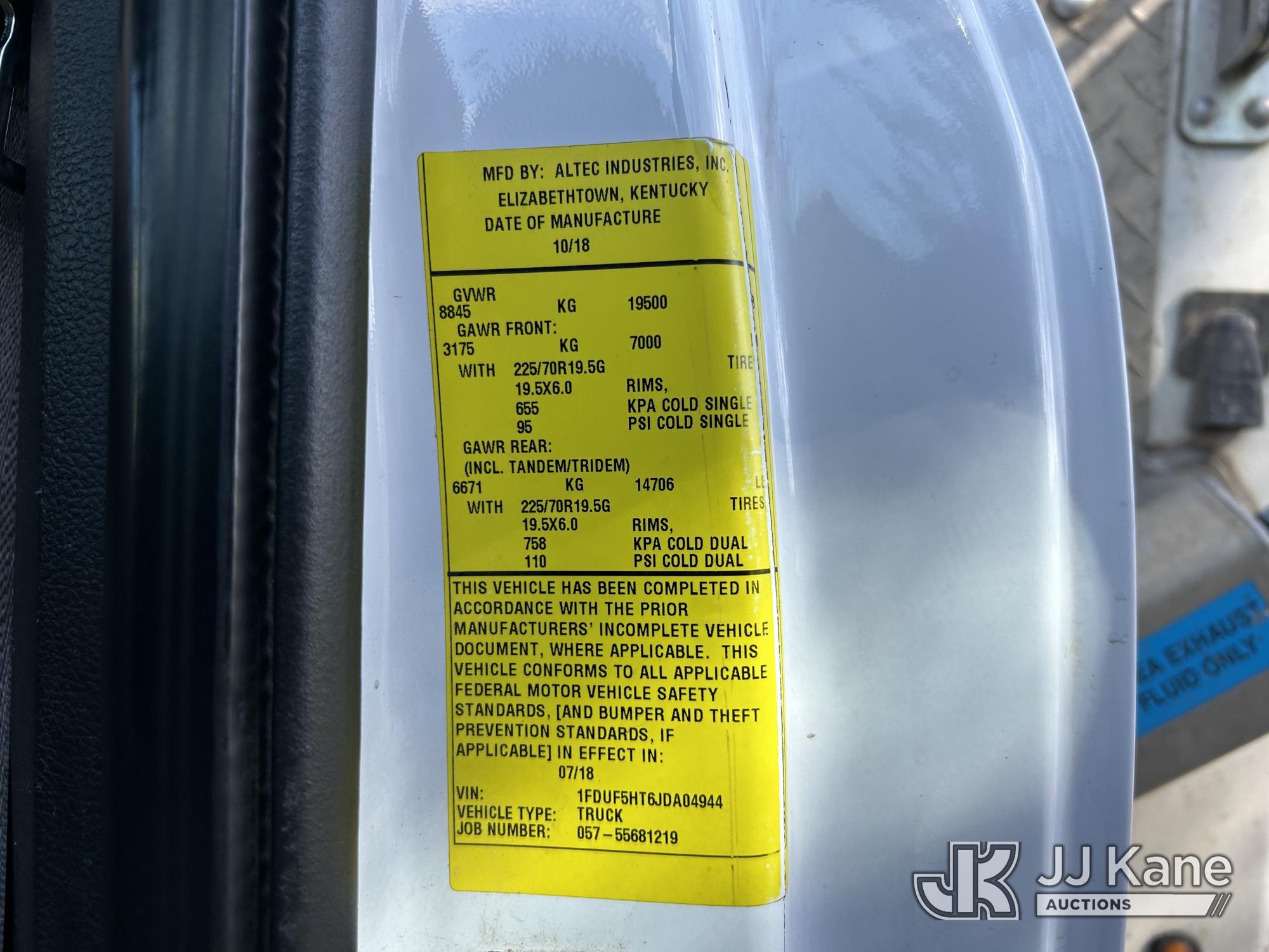 Altec AT37G, 42 ft, Bucket Truck s/n 1018DE21636, with Single-Man Bucket, mounted behind cab on 2018 Ford F-550 Service Truck, 6.7L Diesel 4WD, Auto, A/C, (123,783 miles) Arkansas Cooperative owned and operated. (Runs, Moves & Upper Operates) (Check Engine Light On) This is a Titled Item*