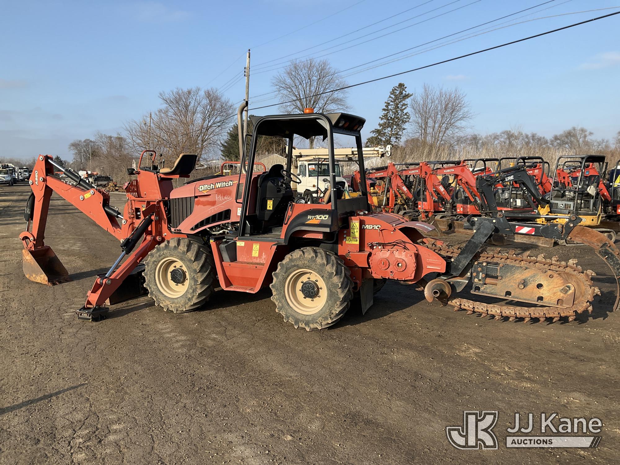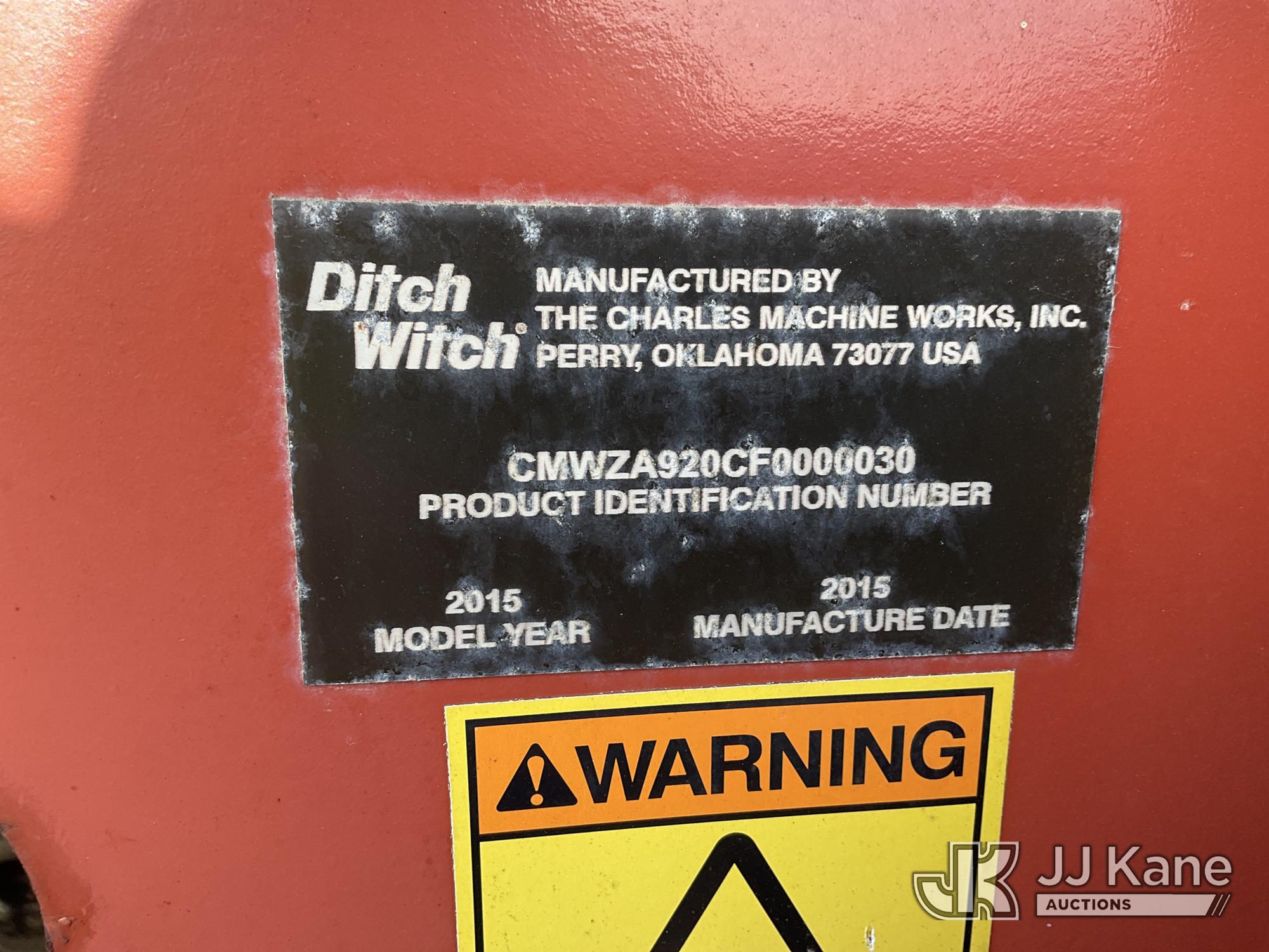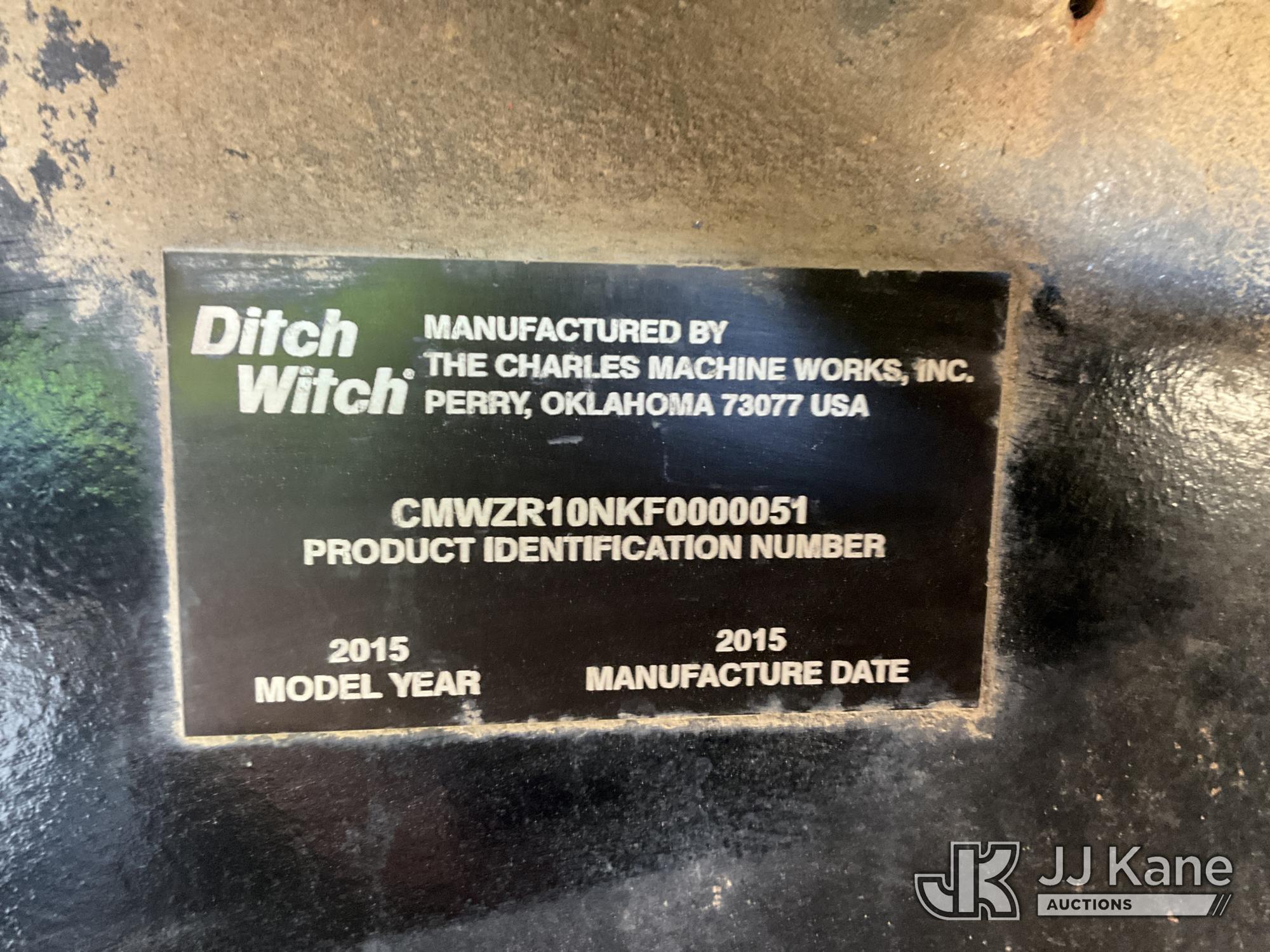 2015 Ditch Witch RT100 Rubber Tired Trencher, s/n CMWZR10NKF0000051, Deutz diesel, powershift, with trencher boom, backhoe attachment, backfill blade & ROPS, (Runs, Moves, Operates) (Reads 1,179 hours)*