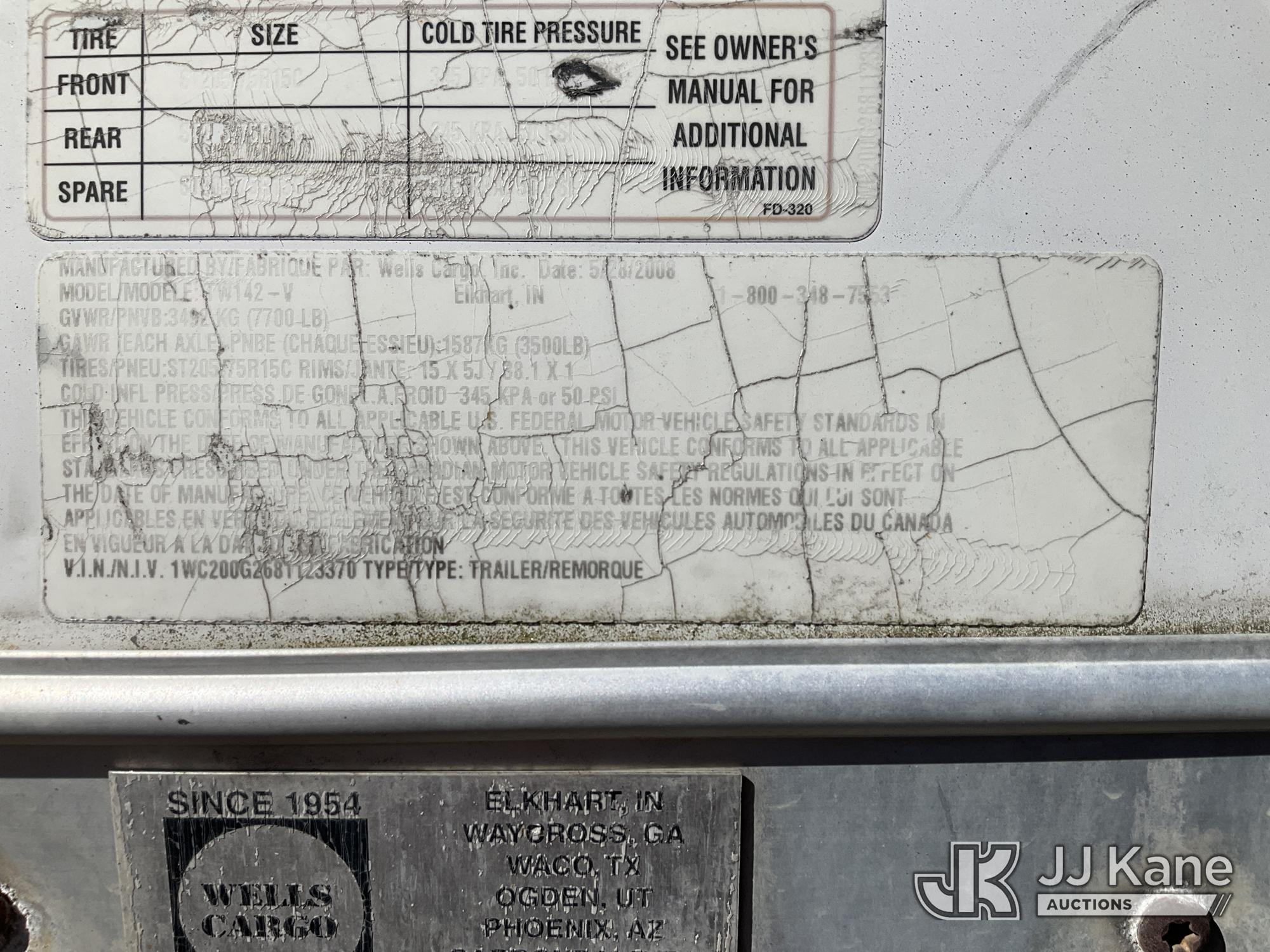 2008 Wells Cargo TW142-V T/A Enclosed Cargo Trailer, with Rear Ramp Door, Side Door, 19ft long overall, inside 14ft long, 69in wide between wheels, 84in tall This is a Titled Item*