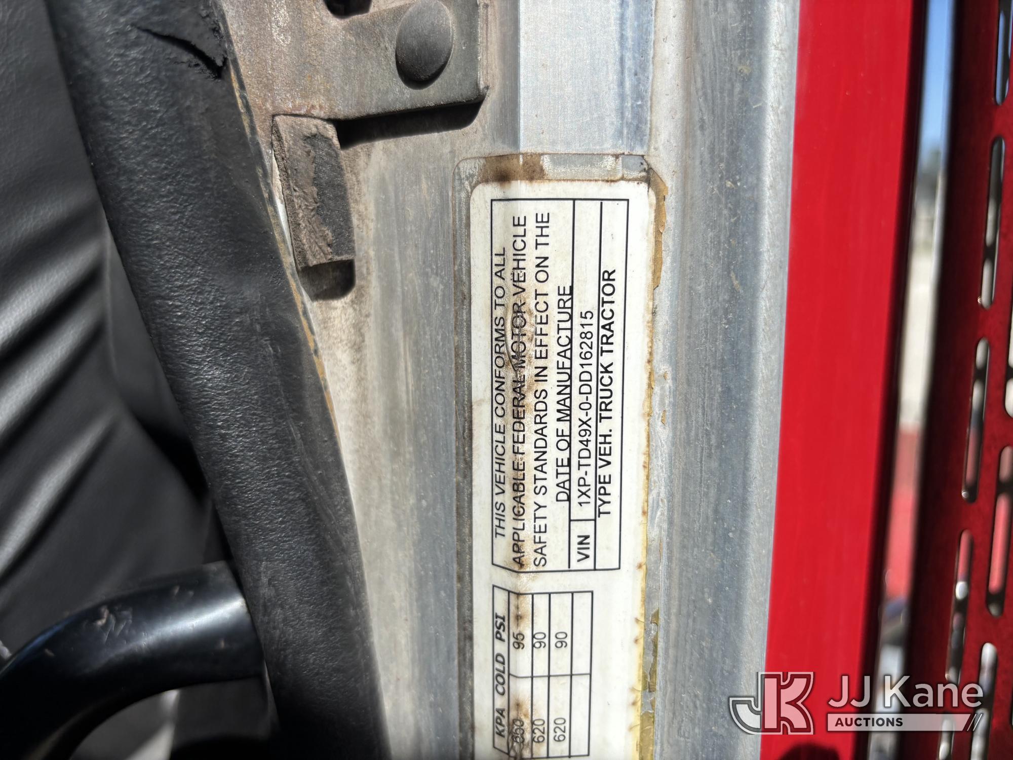 2013 Peterbilt 367 T/A Truck Tractor, 14.9L L6 DIESEL 6X4, 10 spd w/engine break, A/C, with Sliding 5th Wheel Plate, (530,032 miles) (Runs, Does Not Move) (Will Not Build Air, Check Engine Light On, Body & Paint Damage) This is a Titled Item*