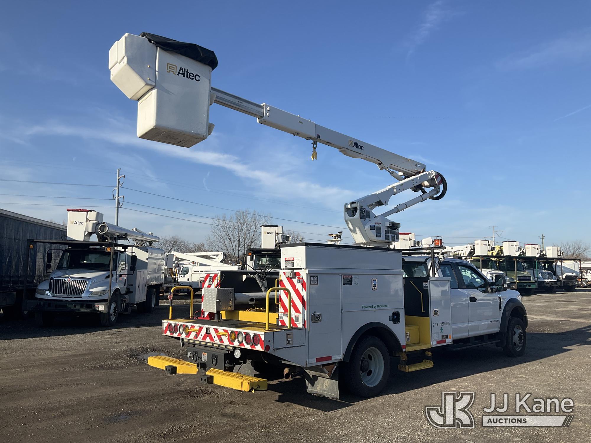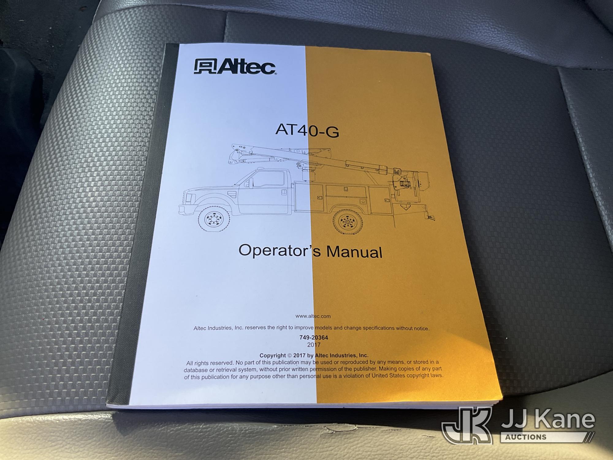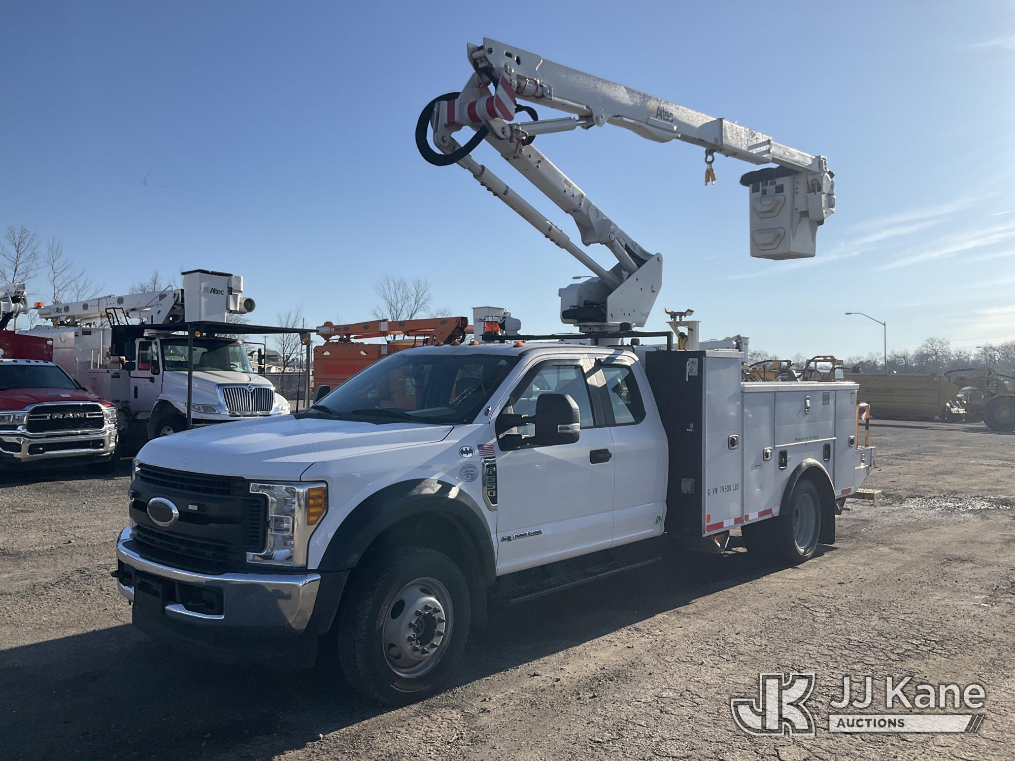 Altec AT40G, 45 ft, Articulating & Telescopic Bucket Truck s/n 0717EY2725, with single-man bucket, mounted behind cab on 2017 Ford F550 4x4 Extended-Cab Service Truck, 6.7L diesel, Auto, A/C, (140,764 miles) (Runs Moves & Upper Operates, Check Engine Light On, Bin Door Damage) This is a Titled Item*