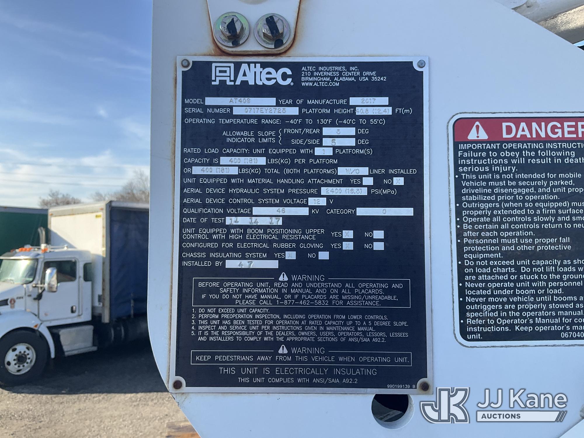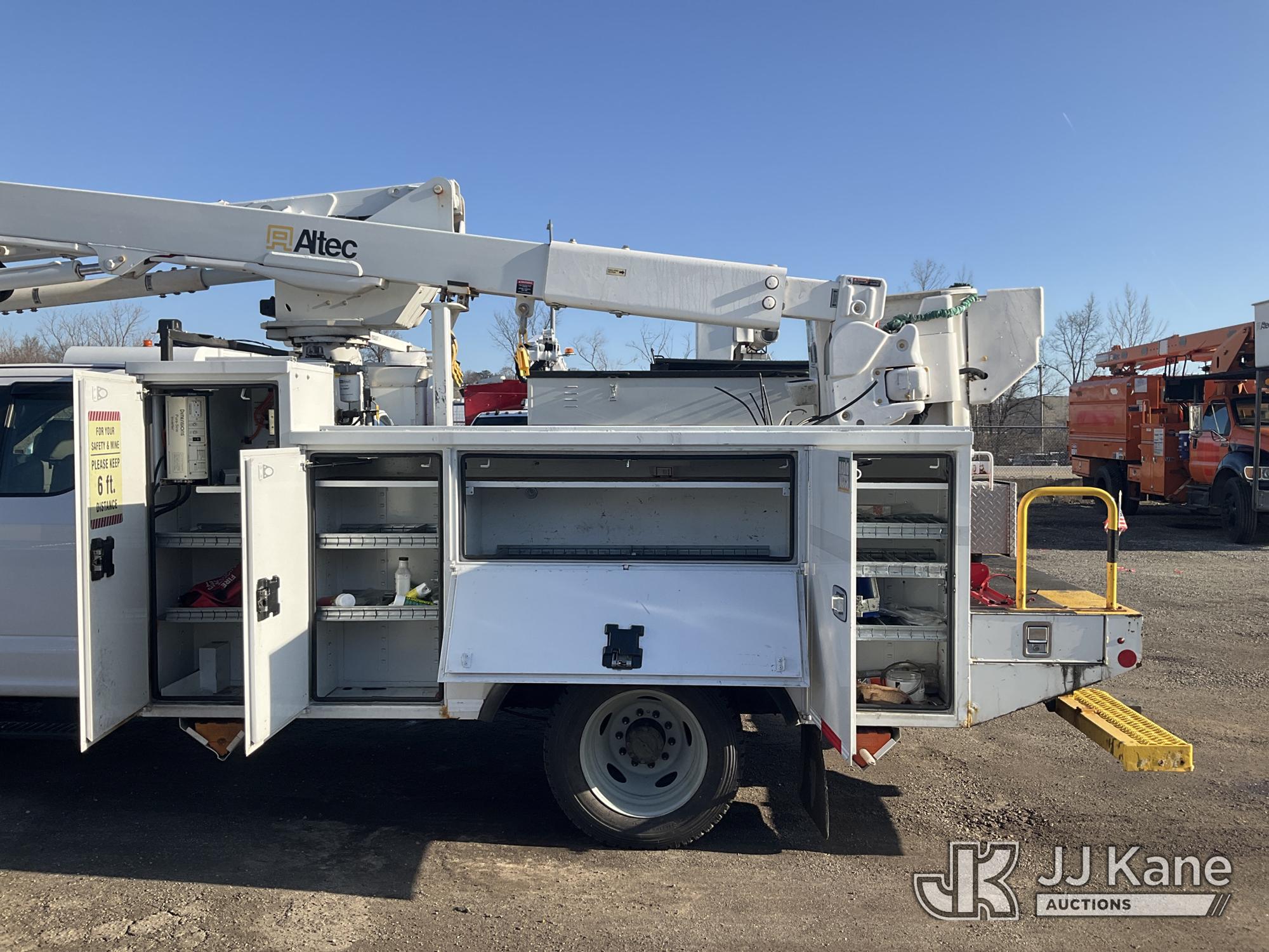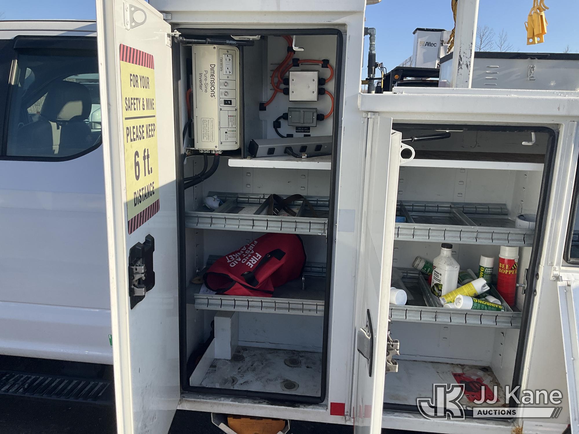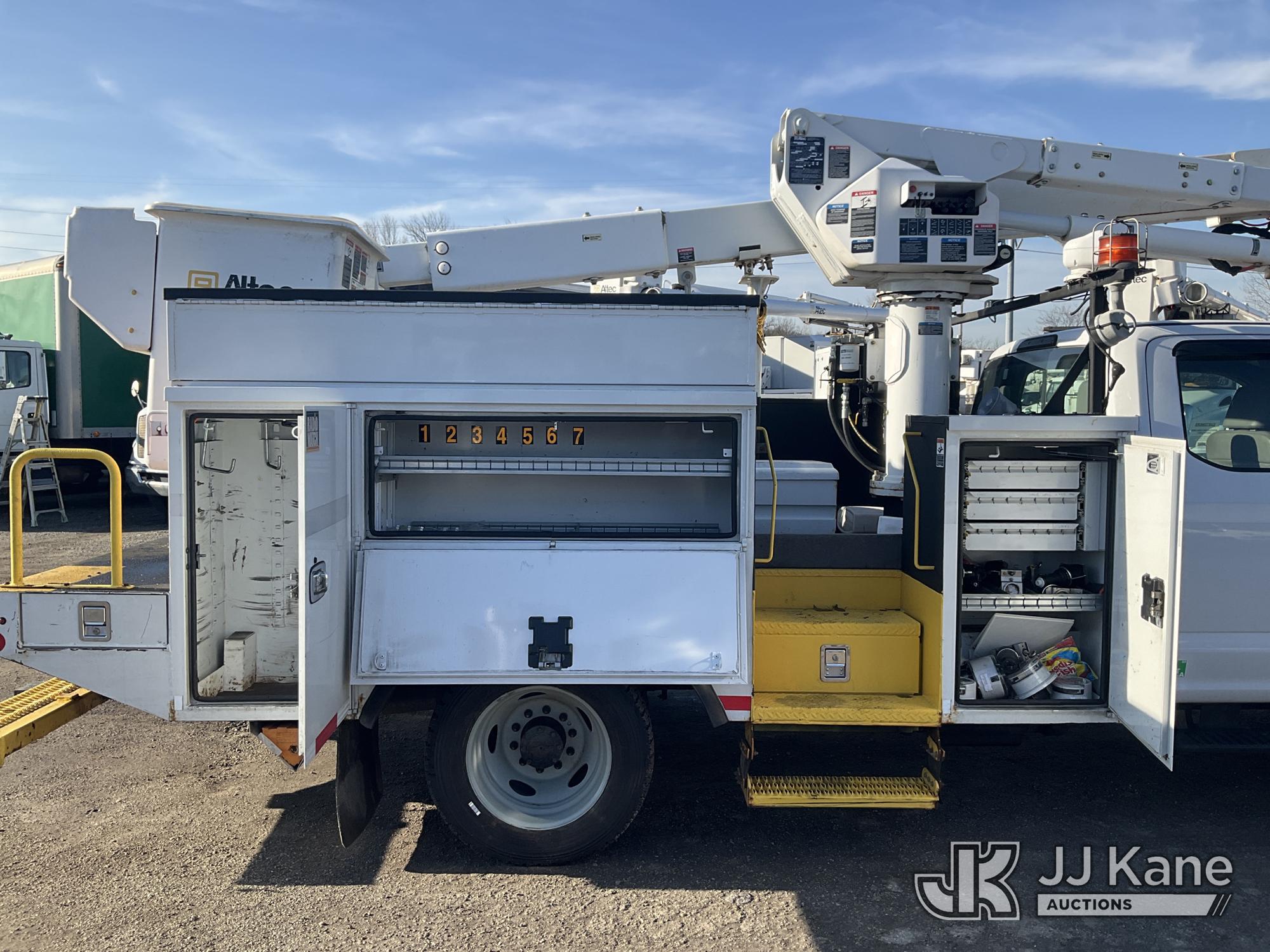 Altec AT40G, 45 ft, Articulating & Telescopic Bucket Truck s/n 0717EY2725, with single-man bucket, mounted behind cab on 2017 Ford F550 4x4 Extended-Cab Service Truck, 6.7L diesel, Auto, A/C, (140,764 miles) (Runs Moves & Upper Operates, Check Engine Light On, Bin Door Damage) This is a Titled Item*