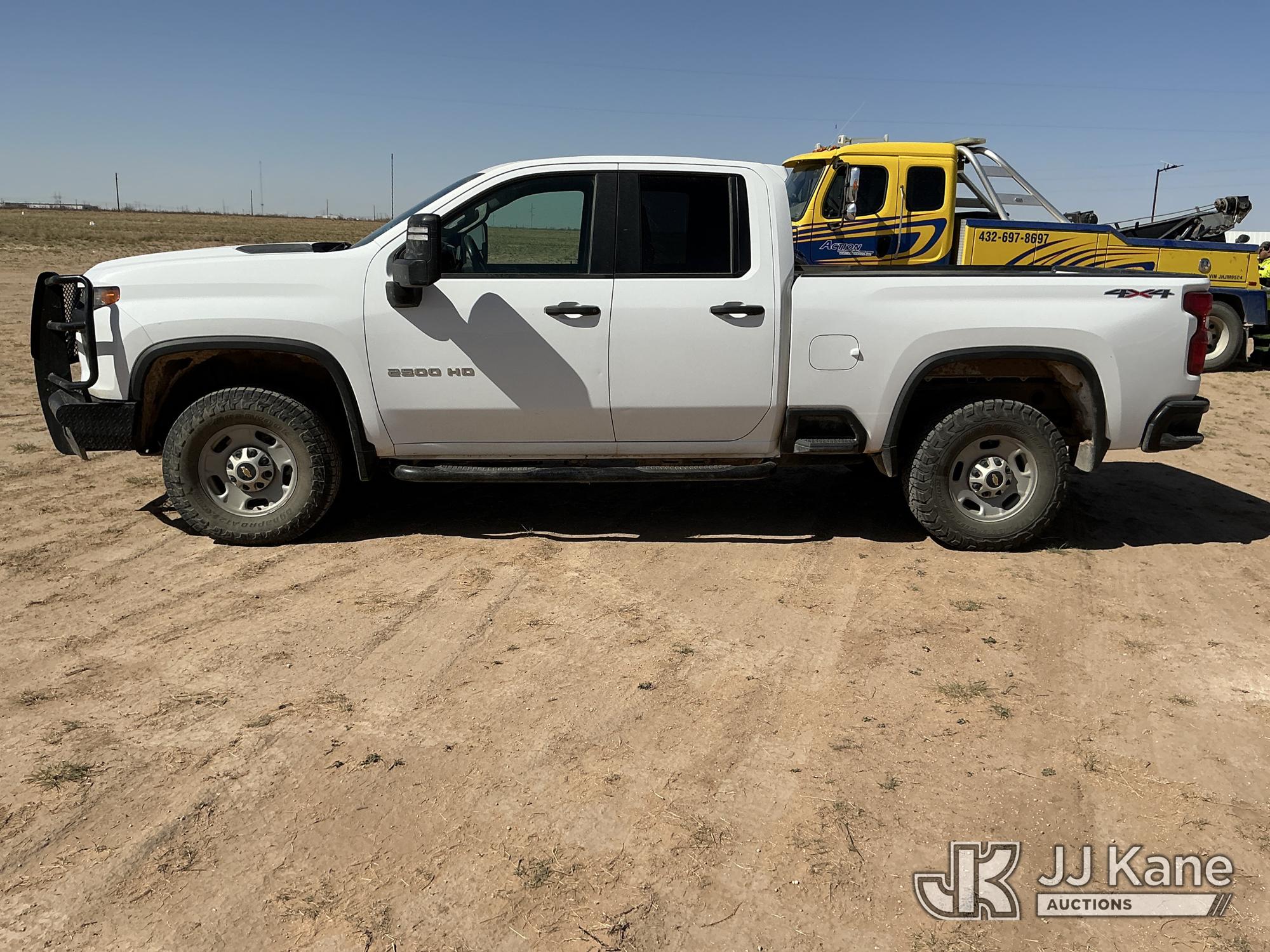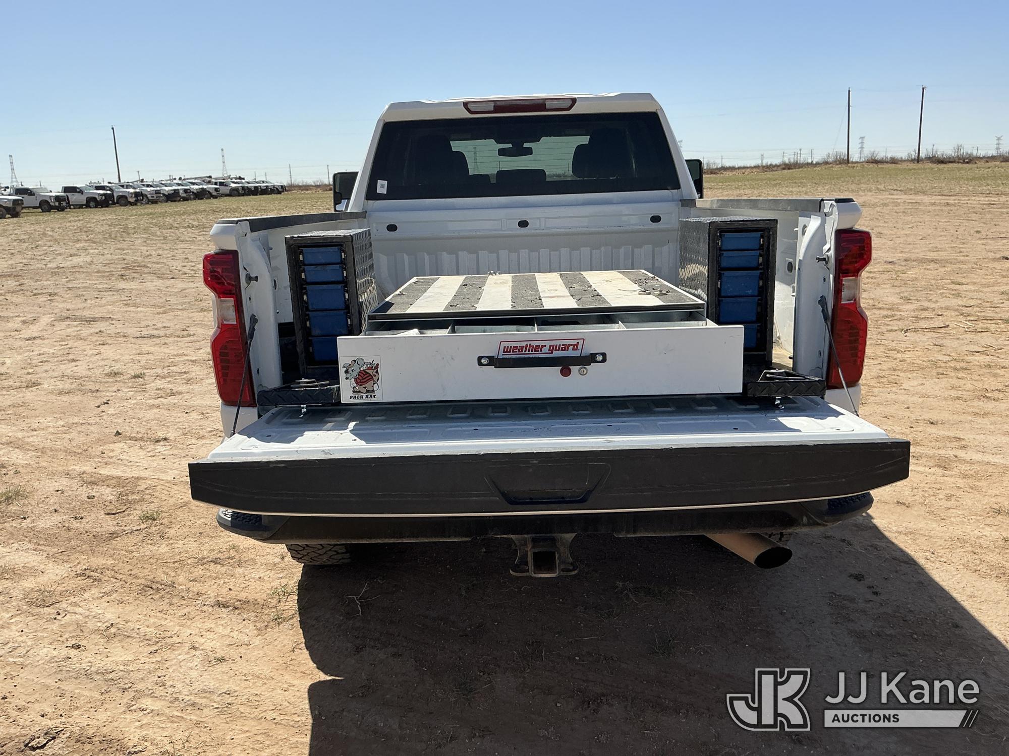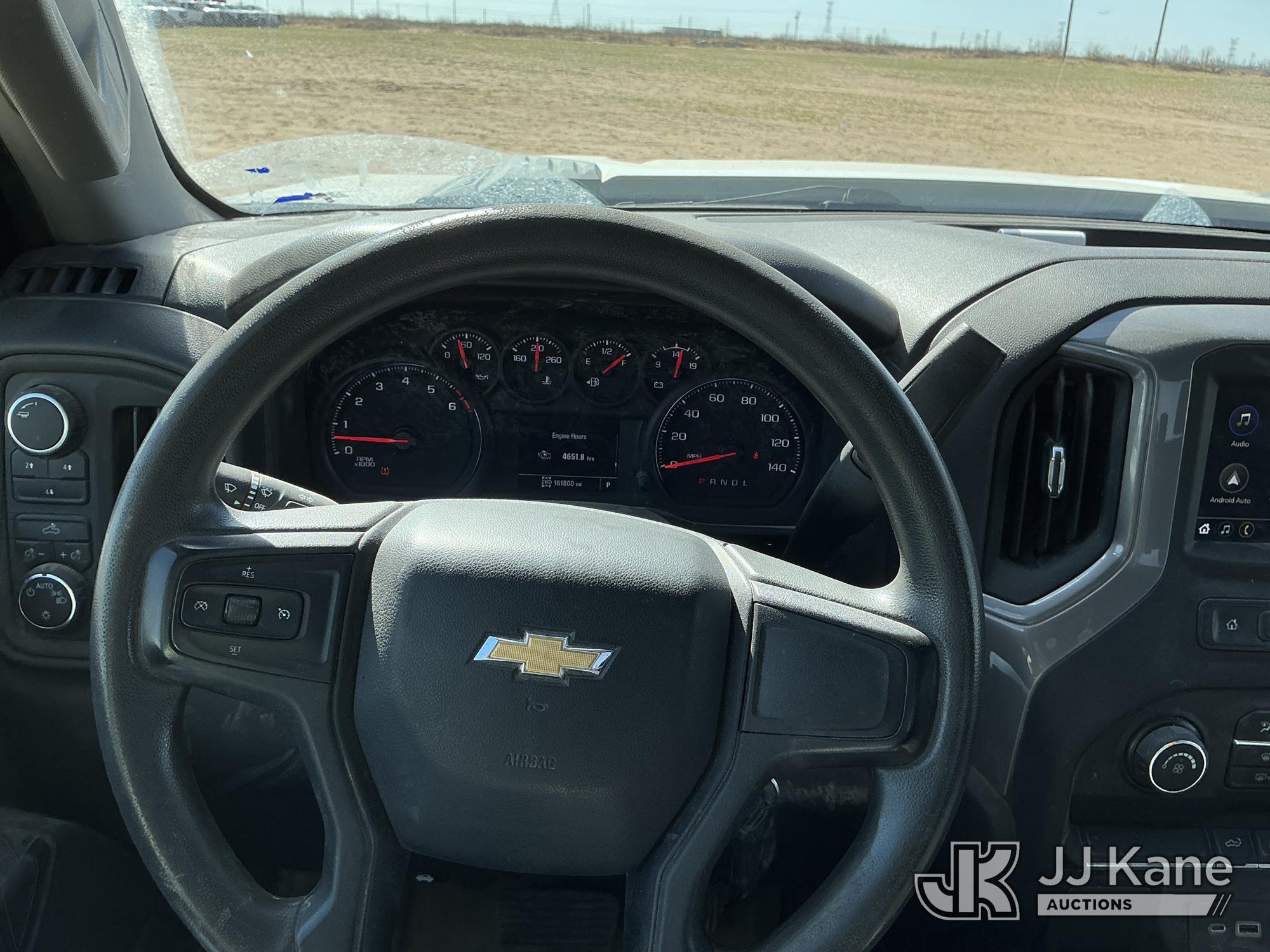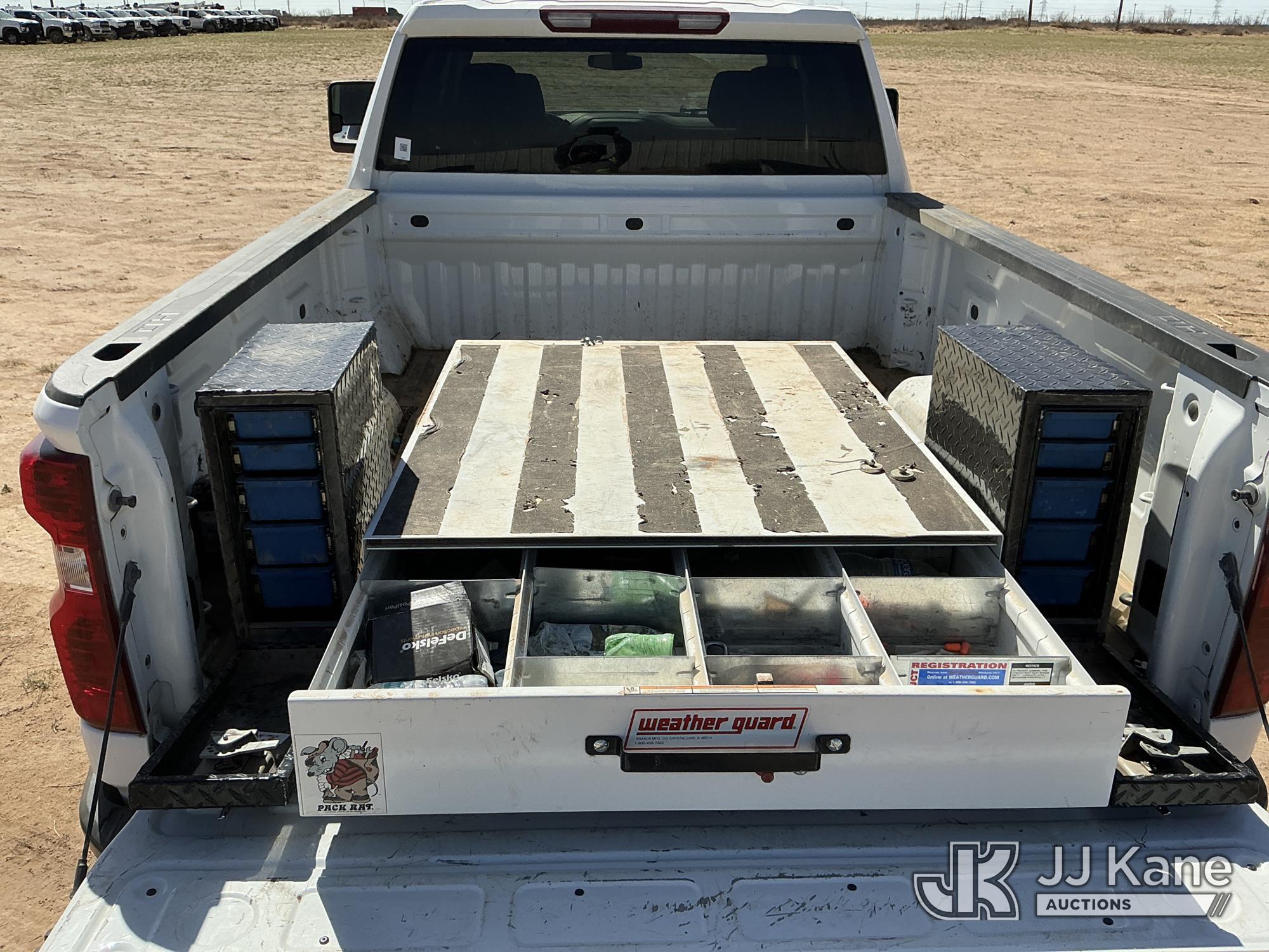 2022 Chevrolet Silverado 2500HD Crew-Cab Pickup Truck, 8-cyl gas, 4WD, 6-Speed Automatic, A/C, with heavy duty front brush guard, three bed mounted toolboxes, (161,800 miles) (Runs & Moves) (Paint & Body Damage, Passenger Side Bottom Glove Box Is Removed, Parts Missing Underneath & Next To The Passenger Seat) (Reads 4,651 hours) This is a Titled Item*