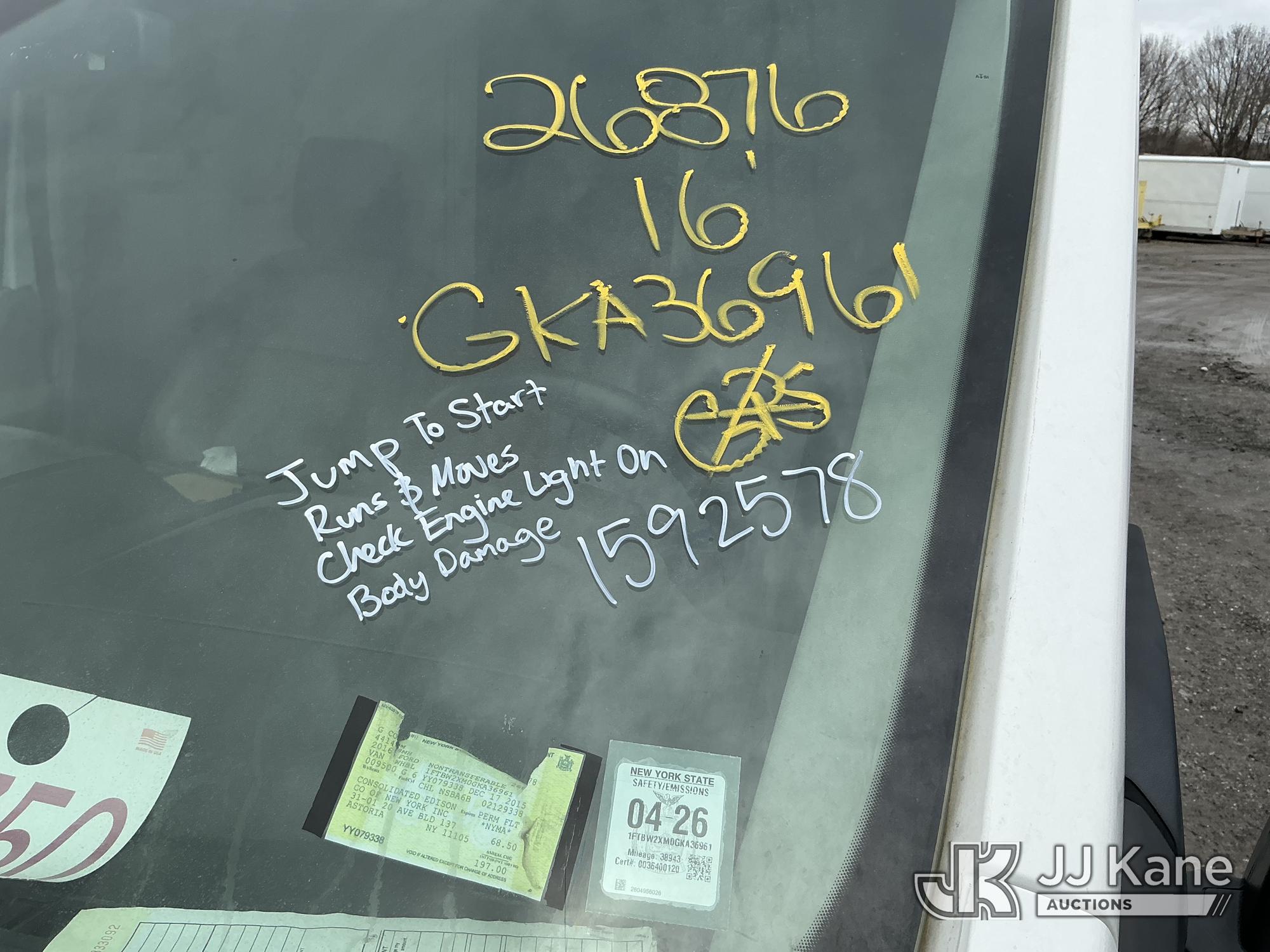 2016 Ford Transit 350 Cargo Van, 6-cyl gas, Auto, A/C, (40,854 miles) (Runs & Moves, Jump To Start, Check Engine Light On, Body Damage) This is a Titled Item*