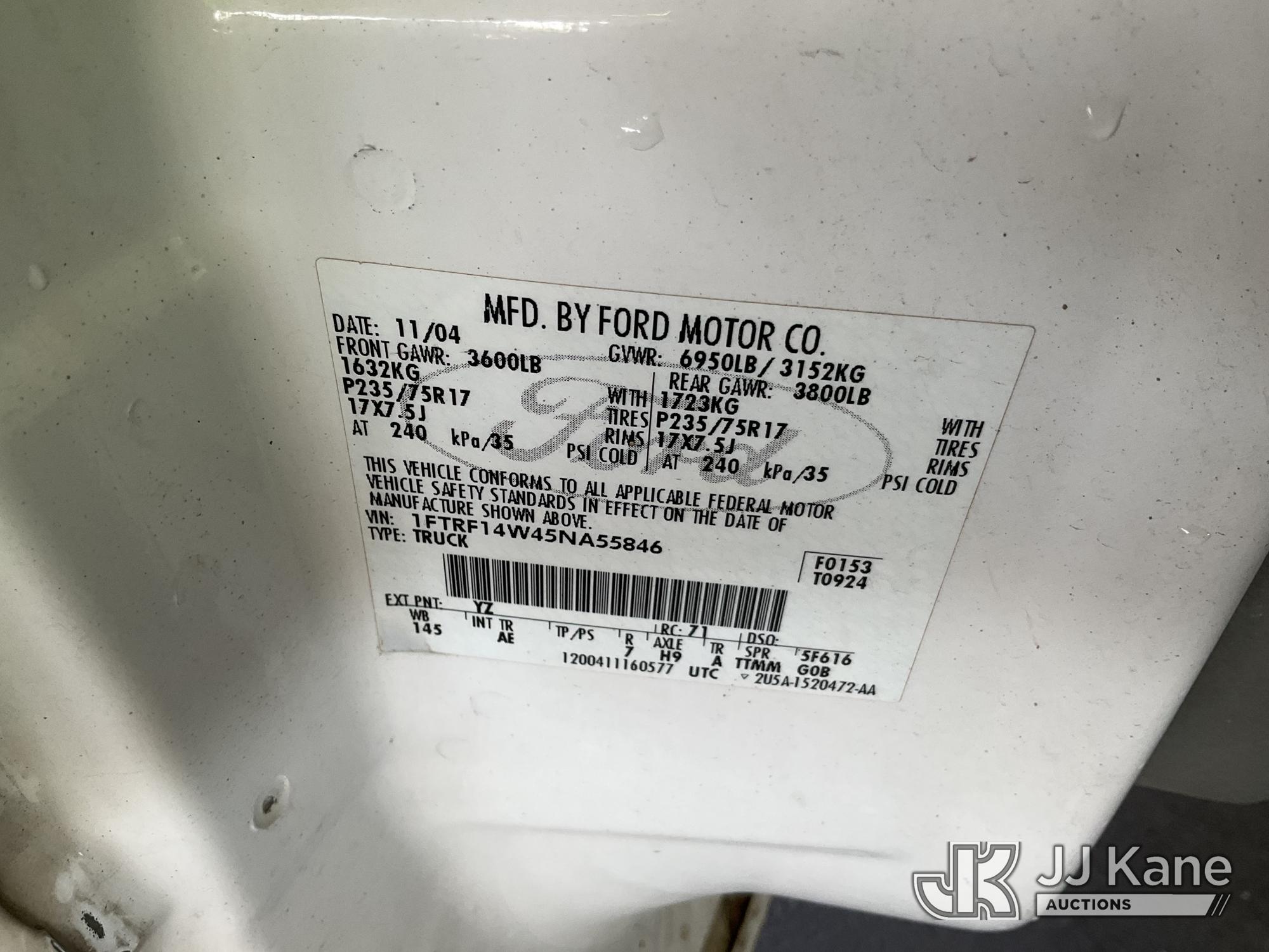2005 Ford F-150 Pickup Truck, s/n 1FTRF14W45NA55846, 4.6L V8 SOHC 16V 4WD, GAS, 4-Speed Automatic, A/C, with Toolbox, (Exempt from Odometer Disclosure - Reads 140,590 miles) (Runs & Moves) This is a Titled Item*
