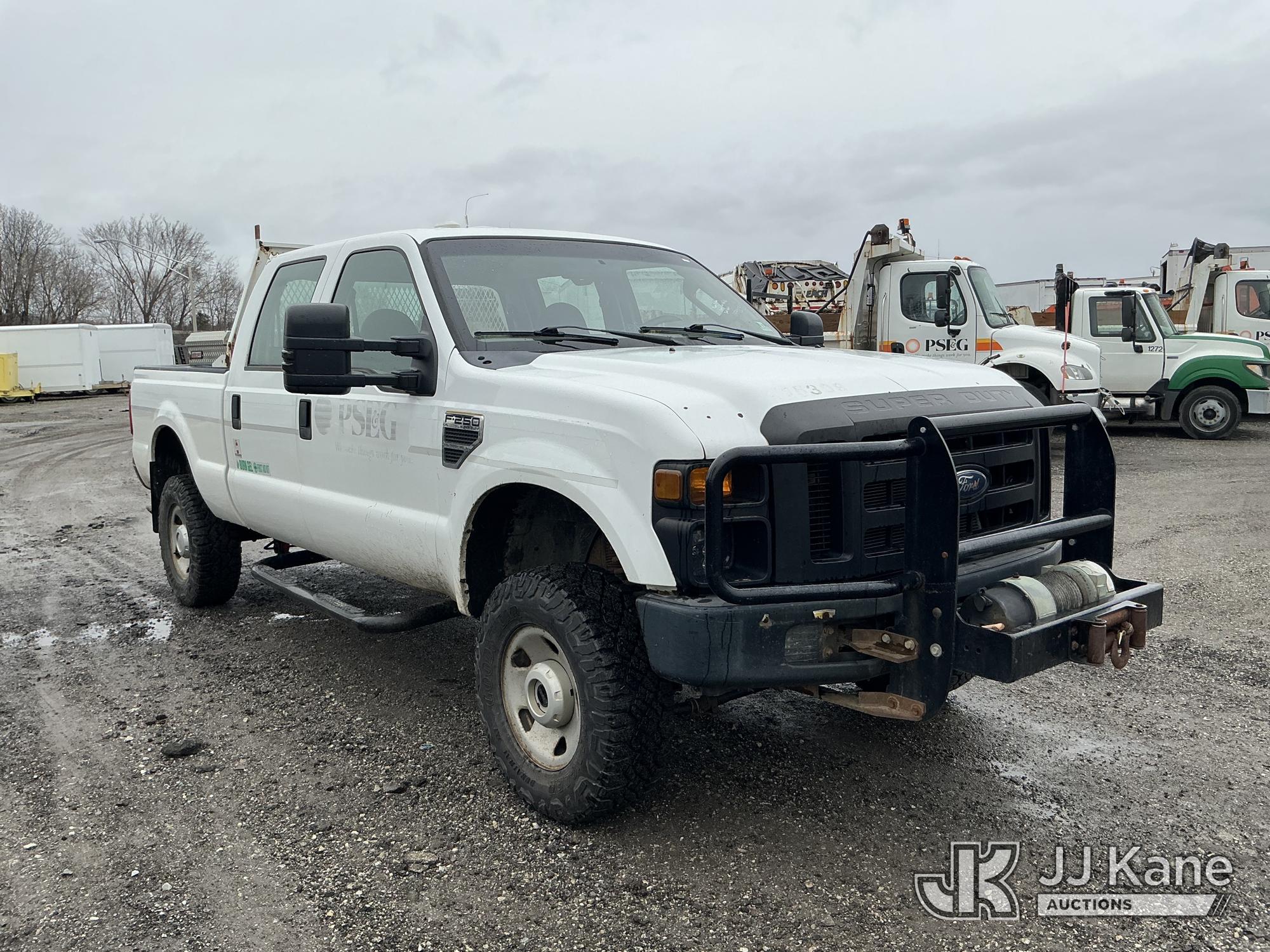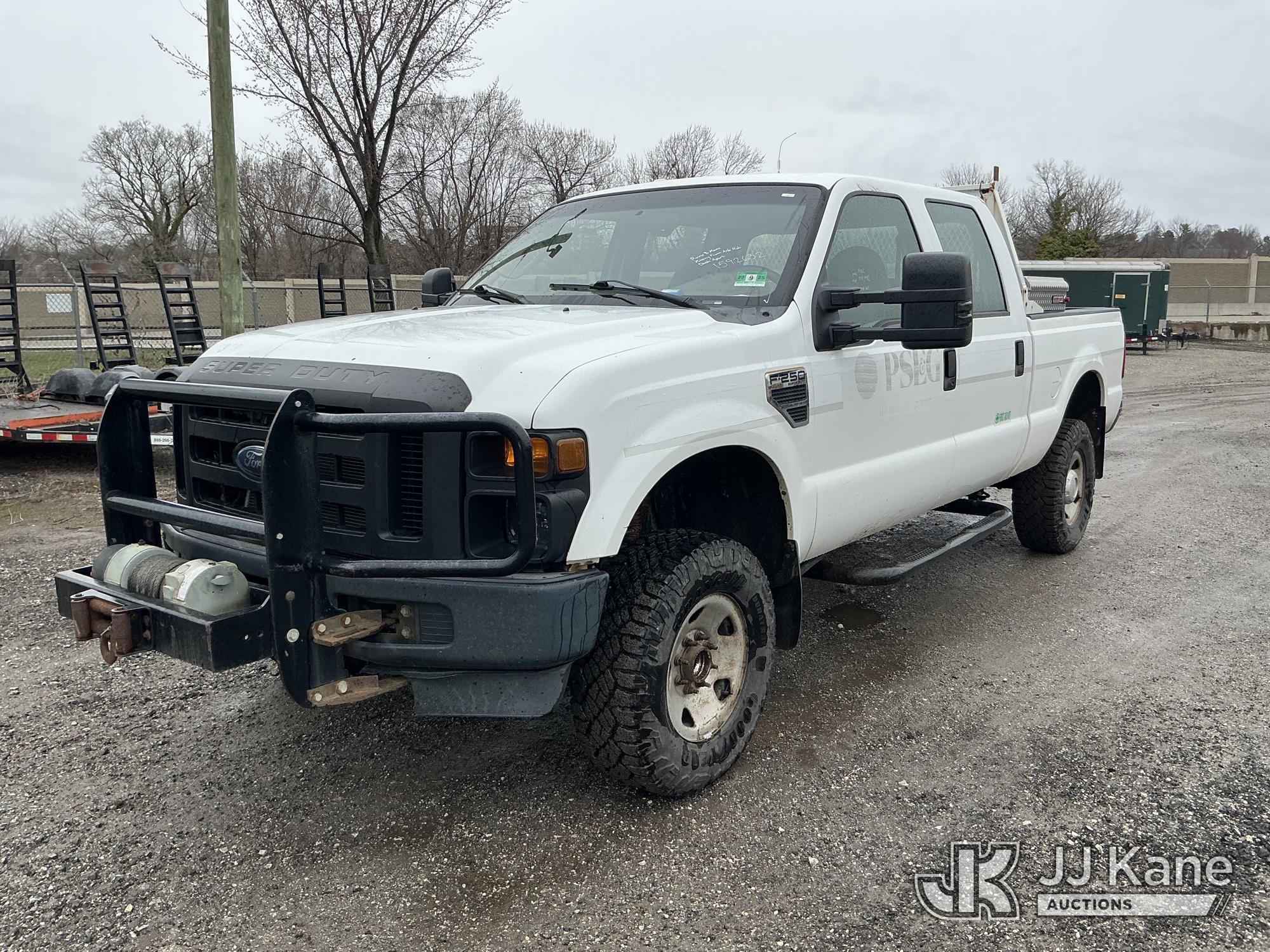 2009 Ford F250 4x4 Crew-Cab Pickup Truck, 10-cyl gas, Auto, A/C, with Front Bumper Winch, (284,904 miles) (Runs & Moves, Missing Front Axle Hub, Dash Apart) This is a Titled Item*