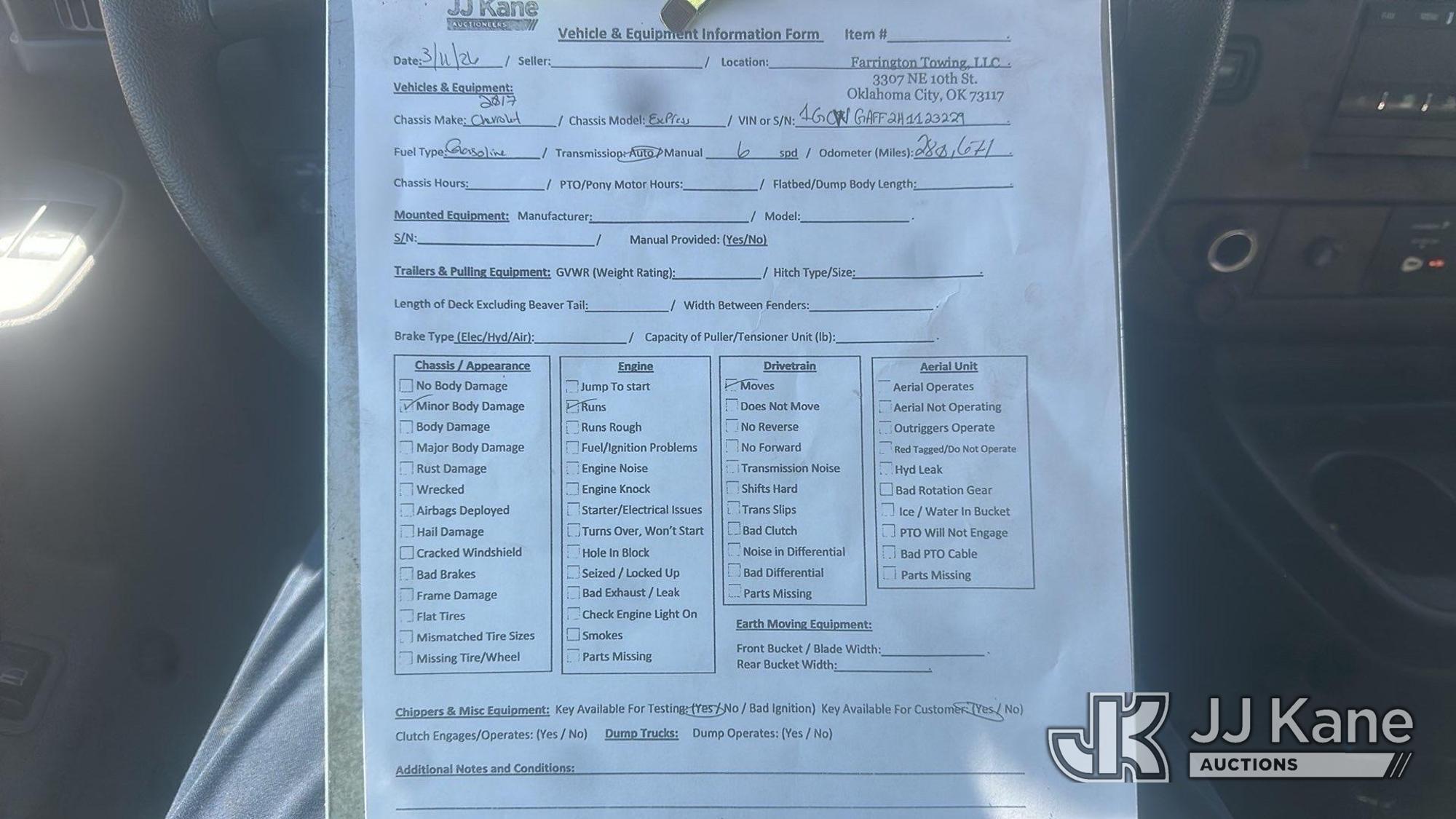 2017 Chevrolet Express 2500 Cargo Cargo Van, 8-cyl gas, RWD, 6-Speed Automatic, A/C, (280,671 miles) (Runs & Moves) This is a Titled Item*