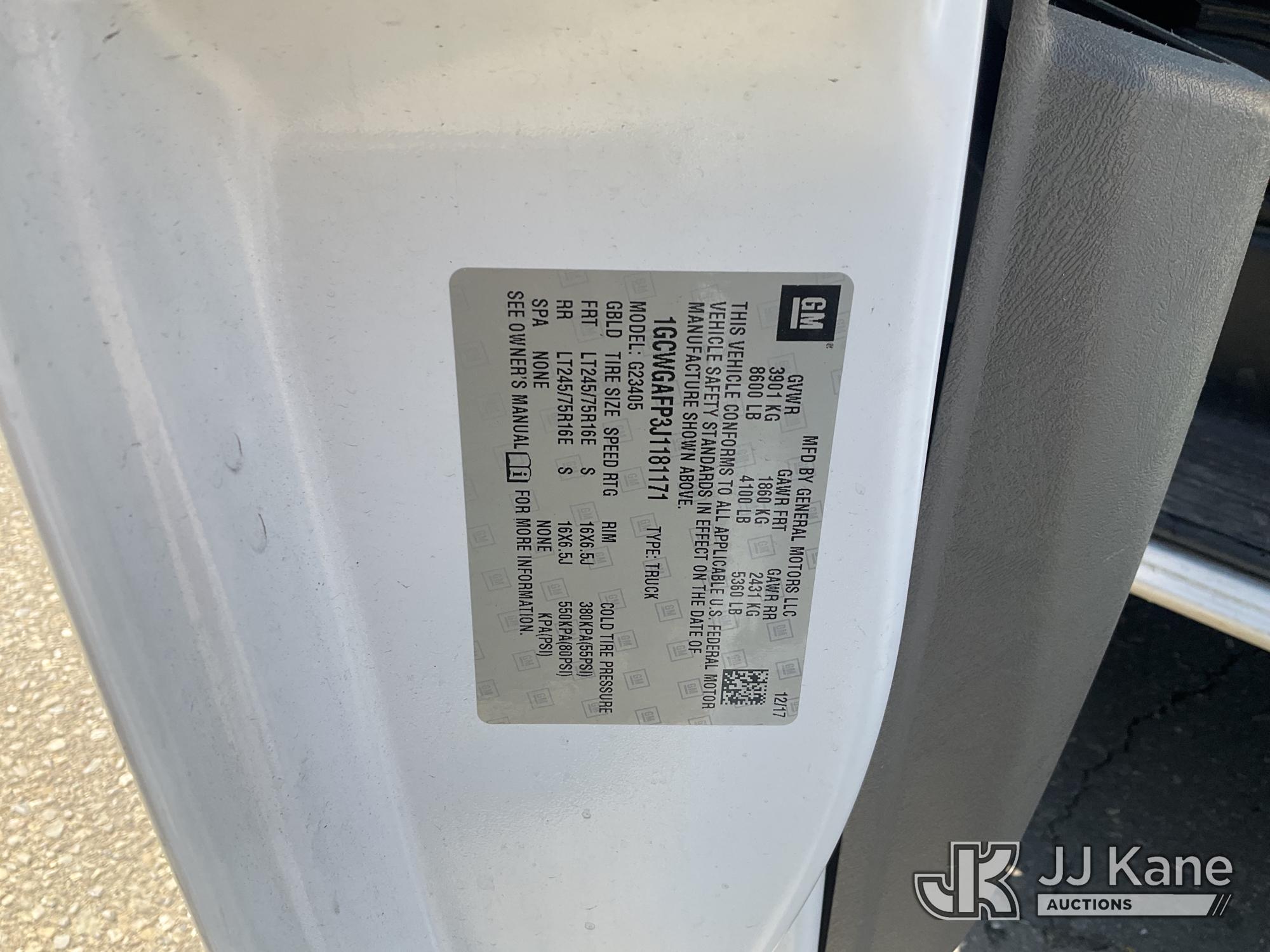 2018 Chevrolet Express 2500 Cargo Van, s/n 1GCWGAFP3J1181171, 4.3L V6 RWD, GAS, 6-Speed Automatic, A/C, with Ladder Rack, Tow Package, Metal shelves , (91,979 miles) (Runs & Moves ) This is a Titled Item*