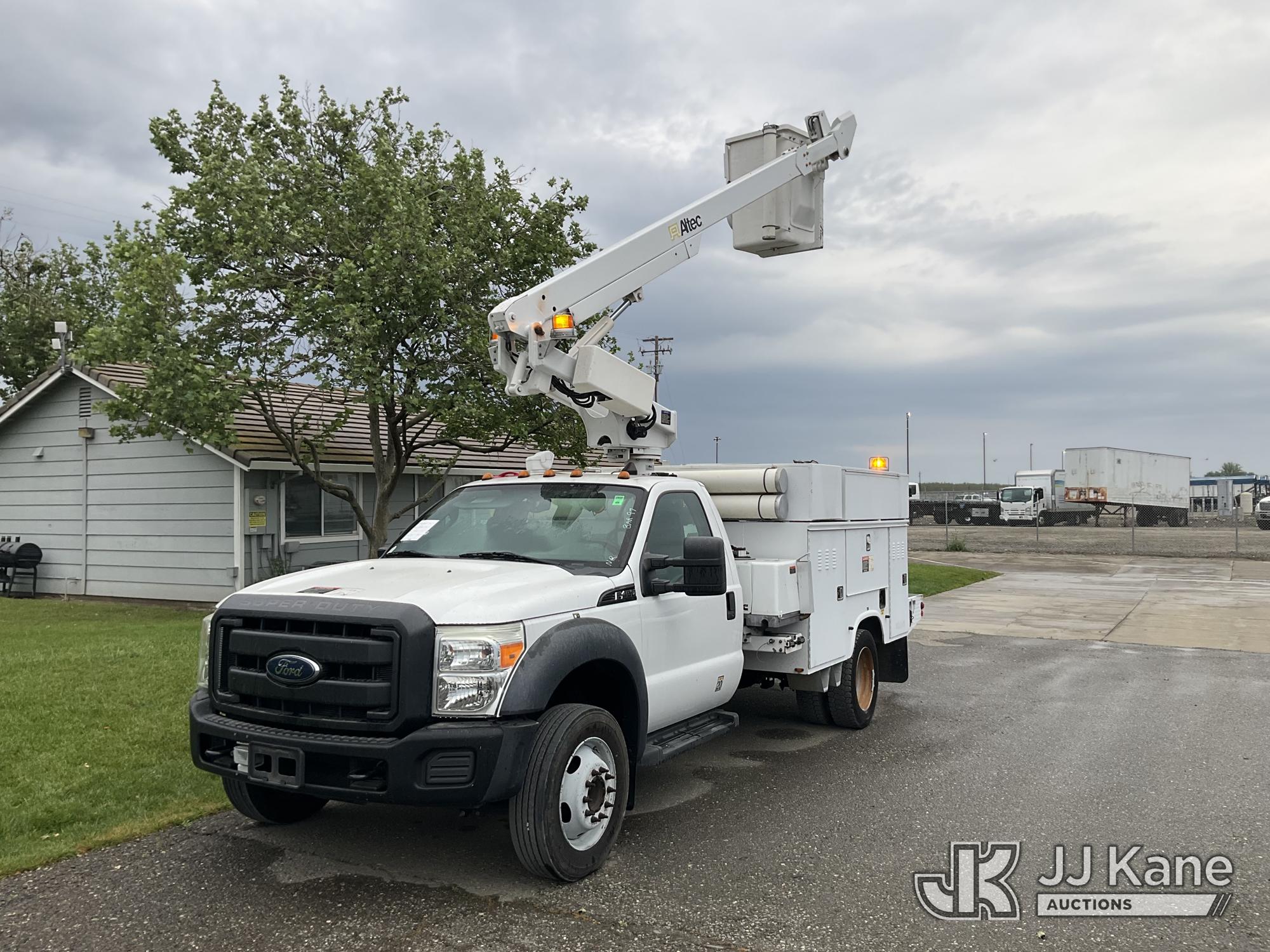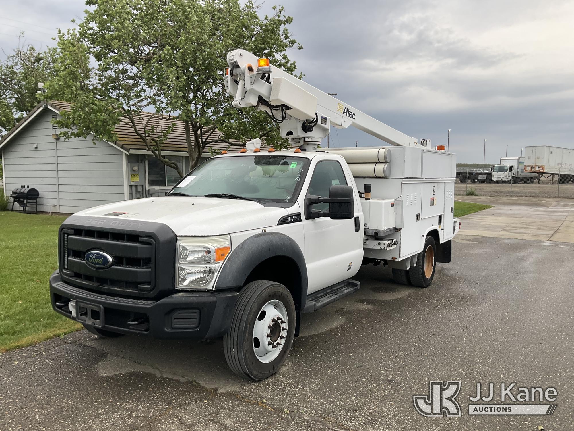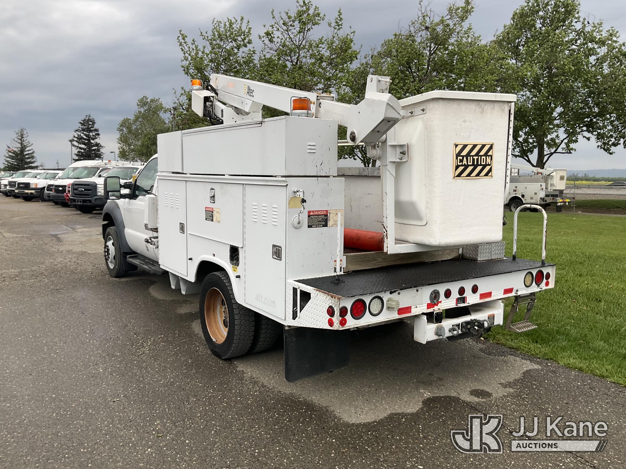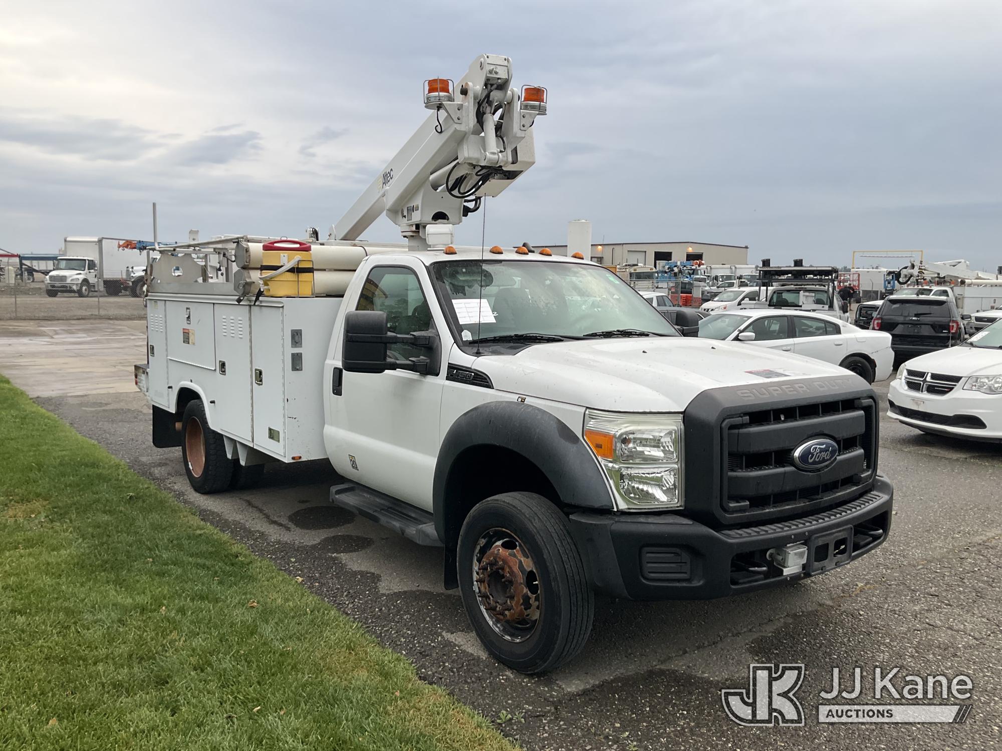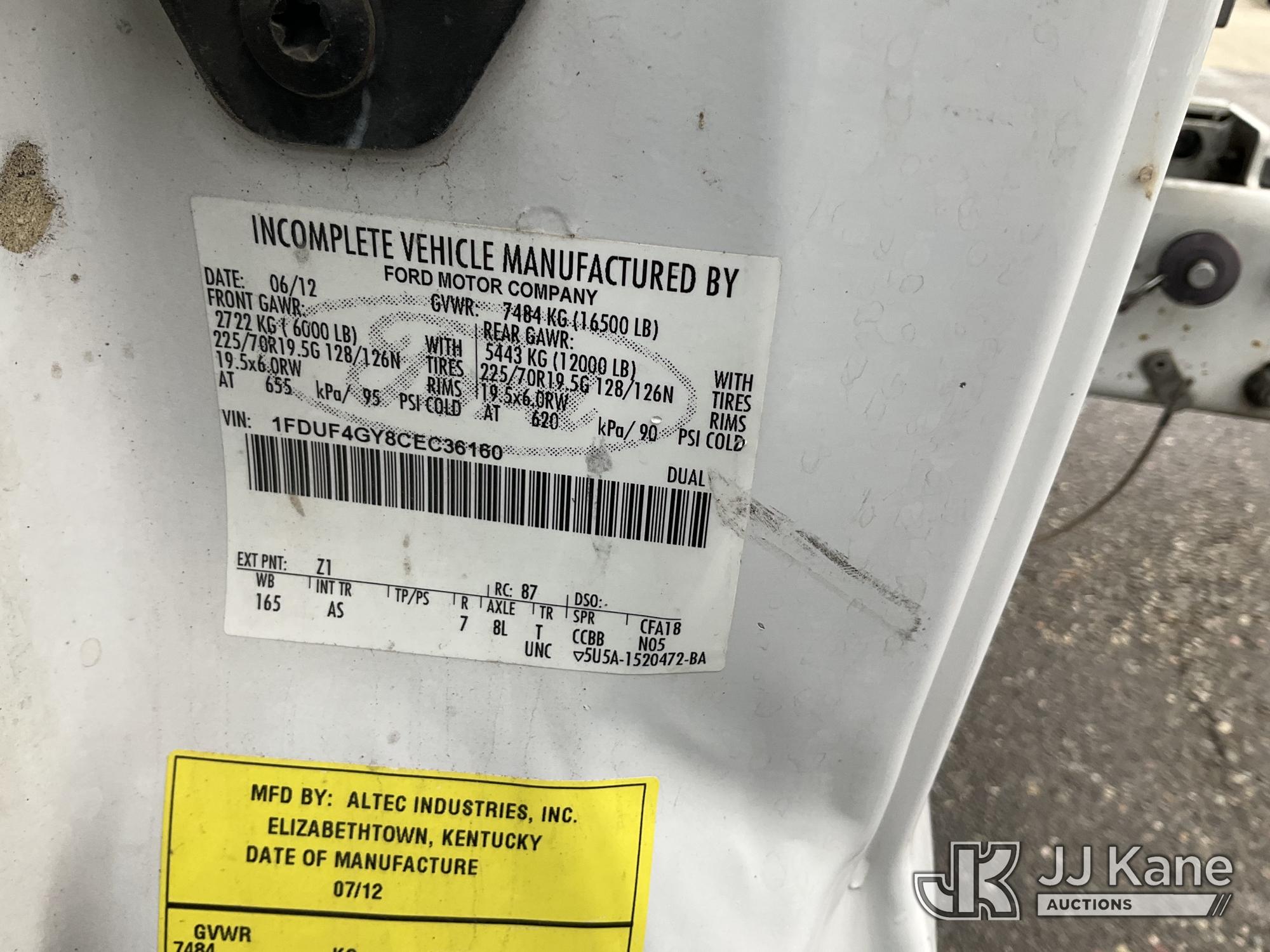 Altec AT200-A, 35 ft, Telescopic Bucket Truck s/n 0712DV18309, with single-man bucket, mounted behind cab on 2012 Ford F-450 SD Regular Cab DRW 2WD Service Truck, s/n 1FDUF4GY8CEC36160, 6.8L V10 SOHC 30V RWD, GAS, Auto, A/C, with Pintle hitch, (176,888 miles) Element Lease Return (Runs, Moves & Upper Operates, Serial Plate Faded) This is a Titled Item*