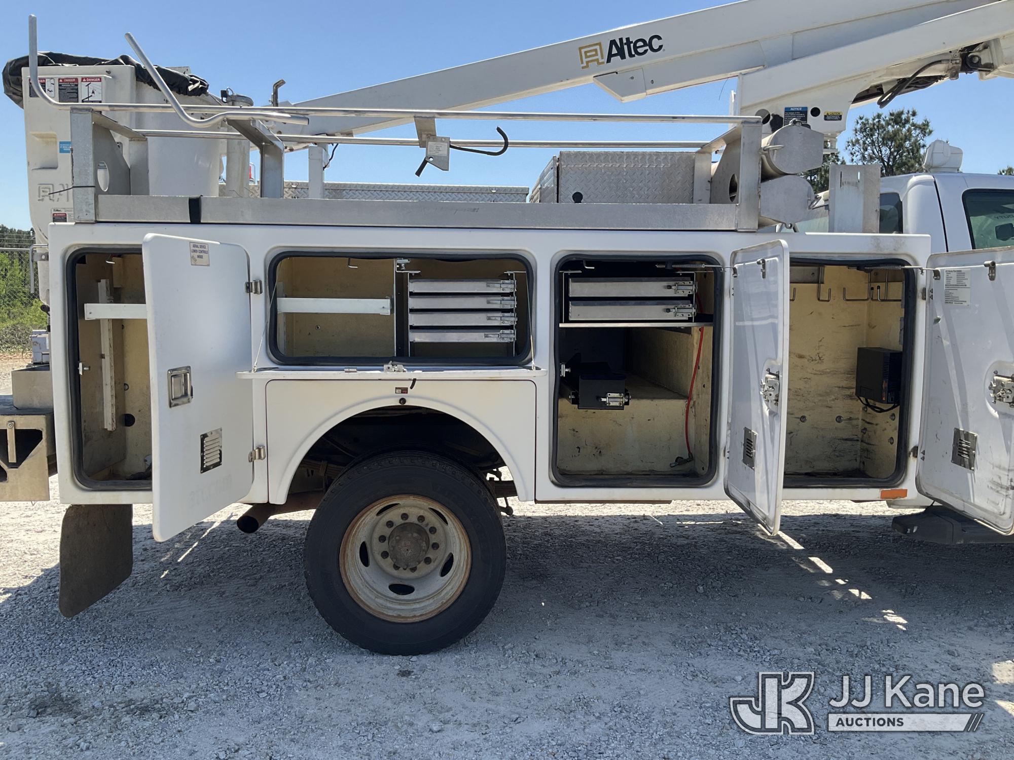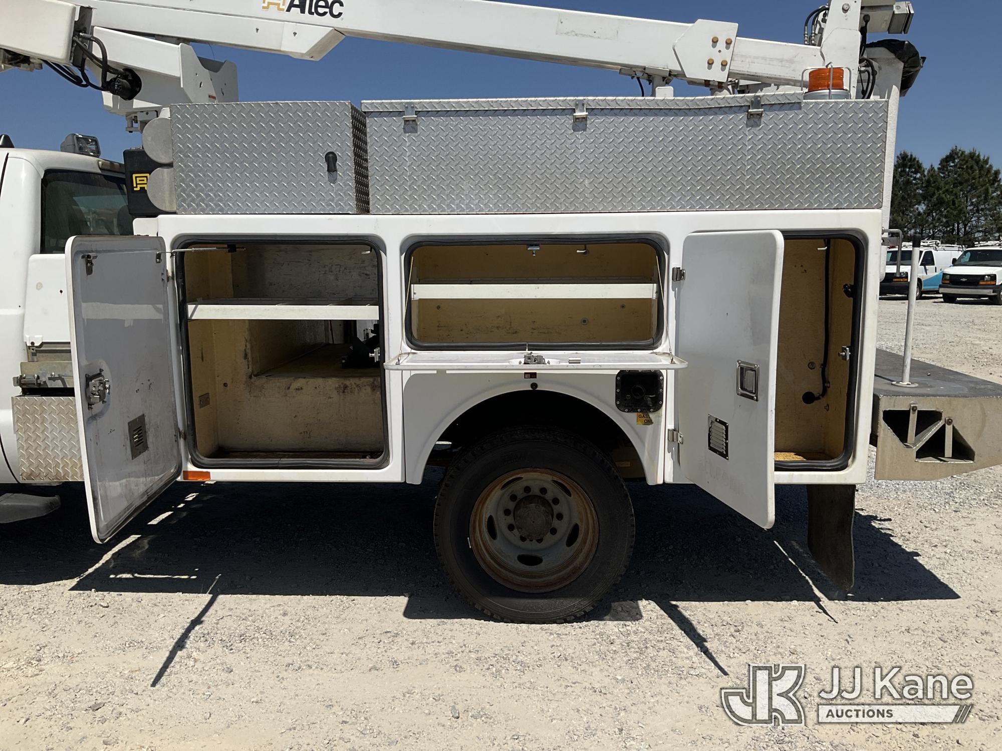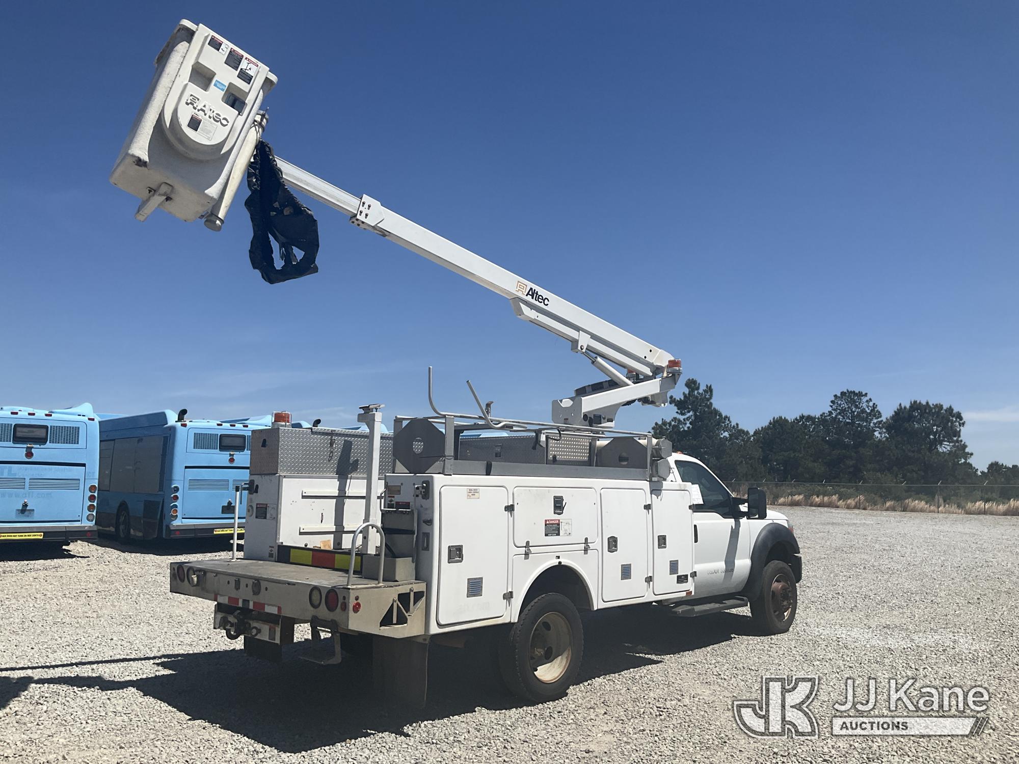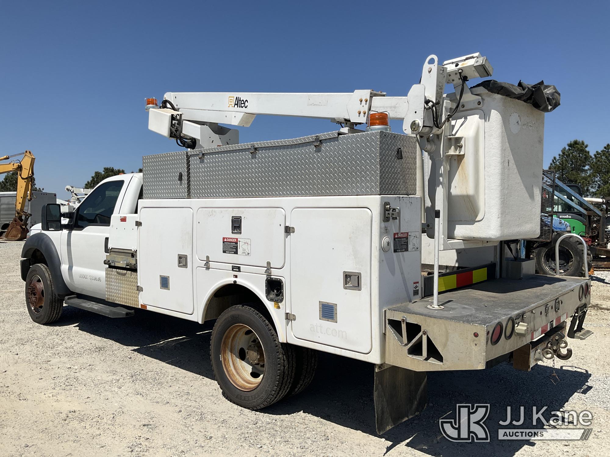 Altec AT200A, 35 ft, Telescopic Non-Insulated Bucket Truck s/n 1212BV19154, with single-man bucket, mounted behind cab on 2012 Ford F450 Service Truck, 10-cyl gas, Auto, A/C, with Onan Generator, (169,060 miles) (Runs, Moves & Upper Operates) (Jump To Start) This is a Titled Item*
