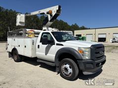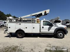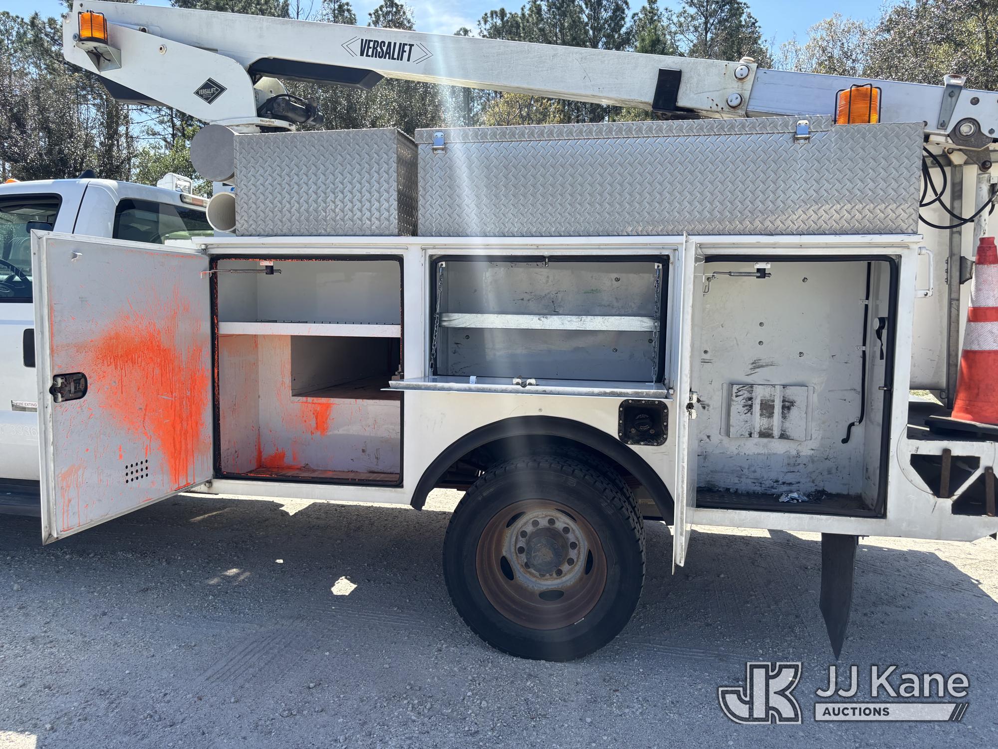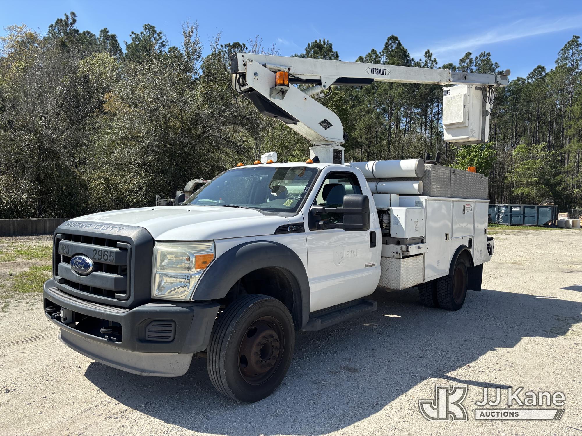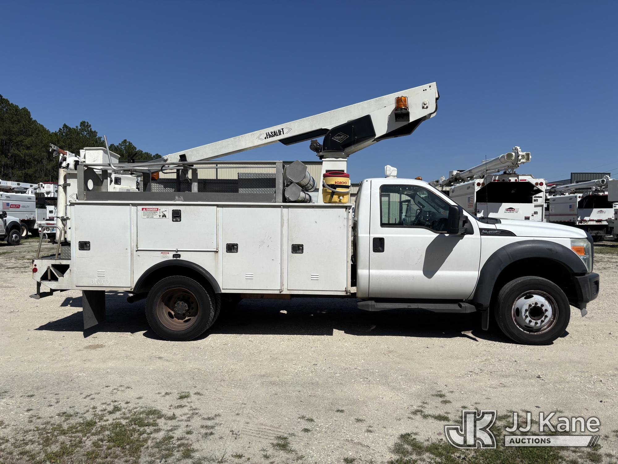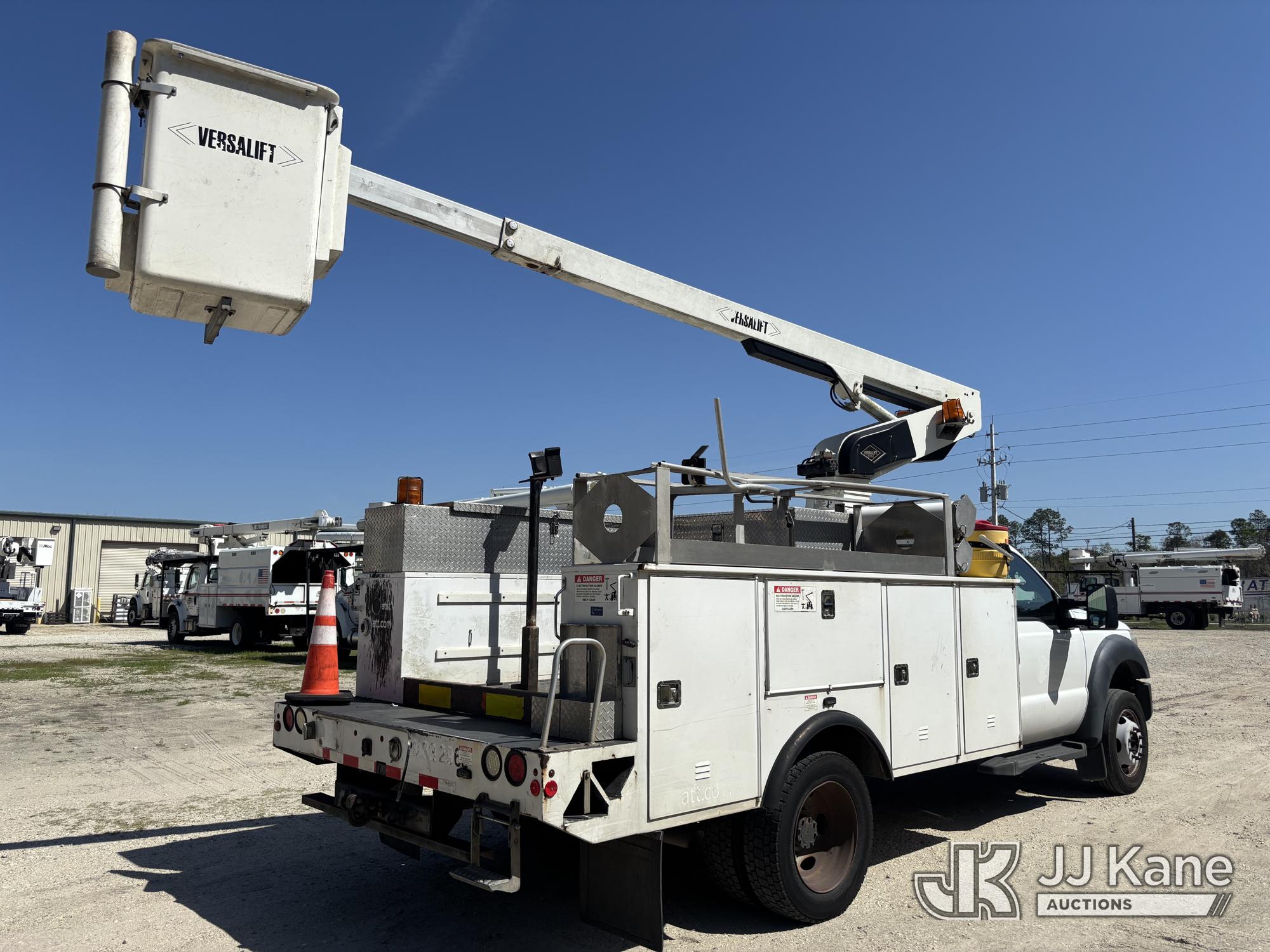 Versalift TEL29N-03, 34 ft, Telescopic Non-Insulated Bucket Truck s/n AG130033, with single-man bucket, mounted behind cab on 2013 Ford F-450 SD Service Truck, 10-cyl gas, RWD, Auto, A/C, (149,777 miles) Element Lease Return (Runs, Moves, & Operates With Jump) (Body & Paint Damage) This is a Titled Item*